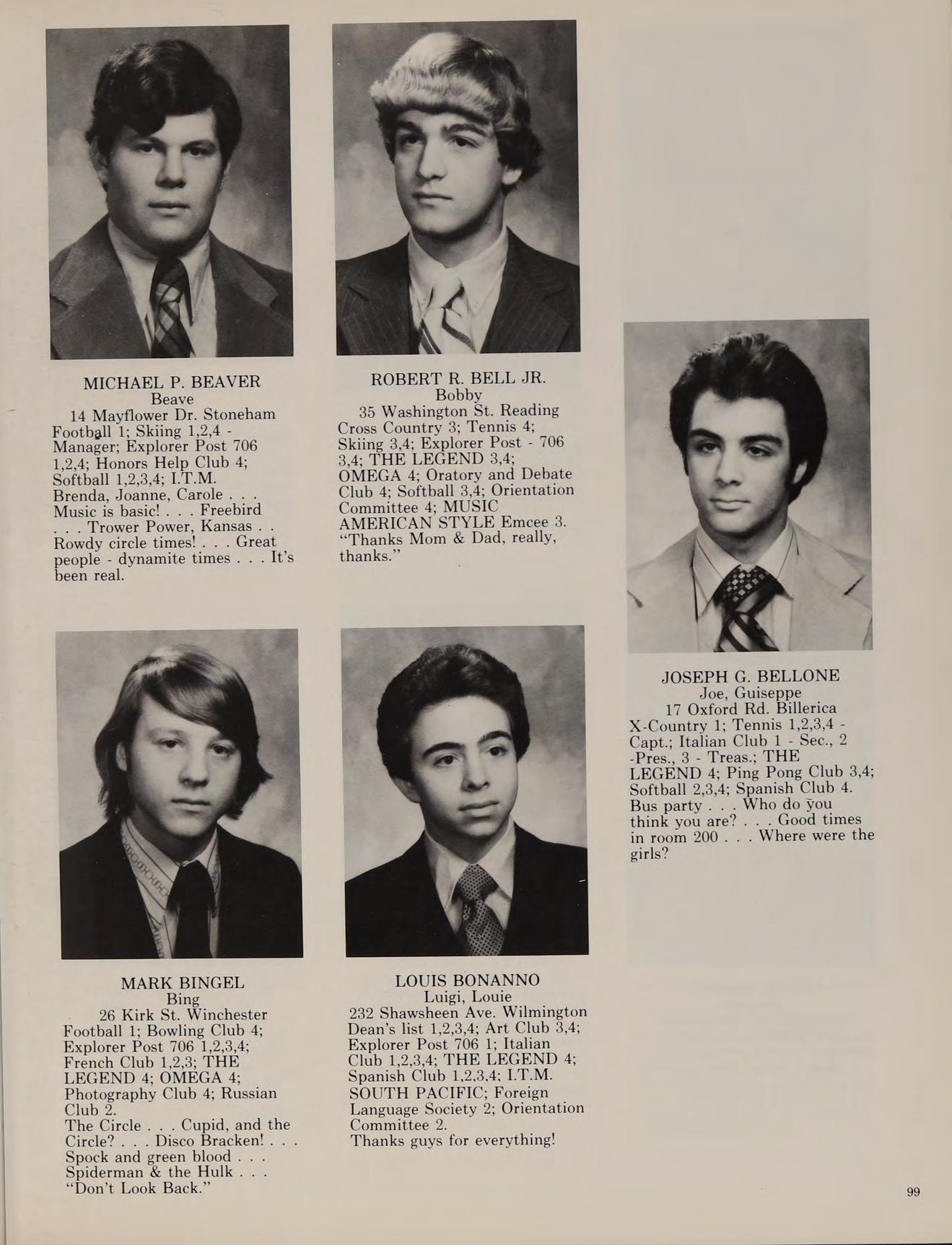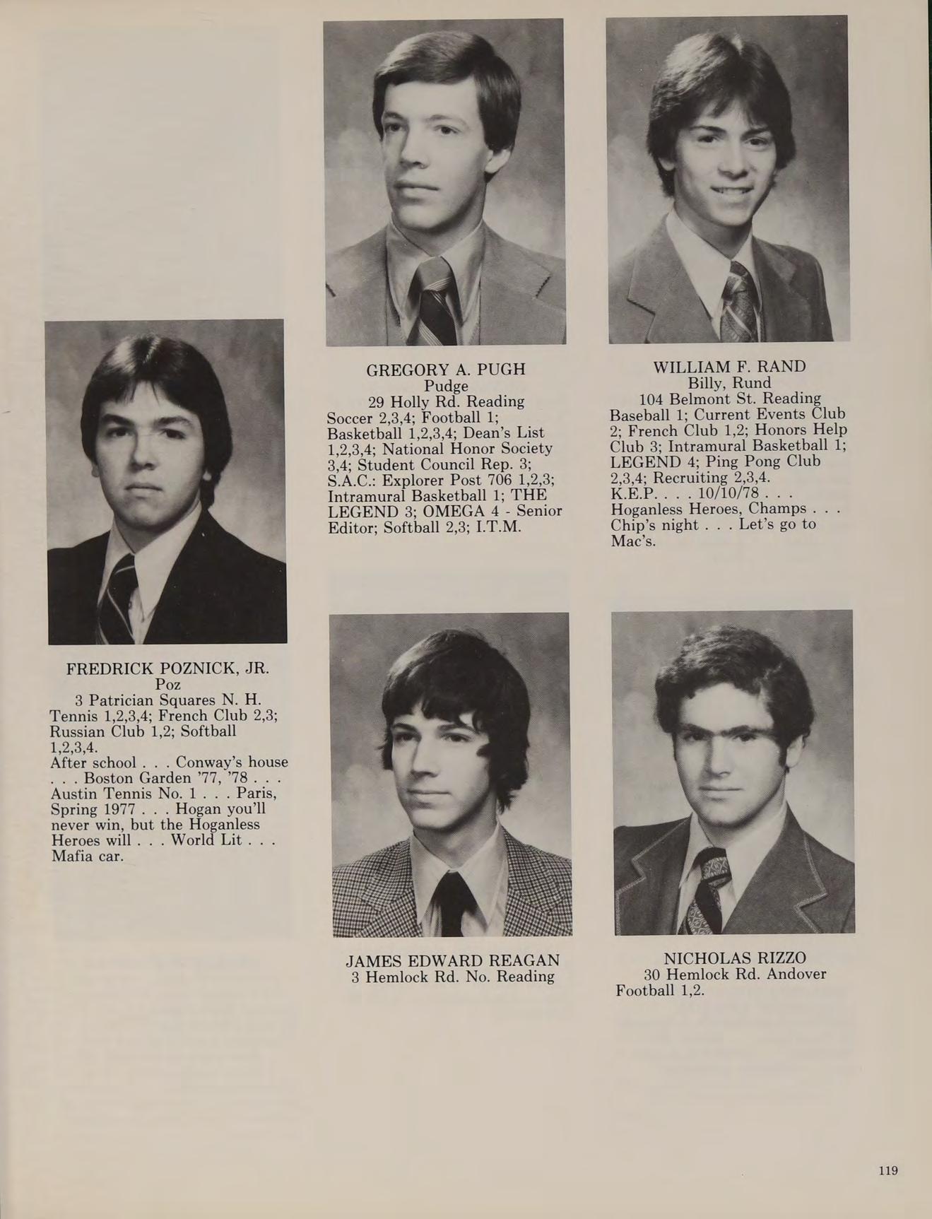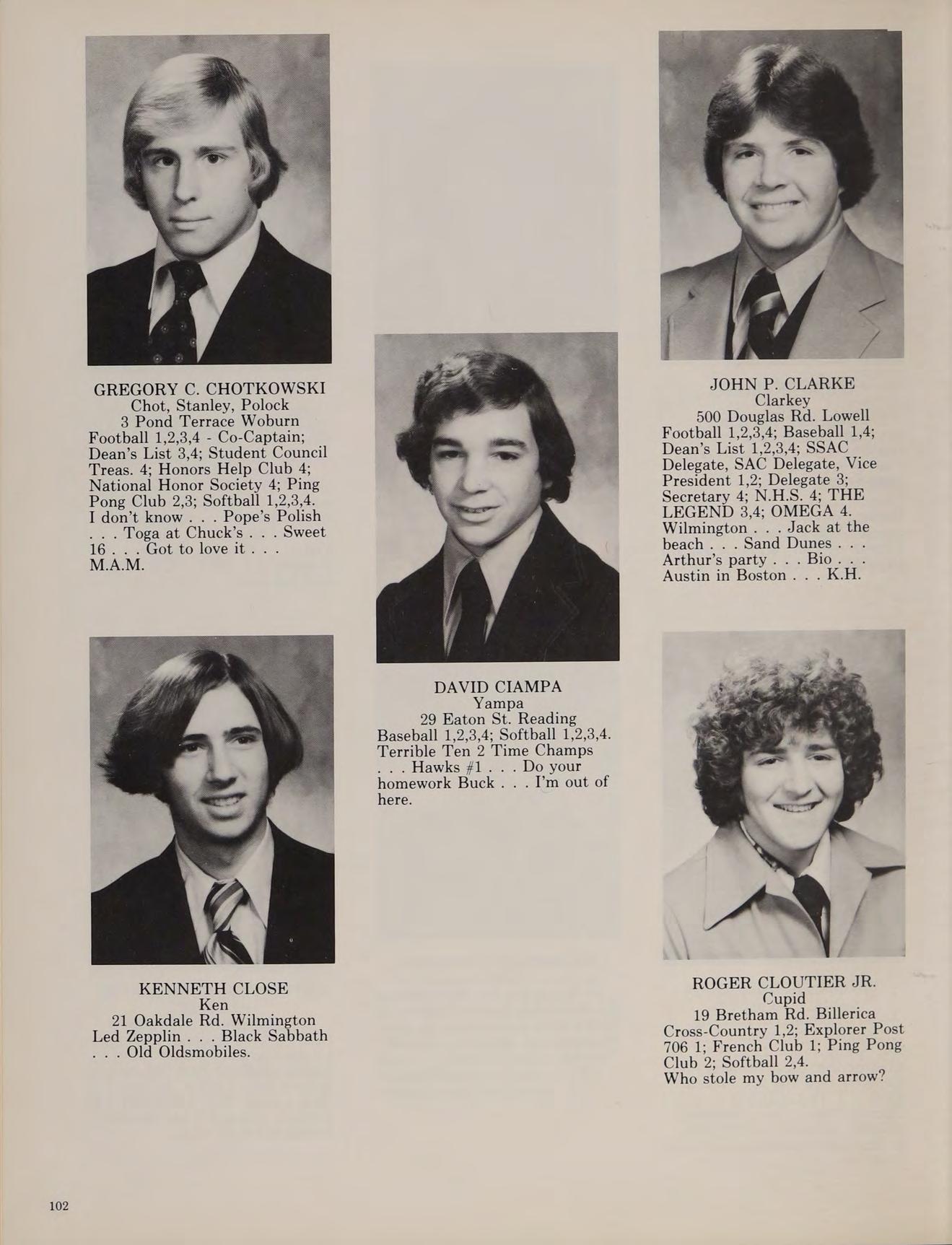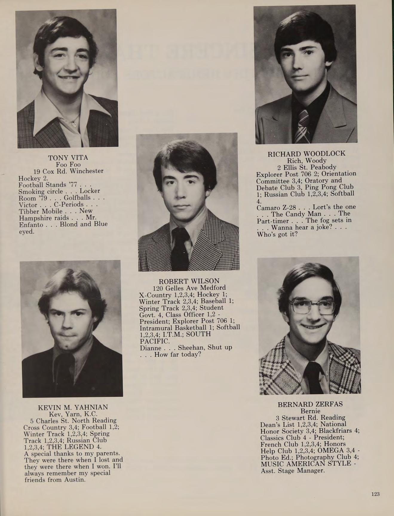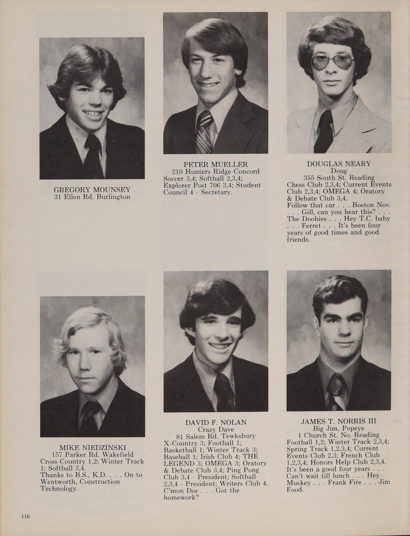 5 Charles St. North Reading Cross Country 3,4; Football 1,2; Winter Track 1,2,3,4; Spring Track 1,2,3,4; Russian Club 1,2,3,4, THE LEGEND 4.