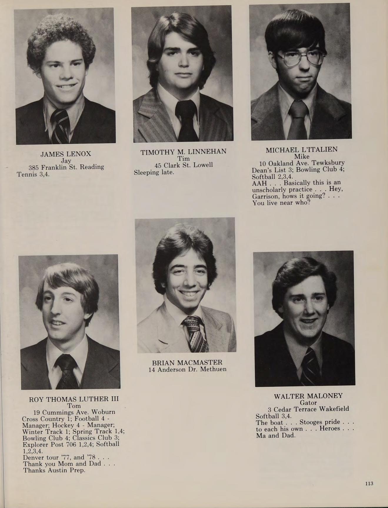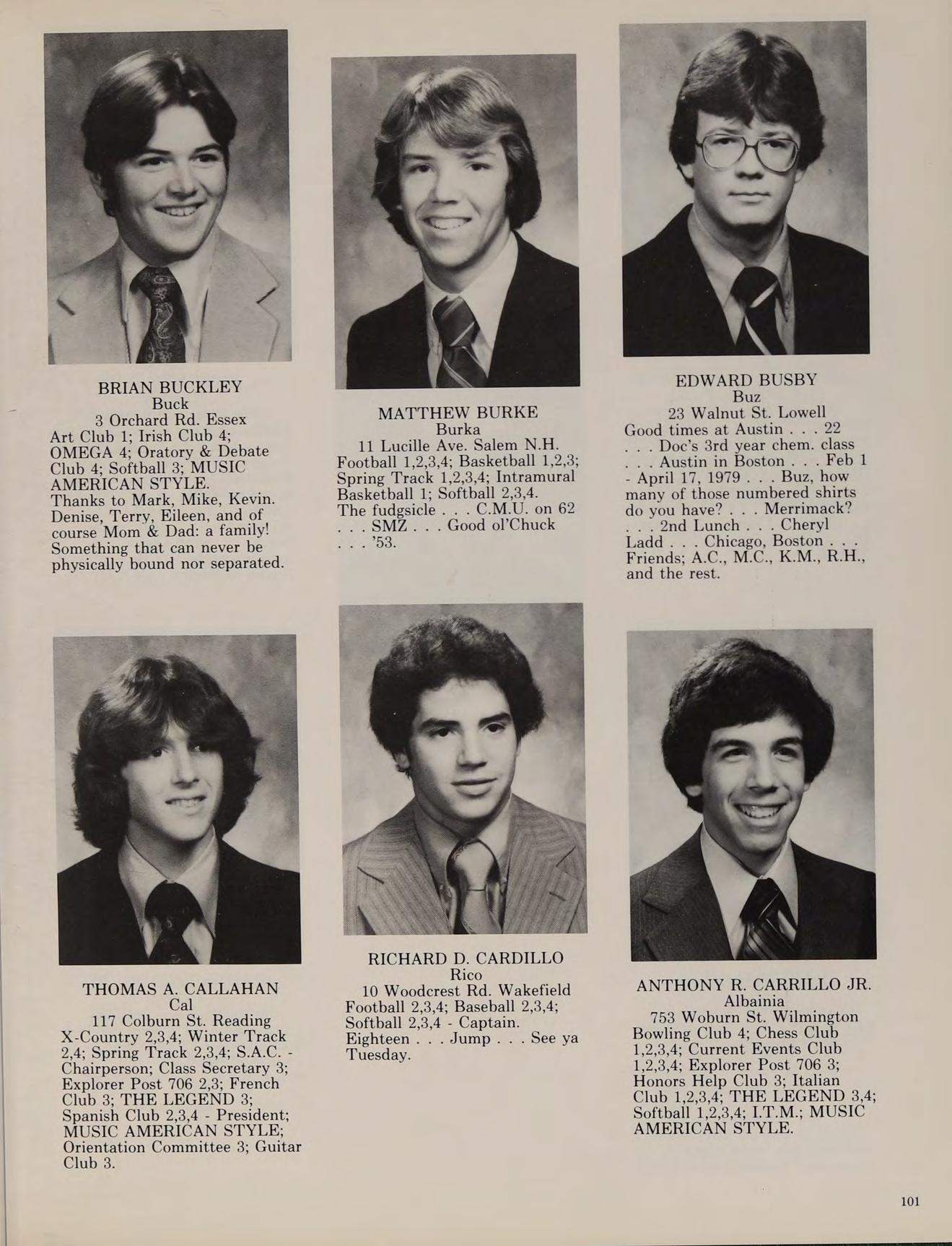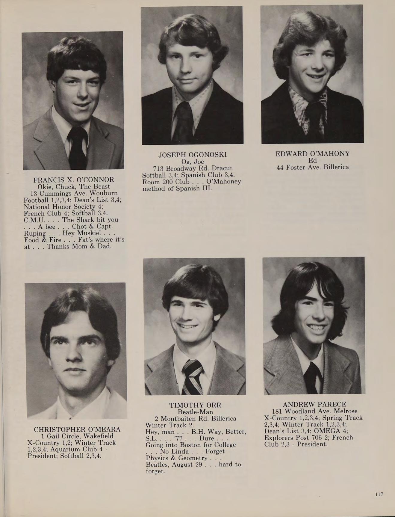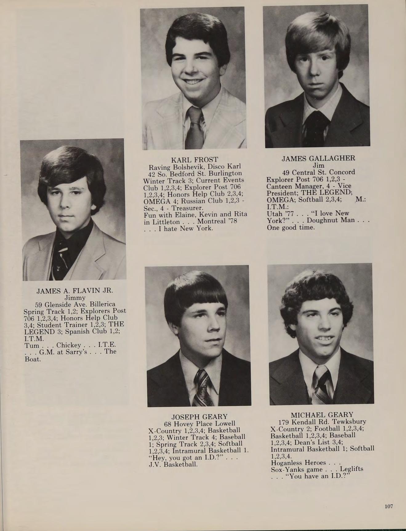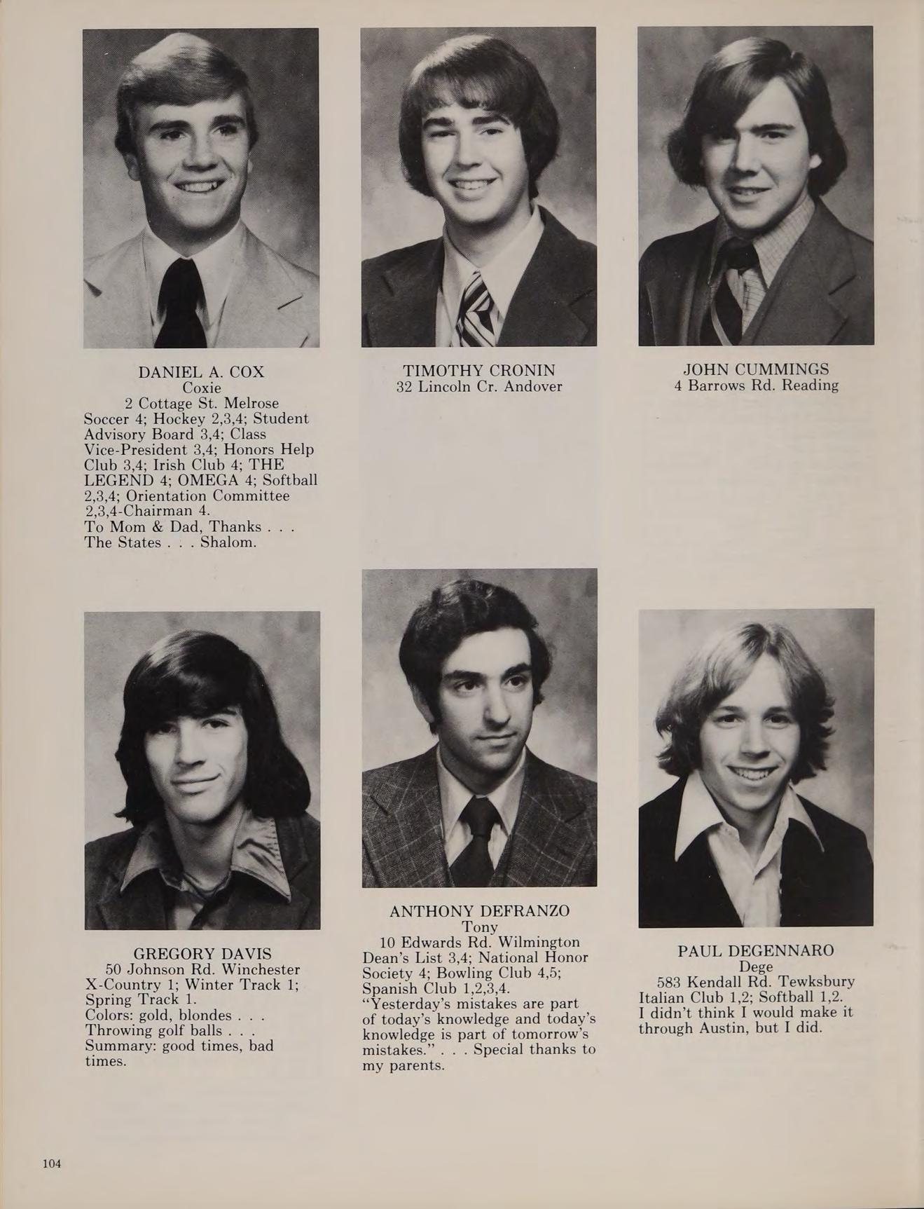 5 Charles St. North Reading Cross Country 3,4; Football 1,2; Winter Track 1,2,3,4; Spring Track 1,2,3,4; Russian Club 1,2,3,4, THE LEGEND 4.