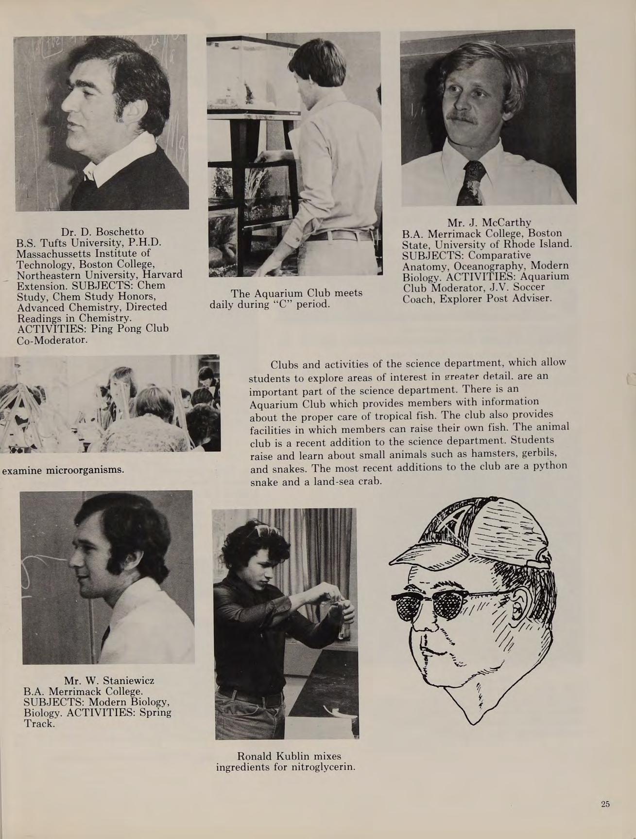 Mr. McDonough, “‘Let’s dissect!’ Mr. Nicotra, ““het’s eat!”