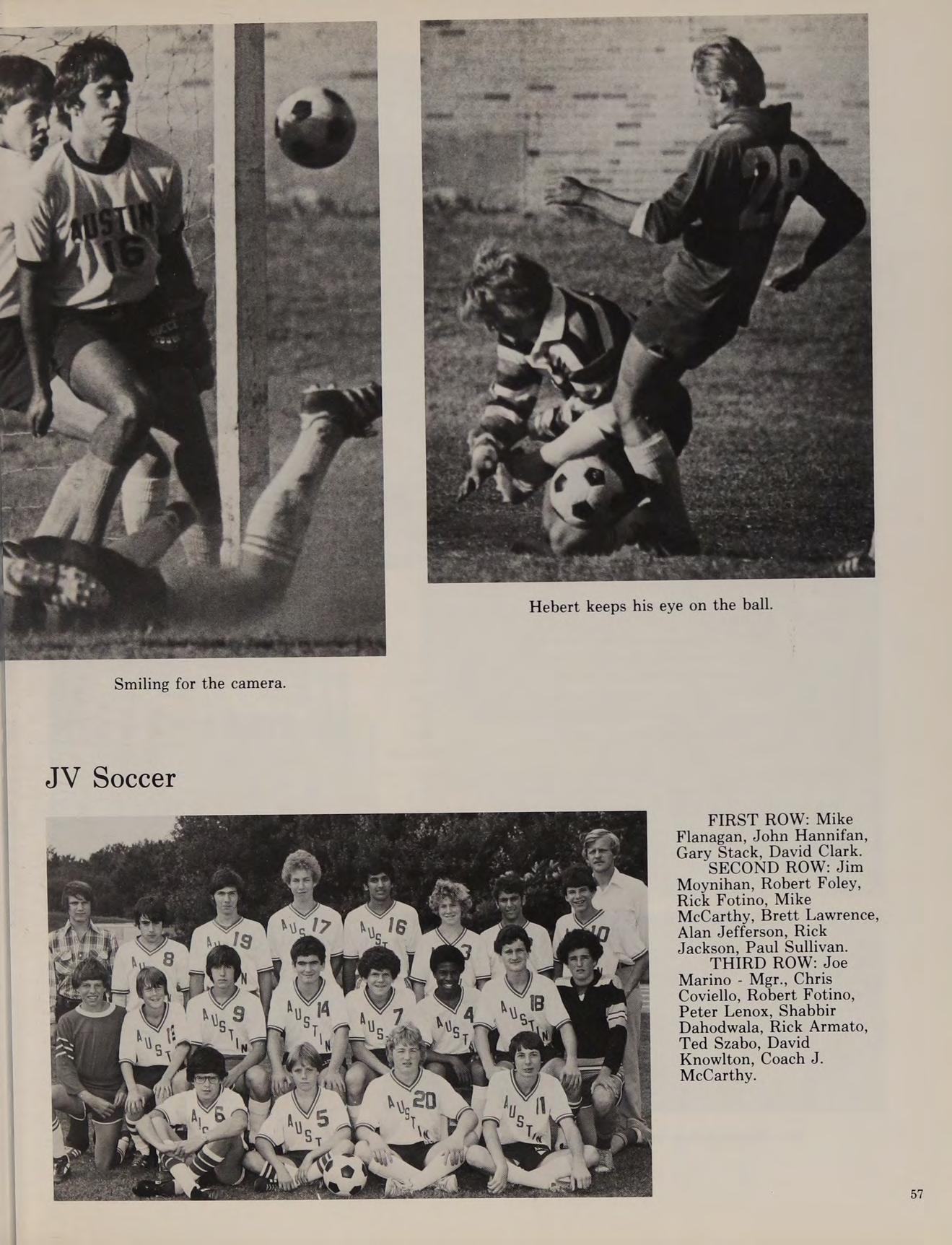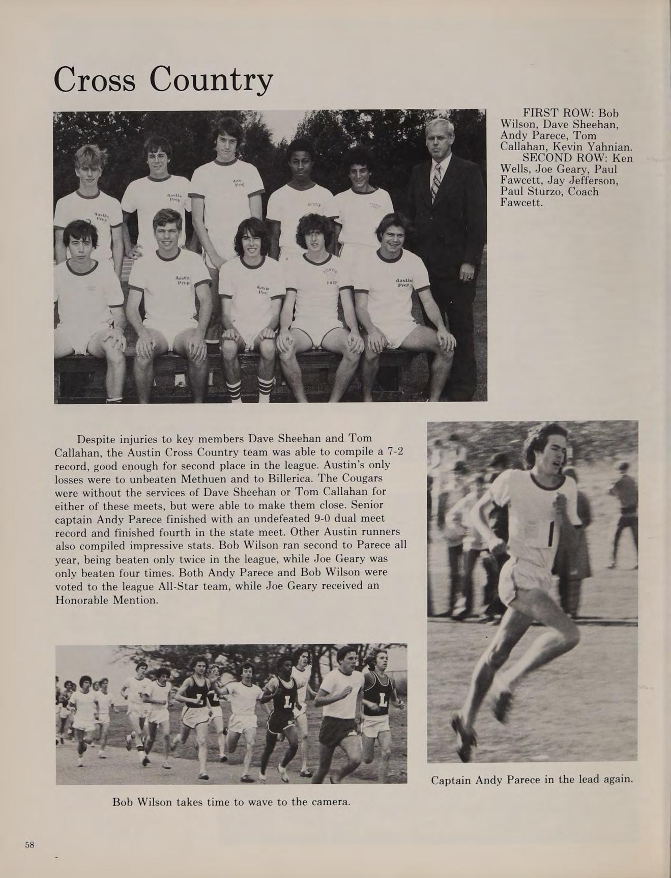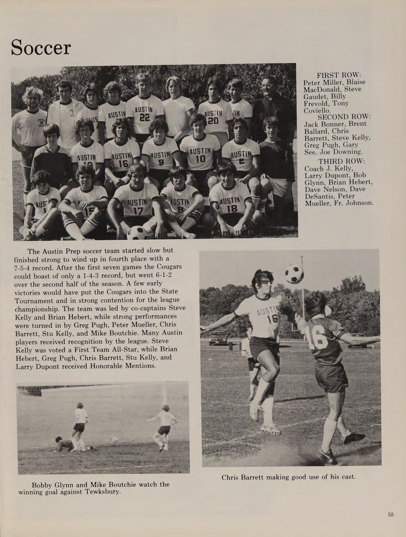 The cross-country team went on to win the Division IV State Championships and started a string of 19 consecutive dual-meet wins lasting well into our senior year. In the fall of 1976, Austin introduced on the varsity level a soccer team which made its debut in Merrimack Valley play, finishing with a 3-11-2 record. The 1976 football season was a long and trying one, as the team could only manage one victory.