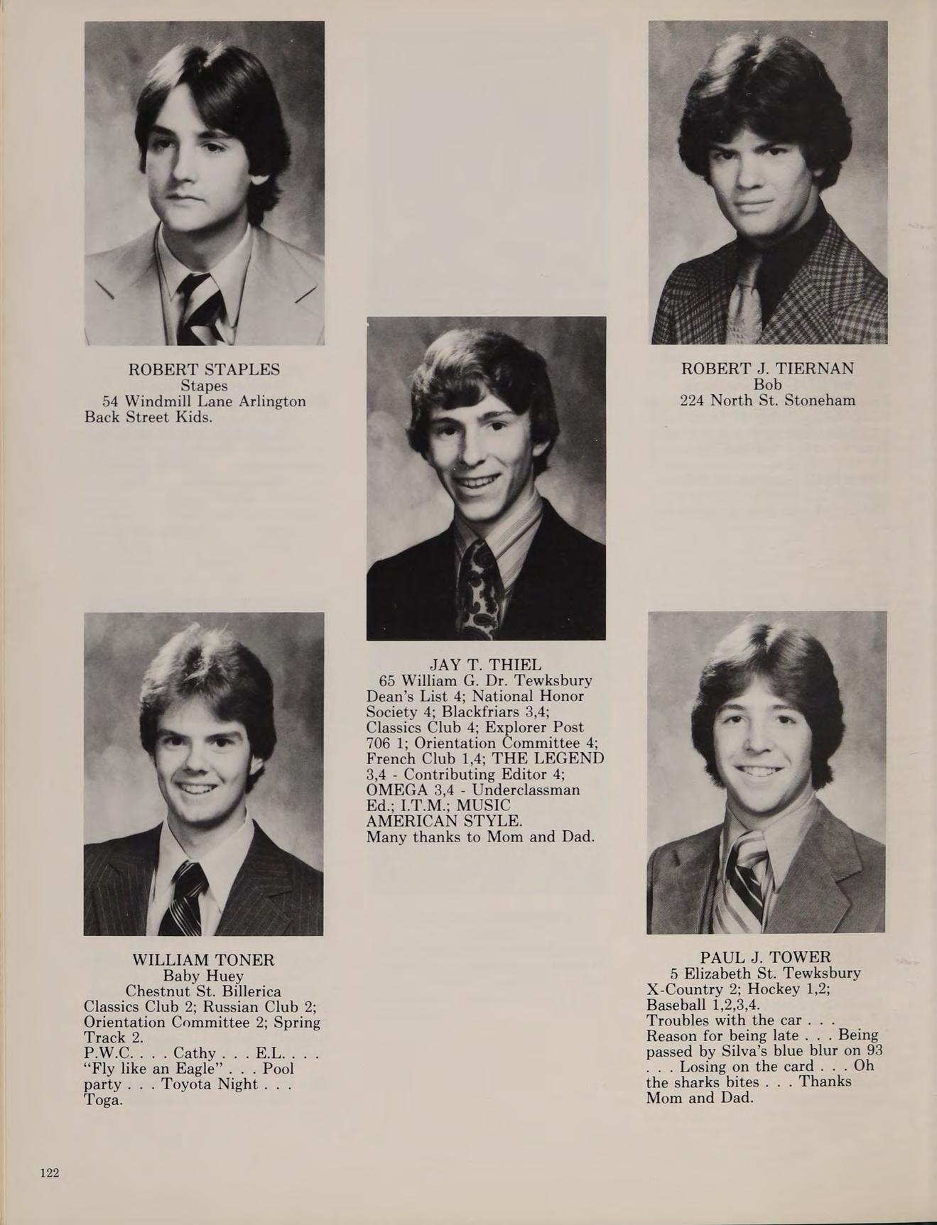PAUL J. TOWER 5 Elizabeth St. Tewksbury X-Country 2; Hockey 1,2; Baseball 1,2,3,4.