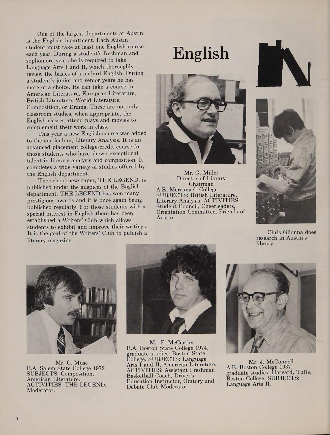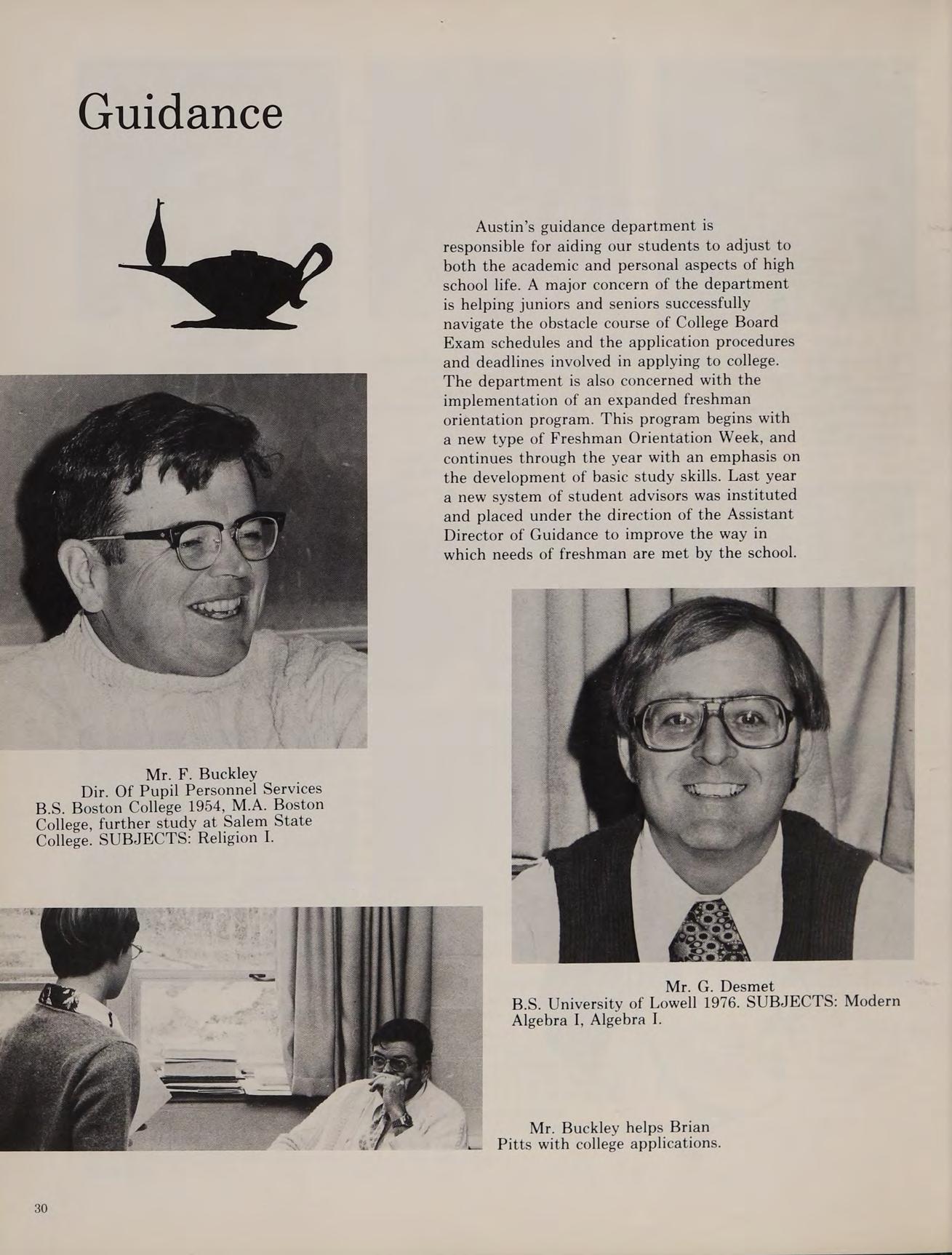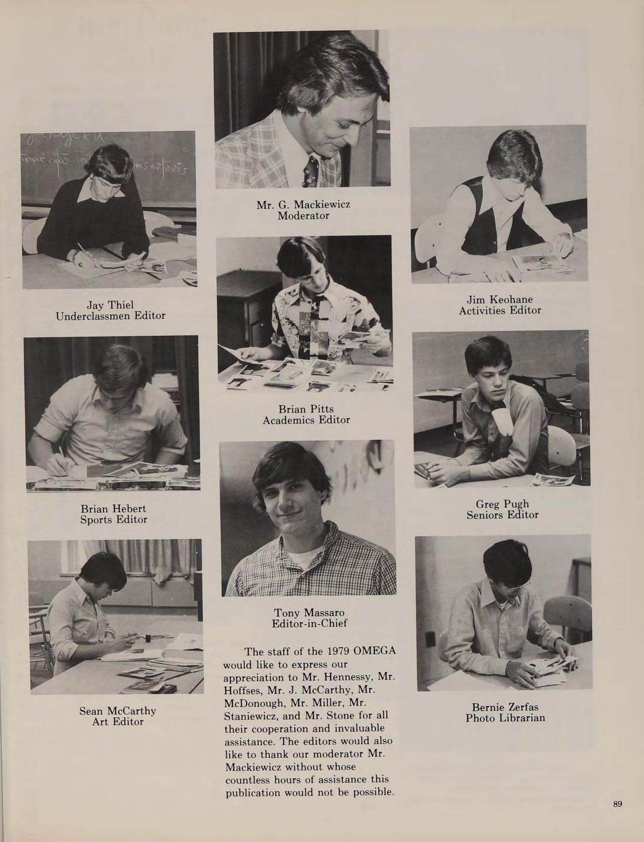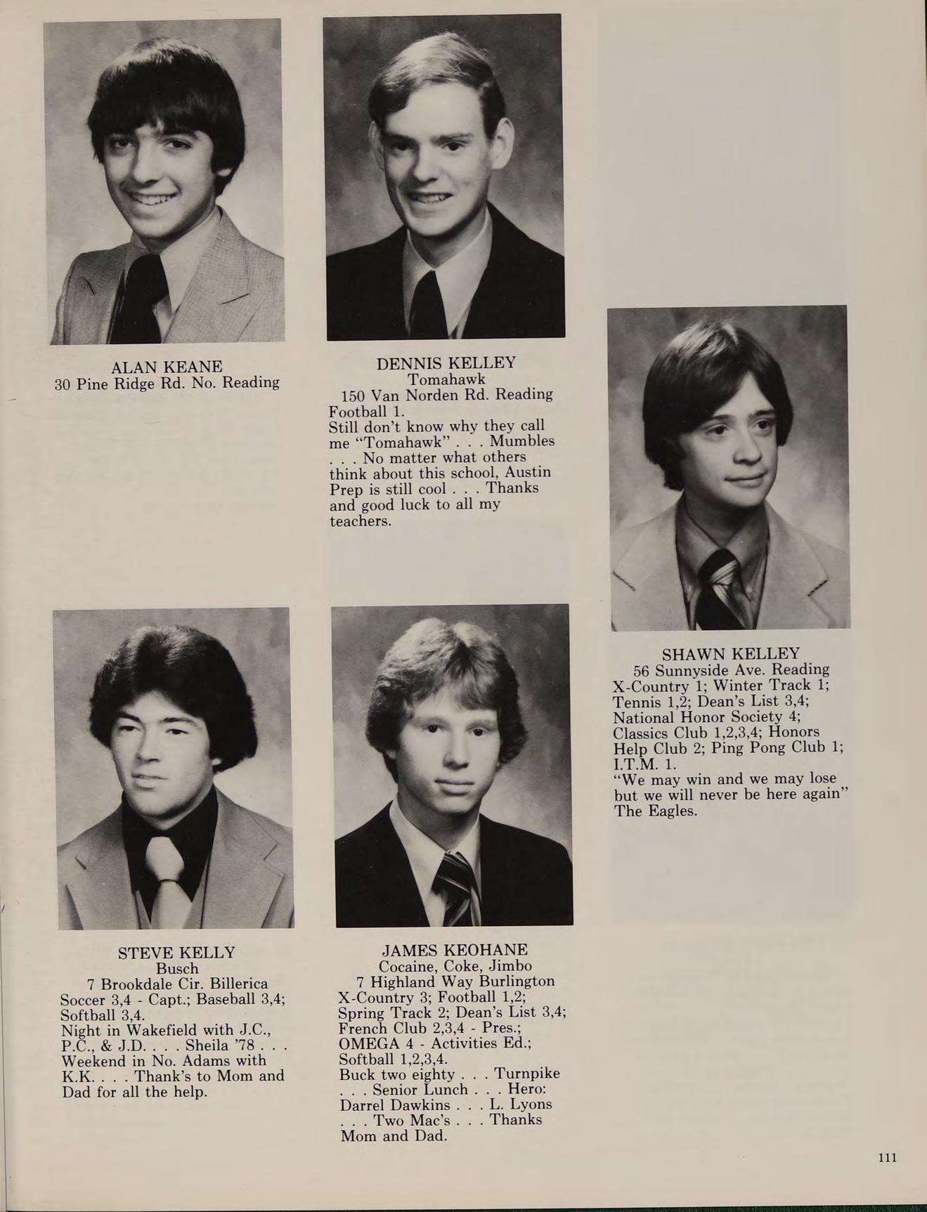 As our sophomore year began at Austin, the Class of ’79 was happy that we weren’t freshmen anymore. We began to feel more comfortable at Austin. During KBOHANE ephen J. the summer of 1976, changes were numerous at the school. Father Morgan, the former chaplain was replaced by a returning Augustinian, Father Cain. Mrs. Brako, a former Italian teacher, was replaced by Mr. Fazzolari. Mr. Lannigan became a new edition to the English department. Mr. Dee, a former Austin student, became a religion teacher. Later in the year Mr. Stott joined the science department, and became an assistant coach for the varsity football team.