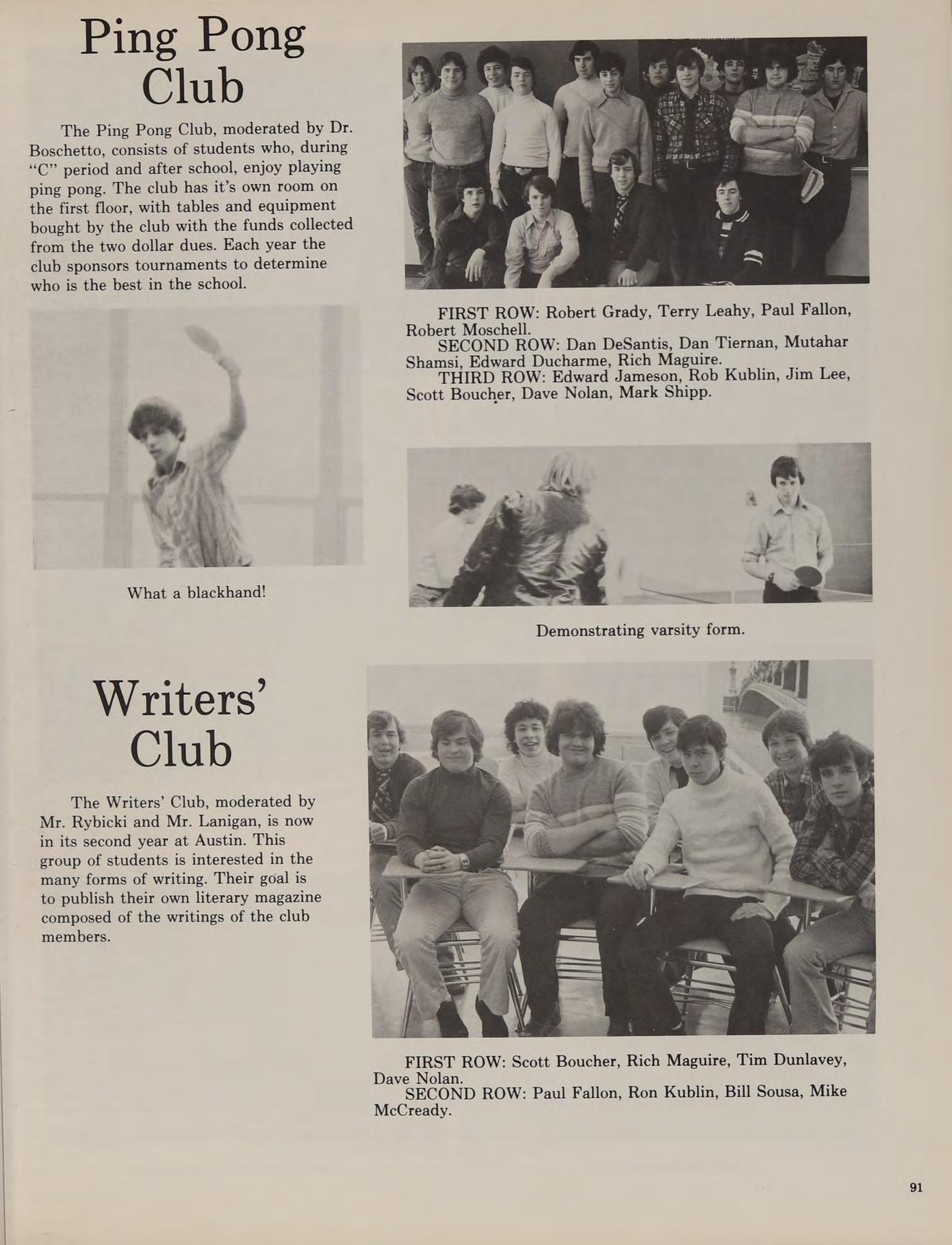 The winter track team was made up of almost all underclassmen. This inexperience accounted for their disappointing 1-8 season. The hockey team, however, had an excellent season. This can be seen by their 16-1 record. In the State Championship they were upset by Acton-Boxboro. Many freshmen during the winter became involved in ITS THE MOST. I.T.M. was the second in the series of Austin’s successful student musicals. They began practice in January and performed the variety show in late March.