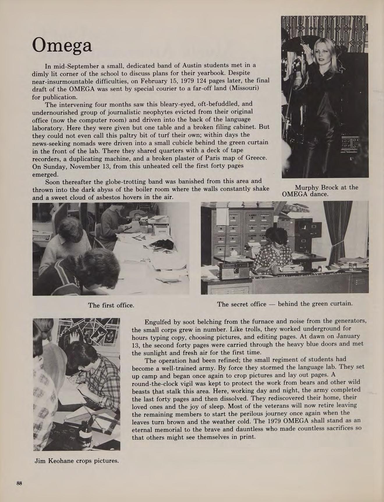During our four years at Austin the class of ’79 has witnessed many changes. Changes in ourselves, changes in our friends, and changes in our school. Each event at Austin helped to change us a bit more. The events of the four years here have created many memories. This class history seeks to recall some of those happenings beginning with Orientation week and ending with graduation.