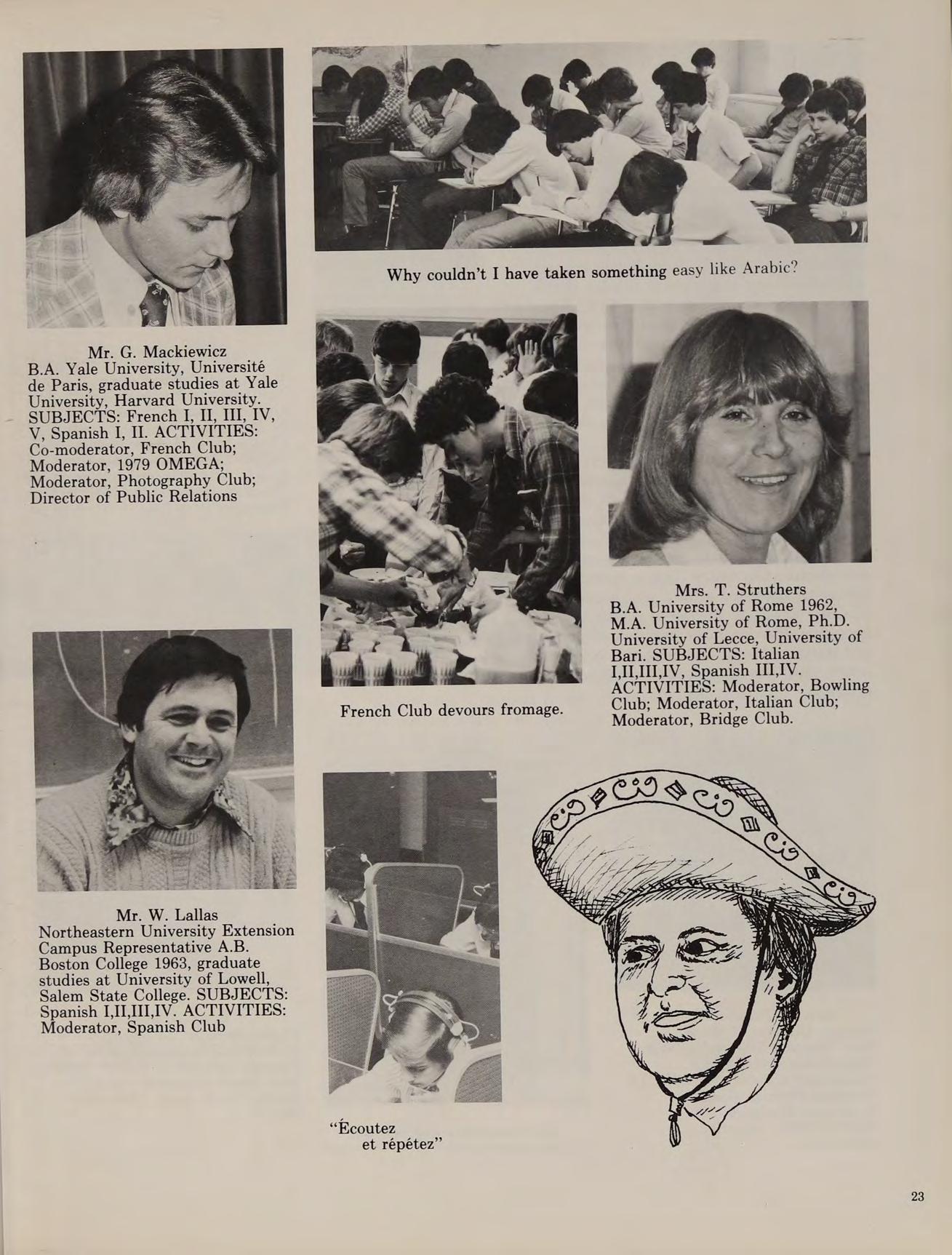 The year 1977 saw the Class of 1979 return as juniors. It was our third year together and it promised to be both demanding and enjoyable. There were once again faculty changes. Italian teacher Mr. Fazzolari, English teacher Mr. Murray, and religion teachers Mr. Dee and Father Johnson were gone; taking their place were Italian teacher Mrs. Struthers, English teacher Mr. Muse, religion teacher Father Deary, and Biology teacher Mr. Staniewicz. Academic work was rigorous because the junior year is the most critical in college applications. Throughout the year juniors were busy taking Scholastic Aptitude Tests and Achievement Tests.