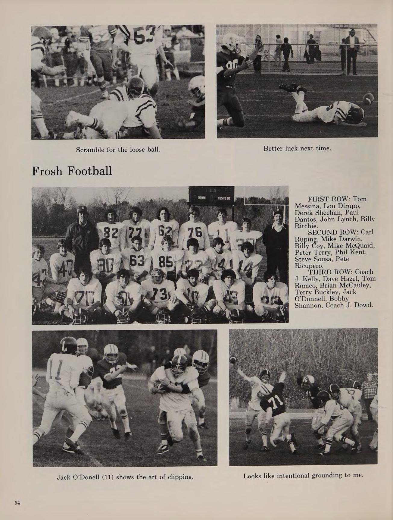 Work paid off for the Cross Country team as they captured a second consecutive State Championship along with the Merrimack Valley Championship. The team was full of juniors. Andy Parece, Tom Callahan, Kevin Yahnian, Joe Geary, and Dave Sheehan provided the depth necessary for an undefeated season. The football team, led by tri-captains Paul Tucker, Mike Winn, and John Kelley, did not have as impressive a season. Although they were in contention for every game the team could only compile a 2 and 7 record. The soccer team also could only manage two victories. Their largest problem was a lack of scoring punch. Their competitiveness can be seen by the fact that eight of their eleven losses were suffered by only one goal.