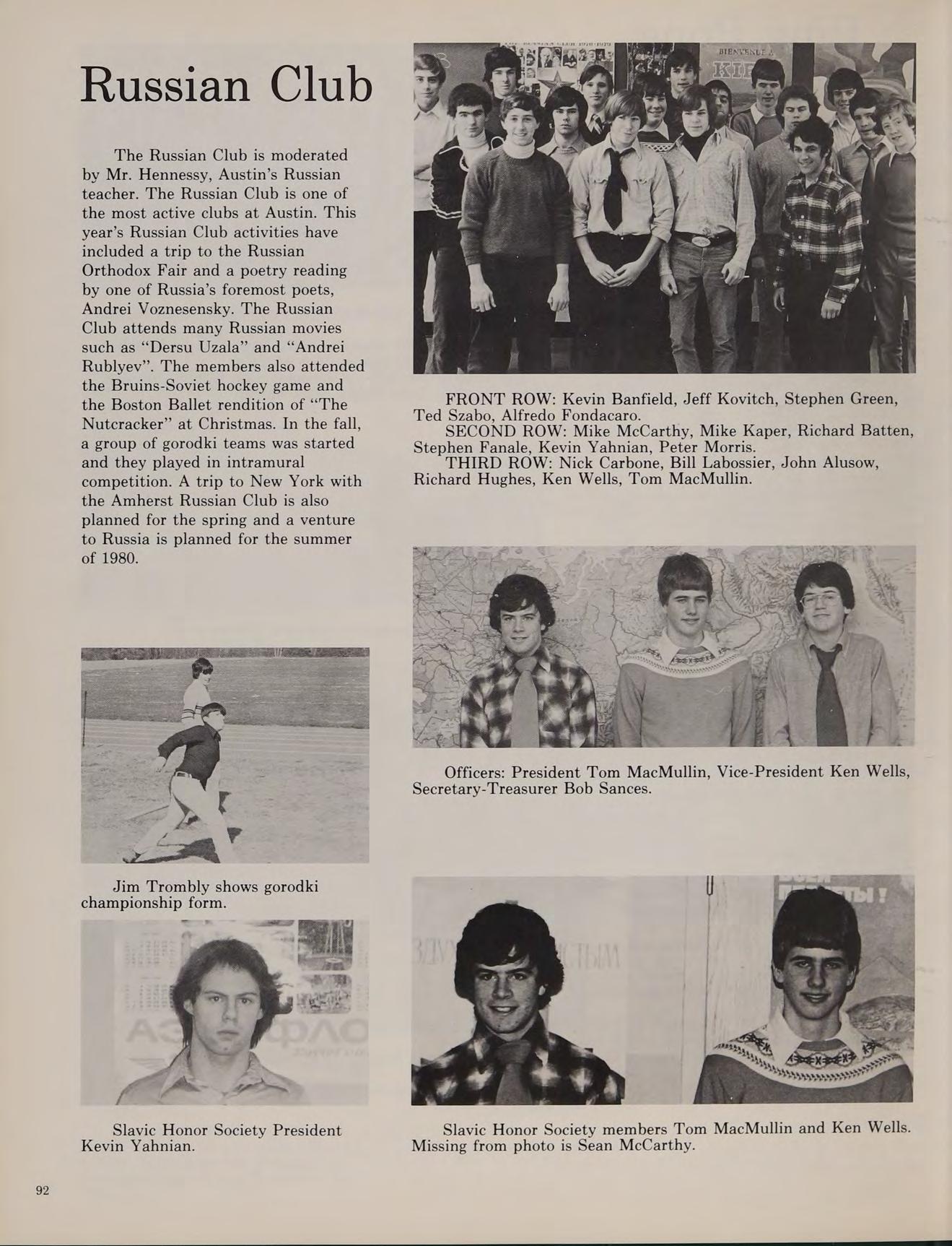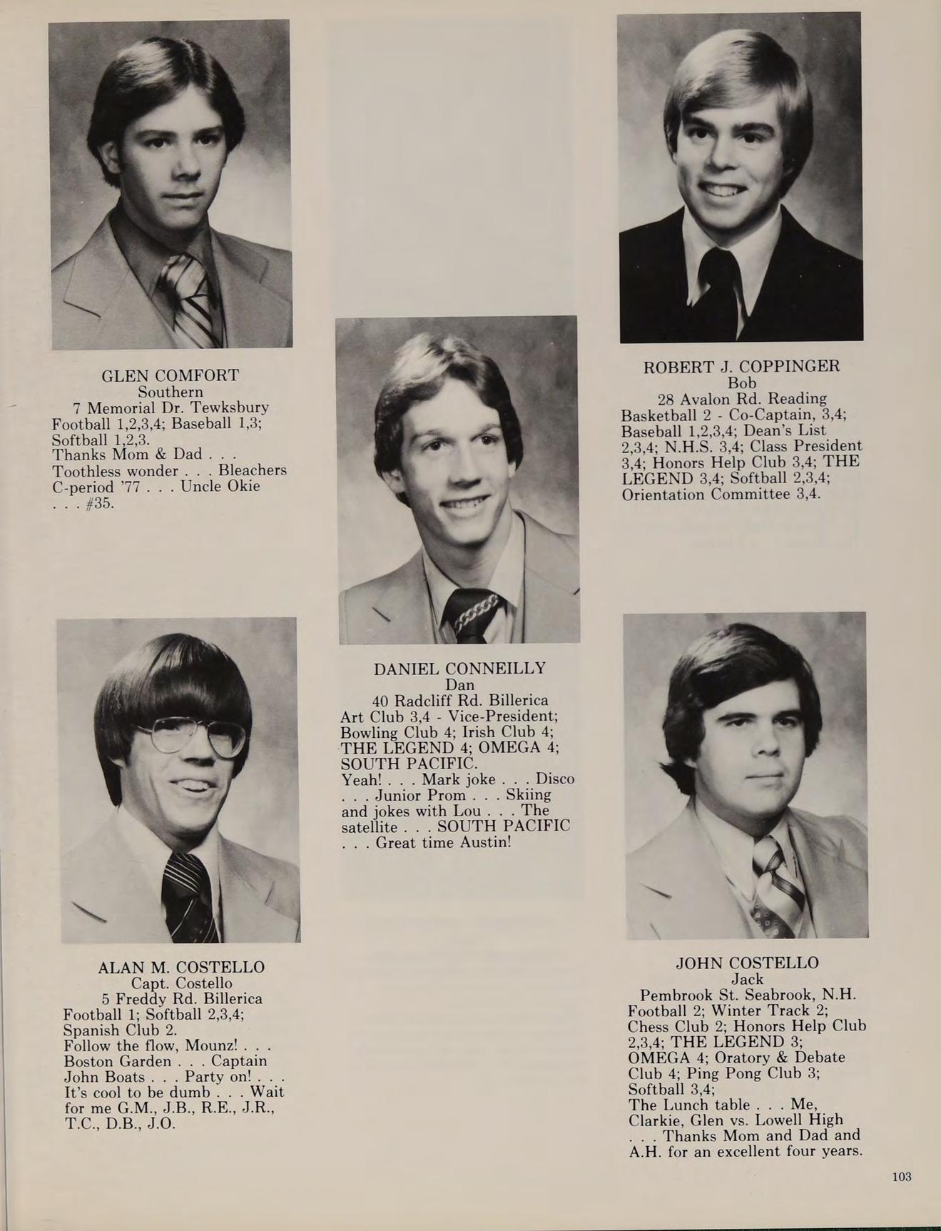 Baby Huey Chestnut St. Billerica Classics Club 2; Russian Club 2; Orientation Committee 2; Spring Track 2.