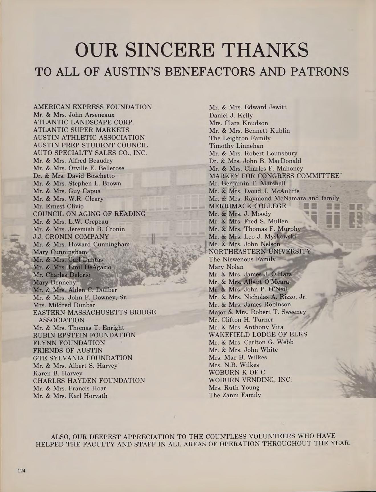 ALSO, OUR DEEPEST APPRECIATION TO THE COUNTLESS VOLUNTEERS WHO HAVE HELPED THE FACULTY AND STAFF IN ALL AREAS OF OPERATION THROUGHOUT THE YEAR.