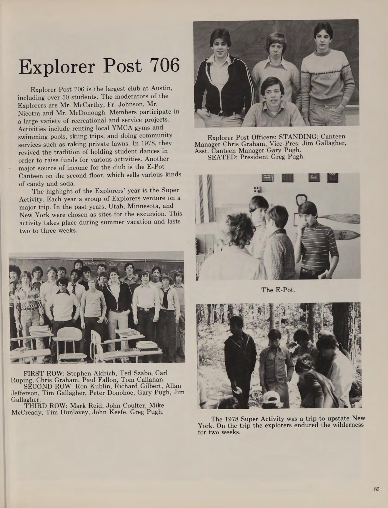 Over the summer the Explorers, one of the most active groups in the school, traveled to Minnesota where they fished and hiked for two weeks. Two freshmen, Chris Graham and Michael Beaver traveled with the Explorers on the Super Activity.