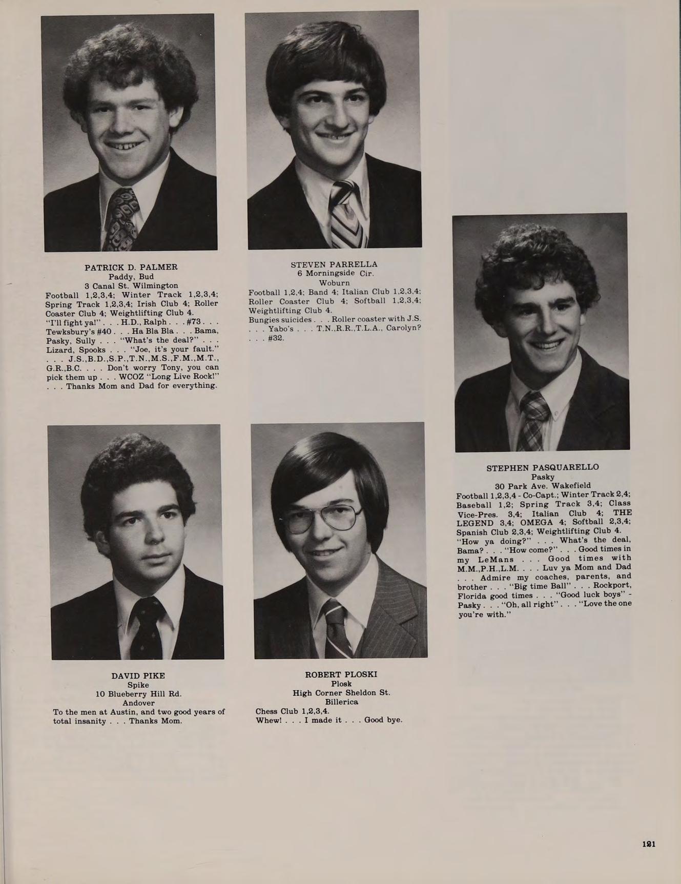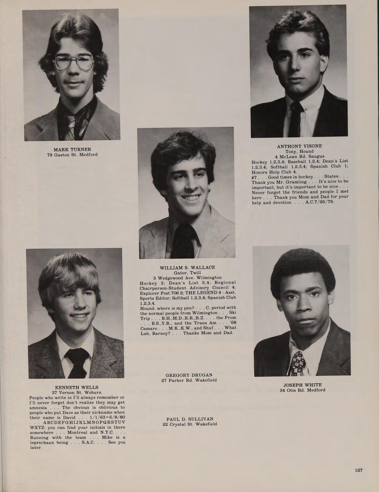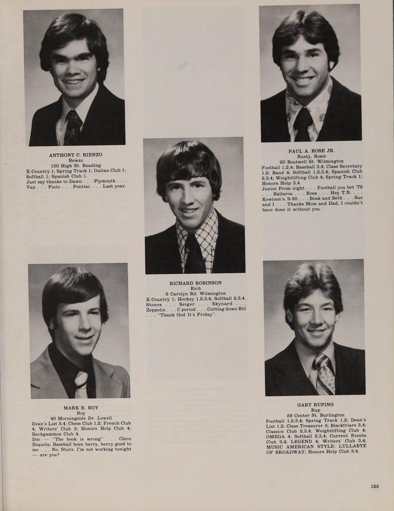 20 Boutwell St. Wilmington Football 1,2,4; Baseball 3,4; Class Secretary 1.2: Band 4; Softball 1,2,3,4; Spanish Club 2,3,4; Weightlifting Club 4; Spring Track 1; Honors Help 3,4.