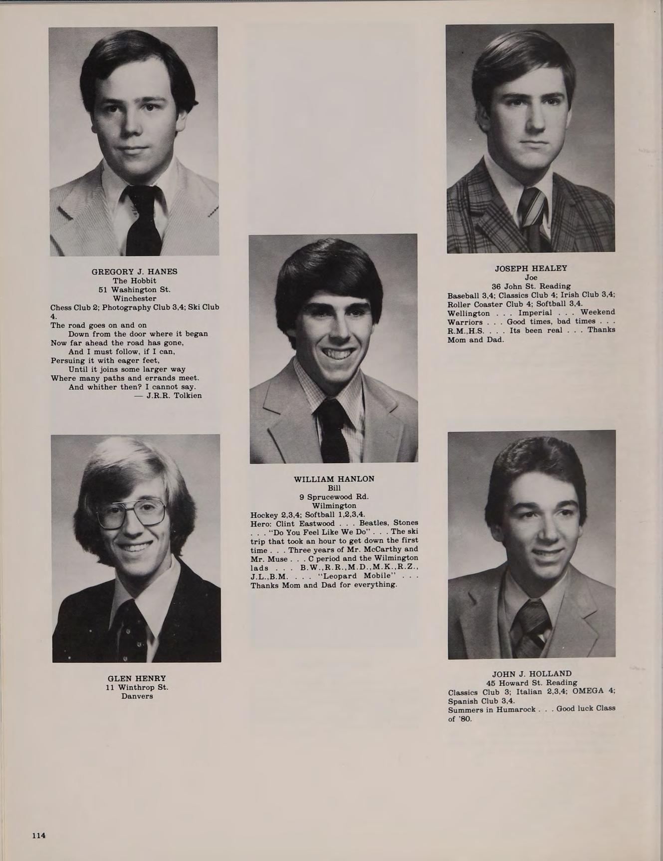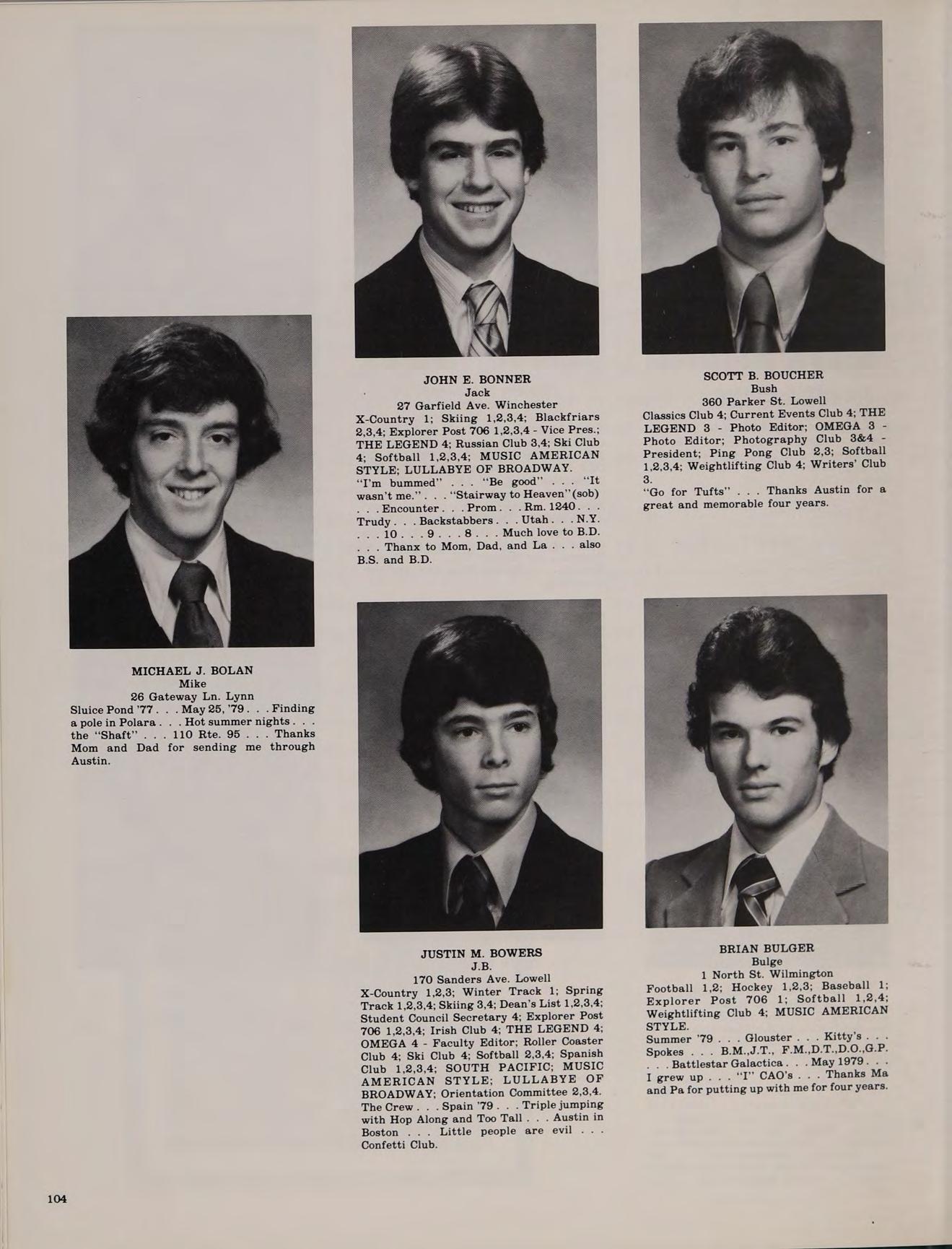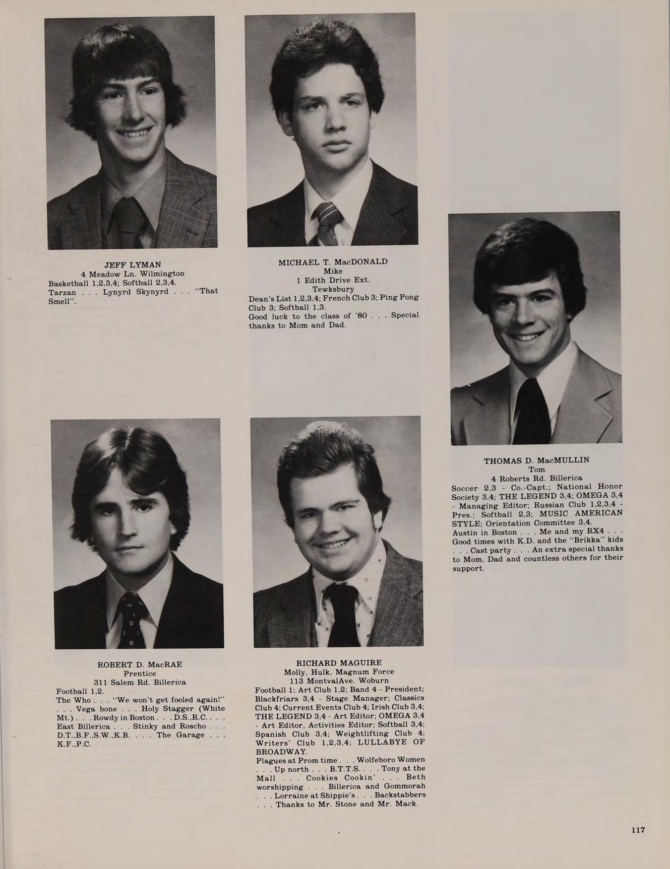 20 Boutwell St. Wilmington Football 1,2,4; Baseball 3,4; Class Secretary 1.2: Band 4; Softball 1,2,3,4; Spanish Club 2,3,4; Weightlifting Club 4; Spring Track 1; Honors Help 3,4.