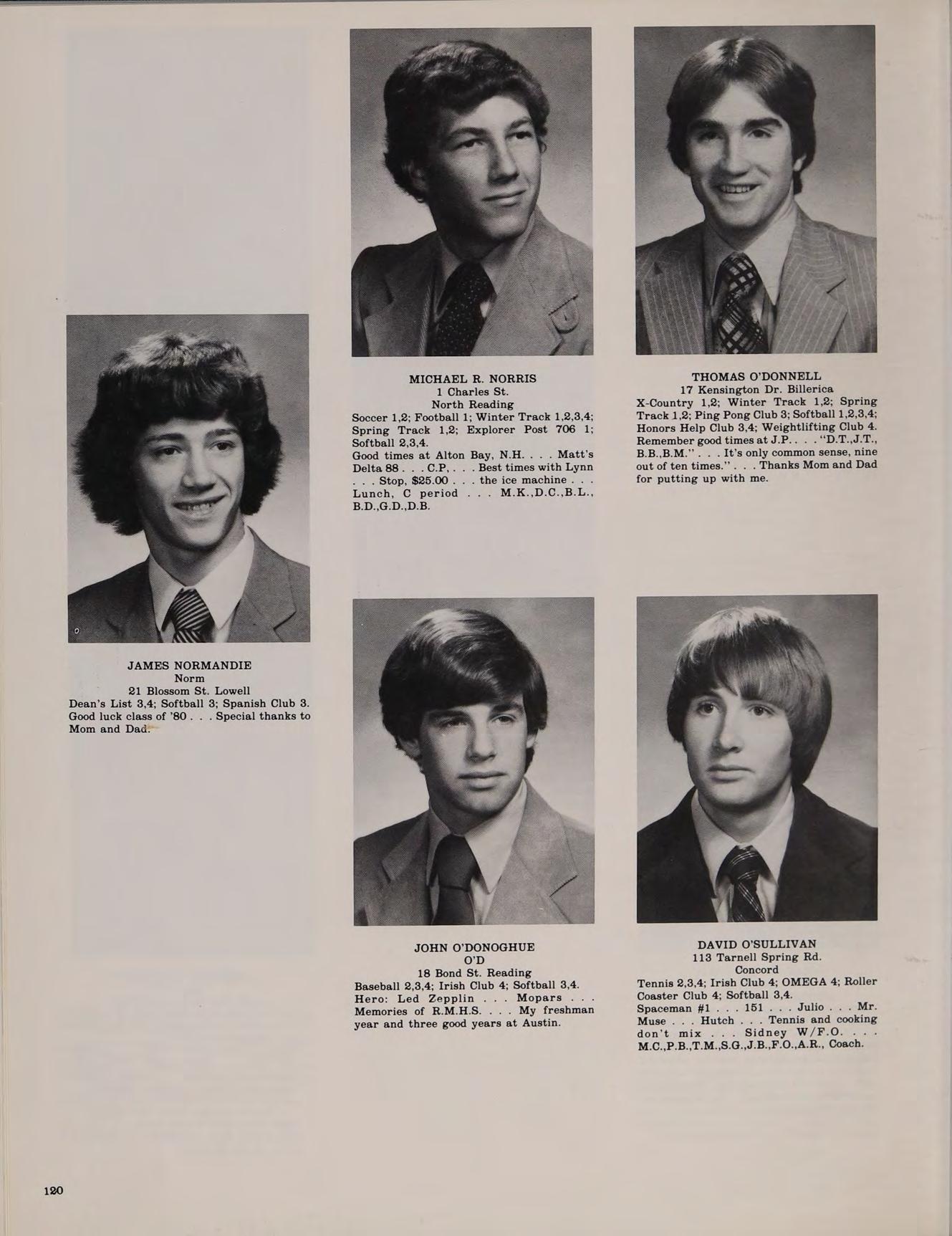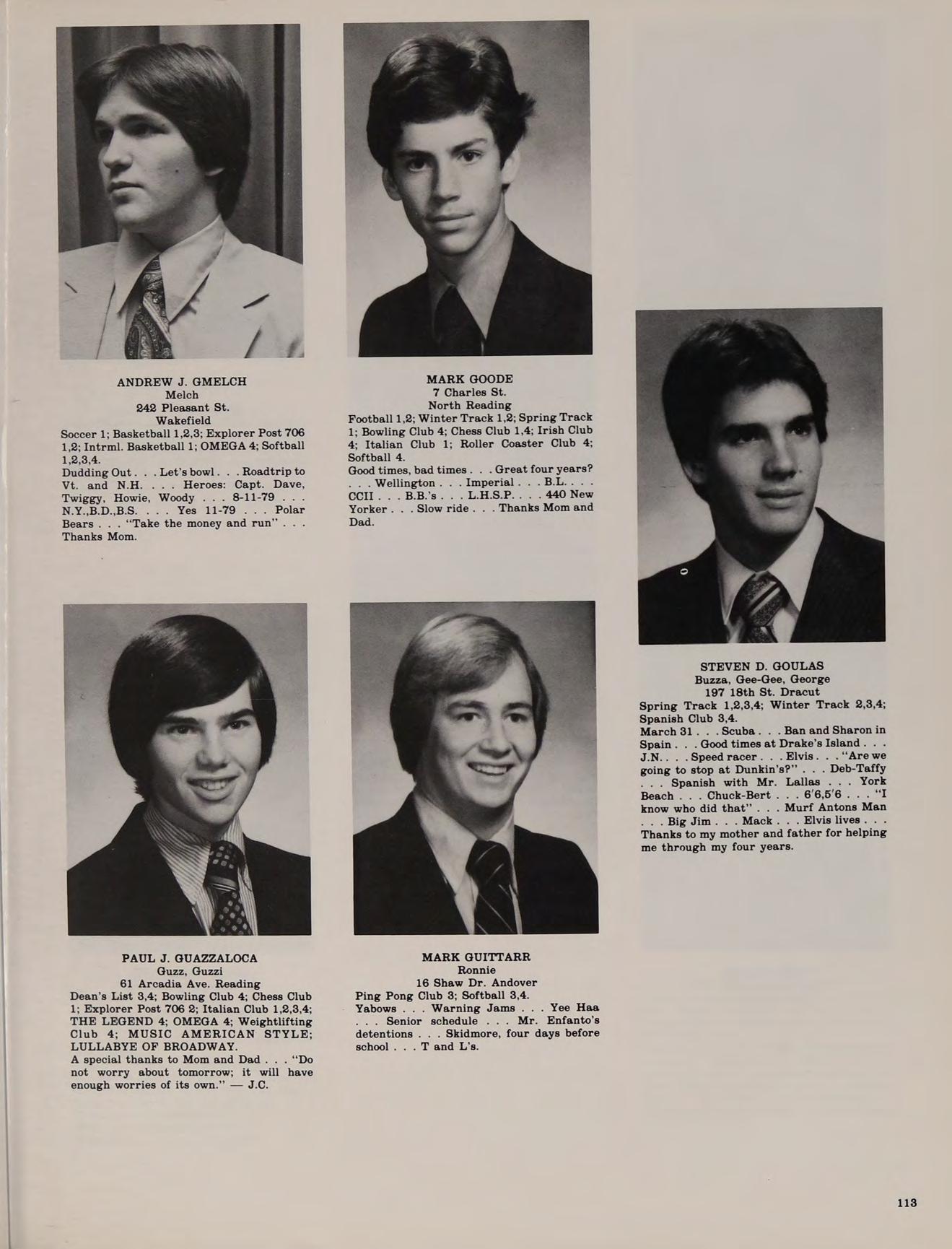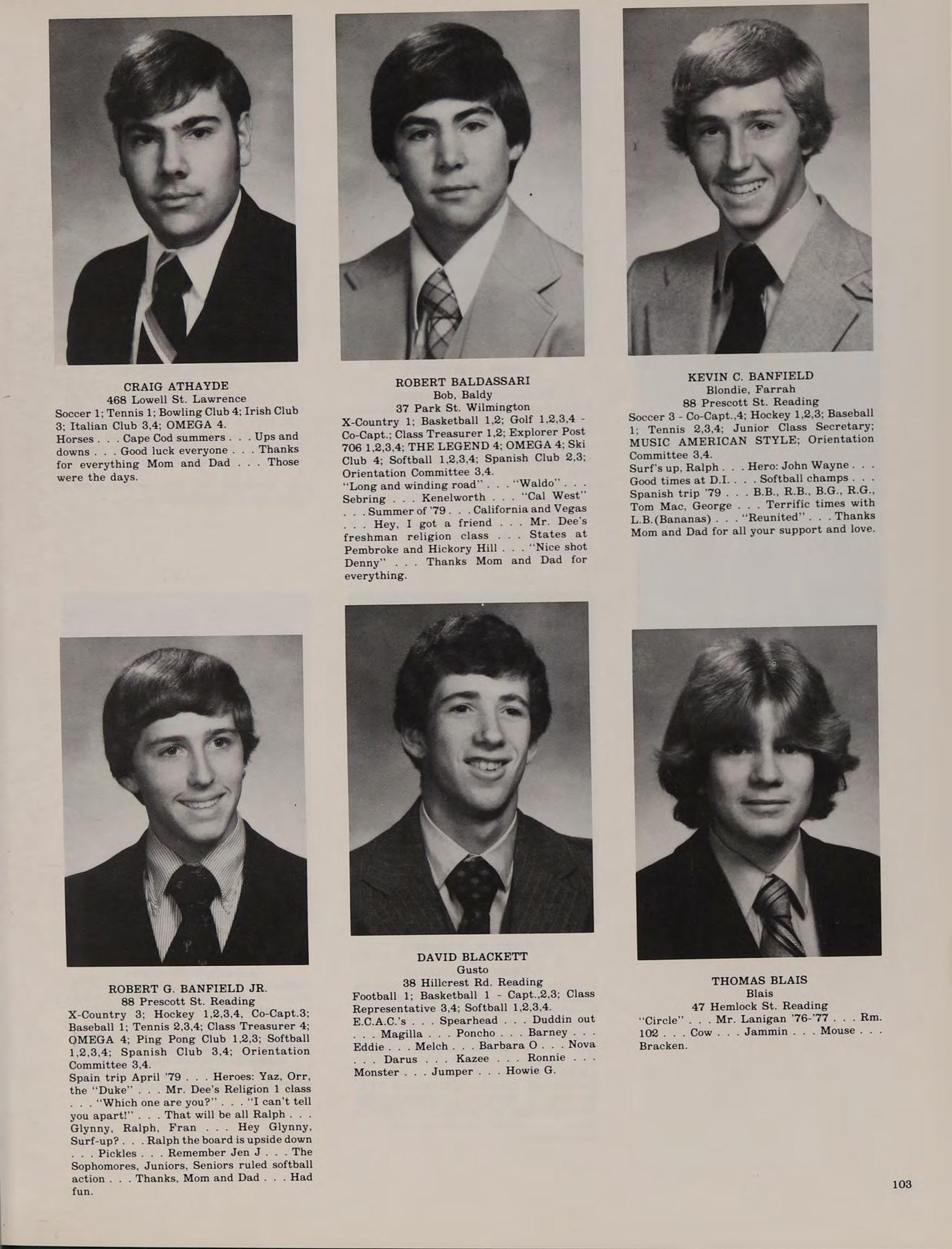 67 Lucerne Dr. Andover Football 1,2,3,4; Basketball 1,2,3,4; Spring Track 1,2,3,4; Class Treasurer 4; Intramural Basketball 1; Softball 1,2,3,4; Honors Help Club 4.