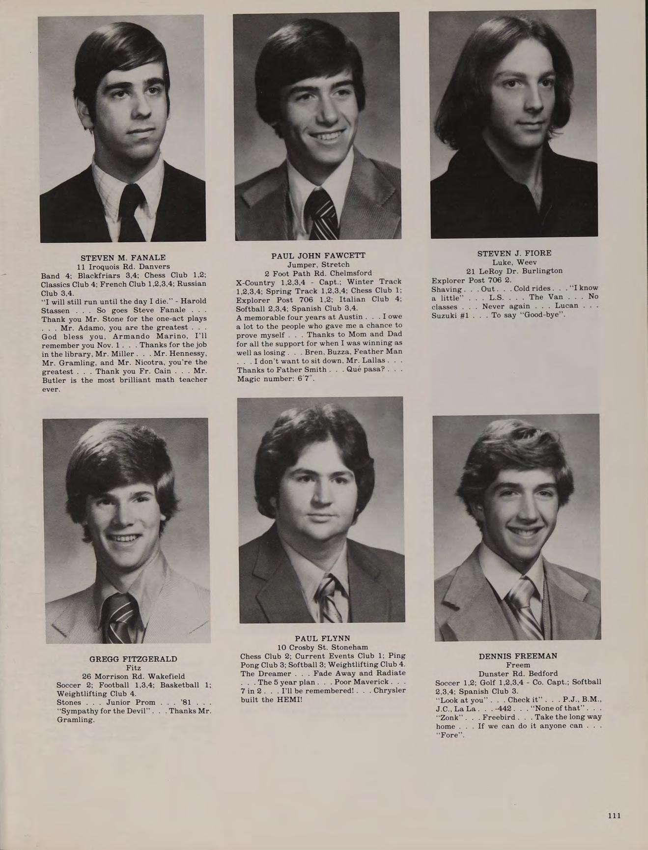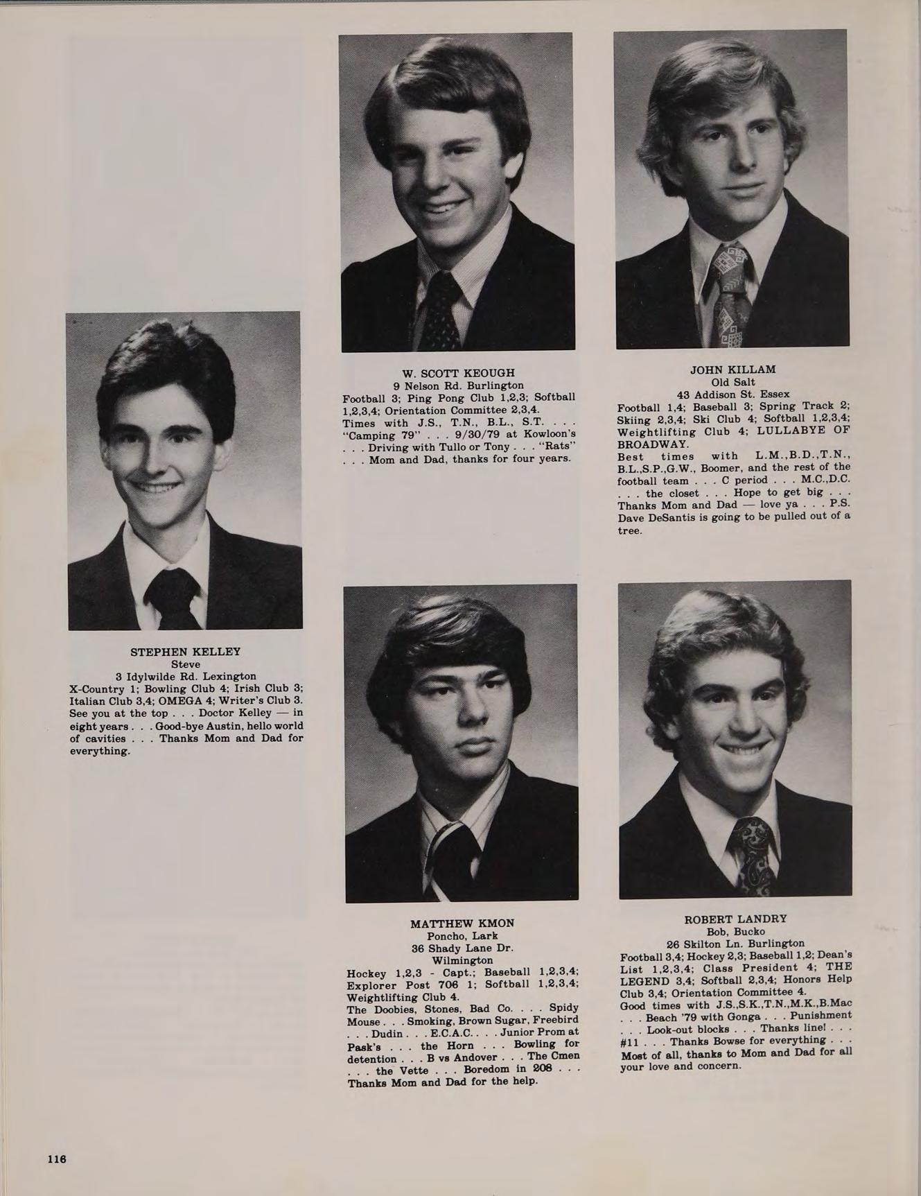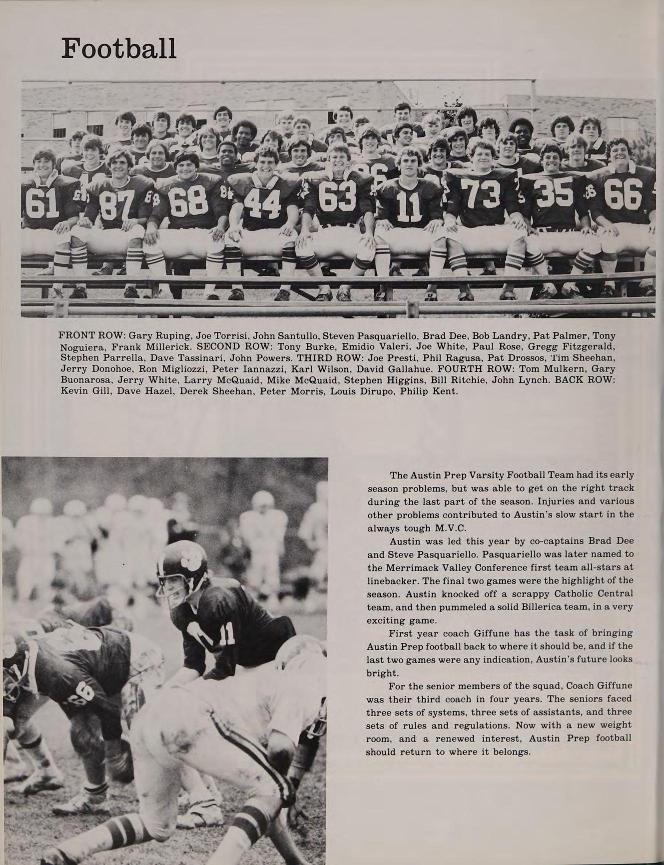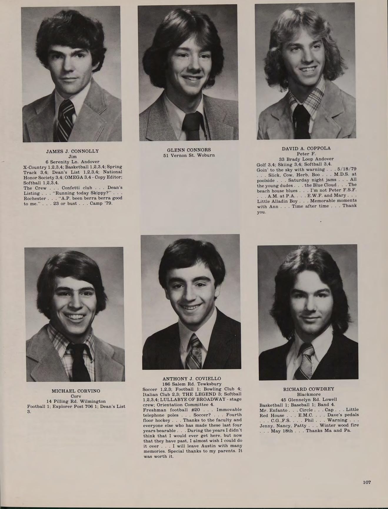 67 Lucerne Dr. Andover Football 1,2,3,4; Basketball 1,2,3,4; Spring Track 1,2,3,4; Class Treasurer 4; Intramural Basketball 1; Softball 1,2,3,4; Honors Help Club 4.