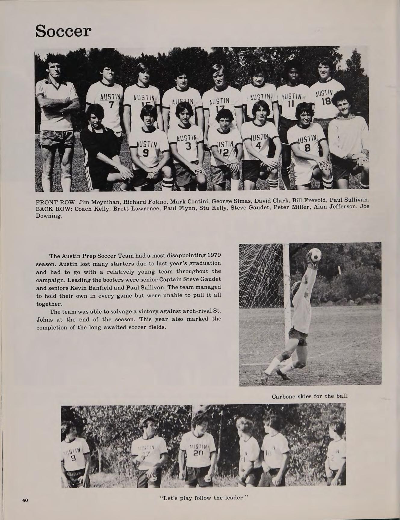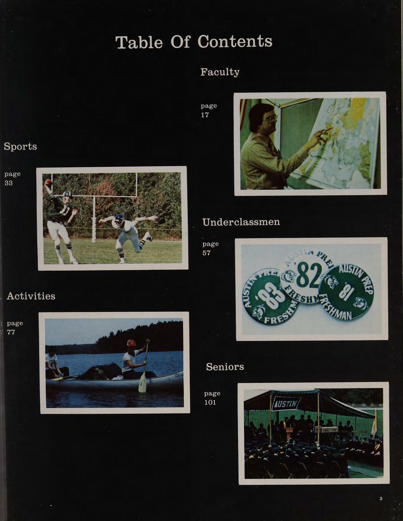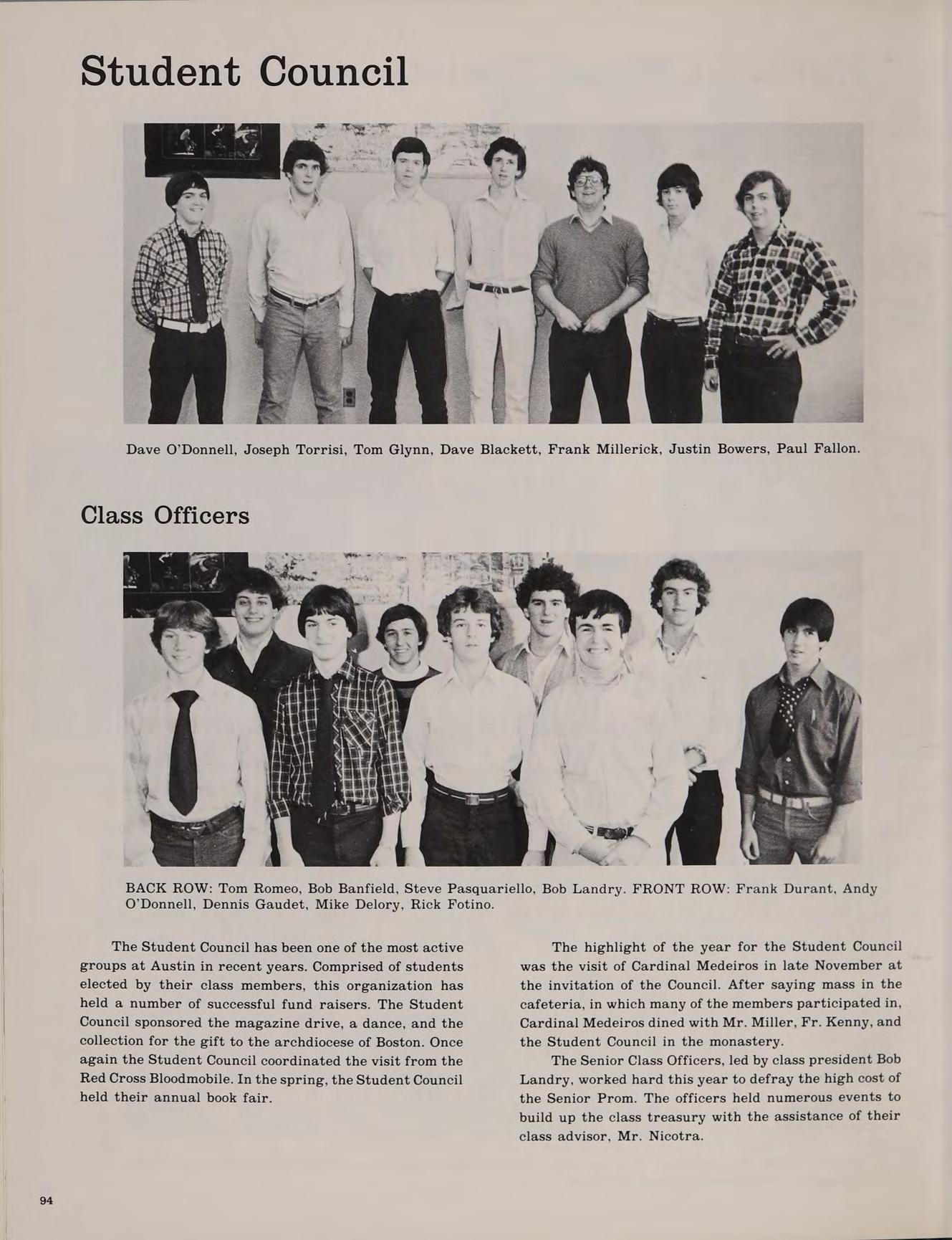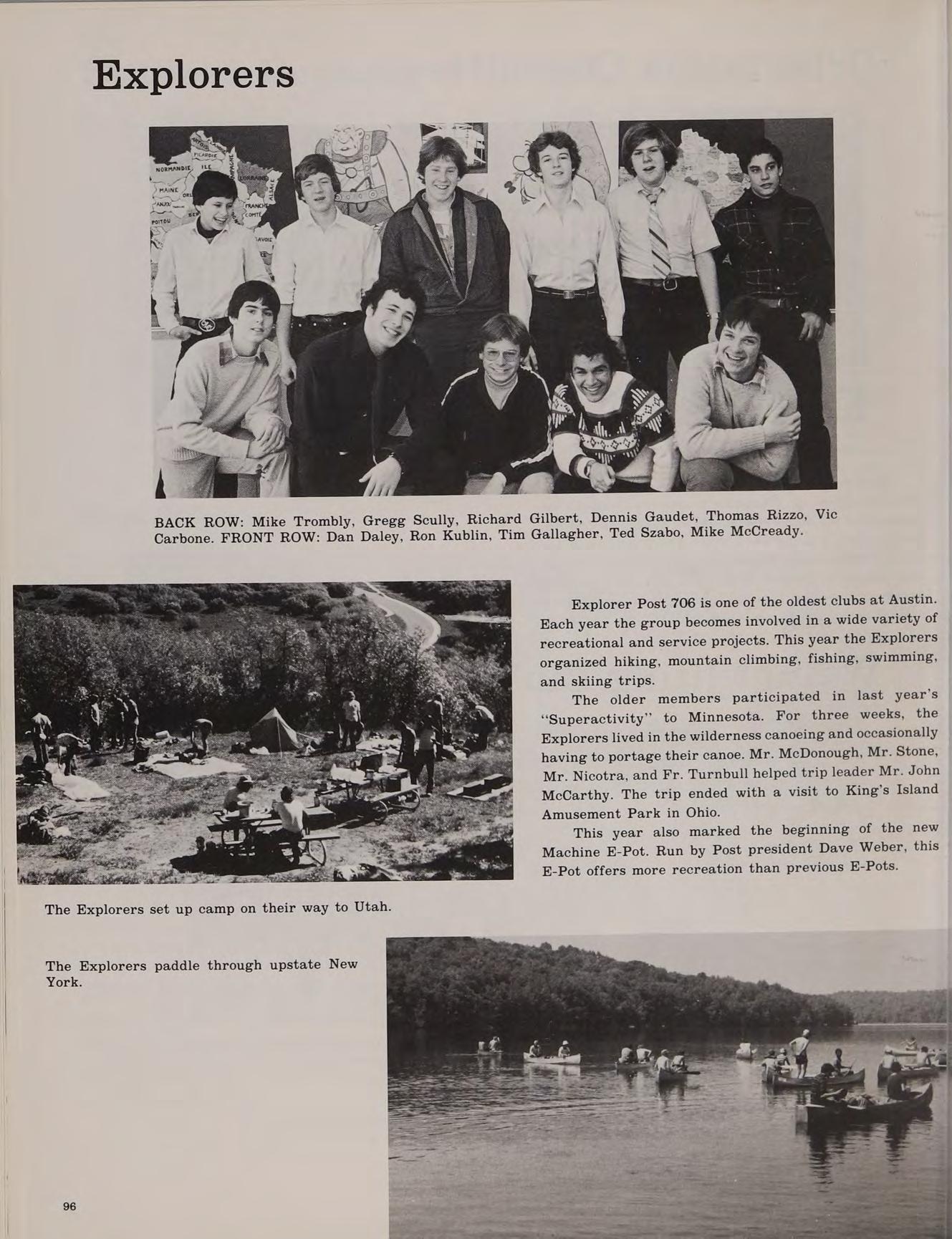 Each incoming Freshman class at Austin is an unorganized but enthusiastic group. Many of the students have never met each other before and, therefore, have never worked together. Yet, somehow, Austin constantly turns out many successful teams. The varsity hockey team is recognized across the state, the cross country team has won the state championship, the chess team has always been very competitive, the golf team has won several Merrimack Valley championships. Austin is a Catholic institution, but students of all faiths are accepted. A close look at the student body will reveal Catholics, Protestants, Jews and people of other beliefs. There is a chaplain who provides spiritual guidance and counseling for all students. When school is in session, liturgies are held in the school chapel, but the sacraments are celebrated even on camping trips in the wildnerness.