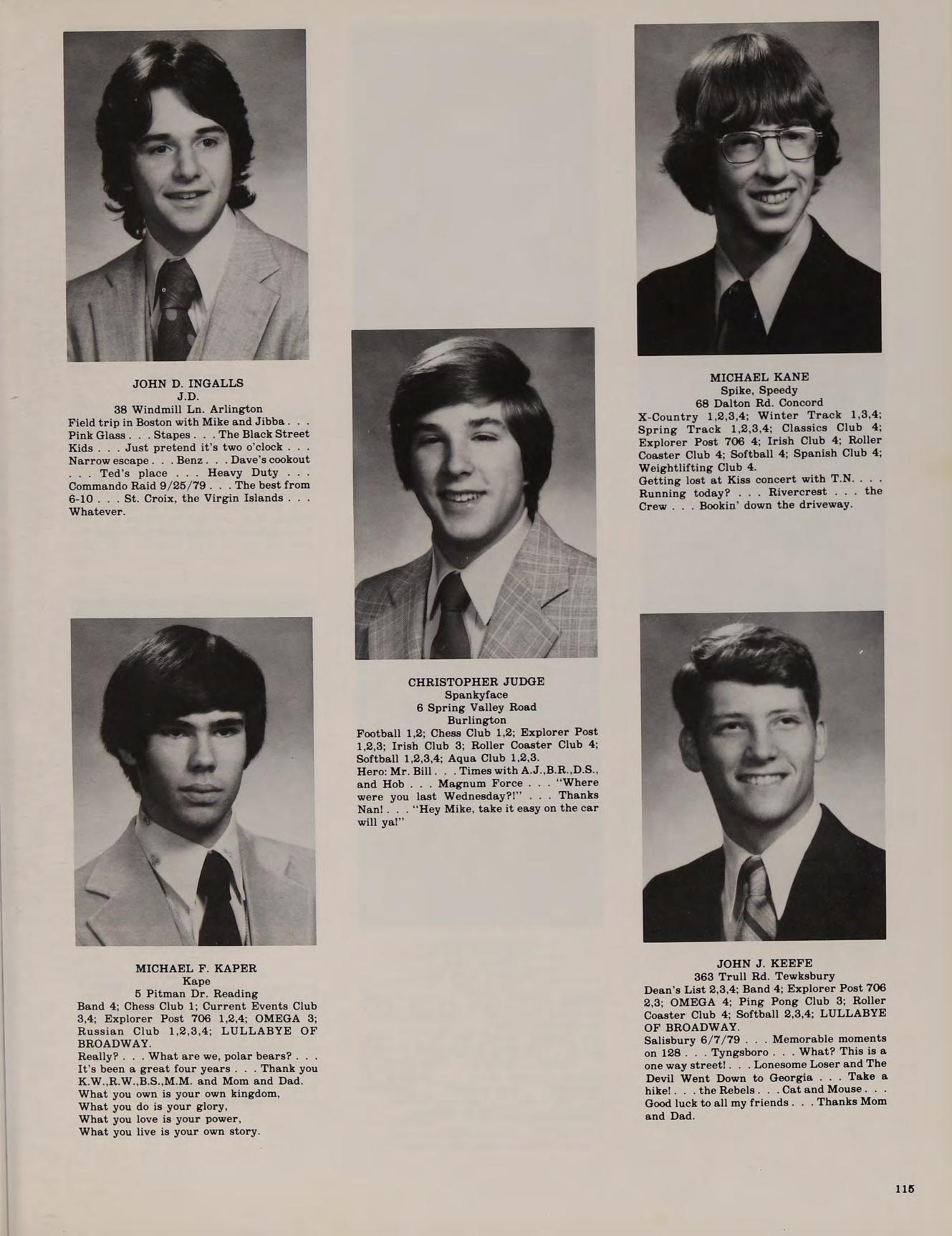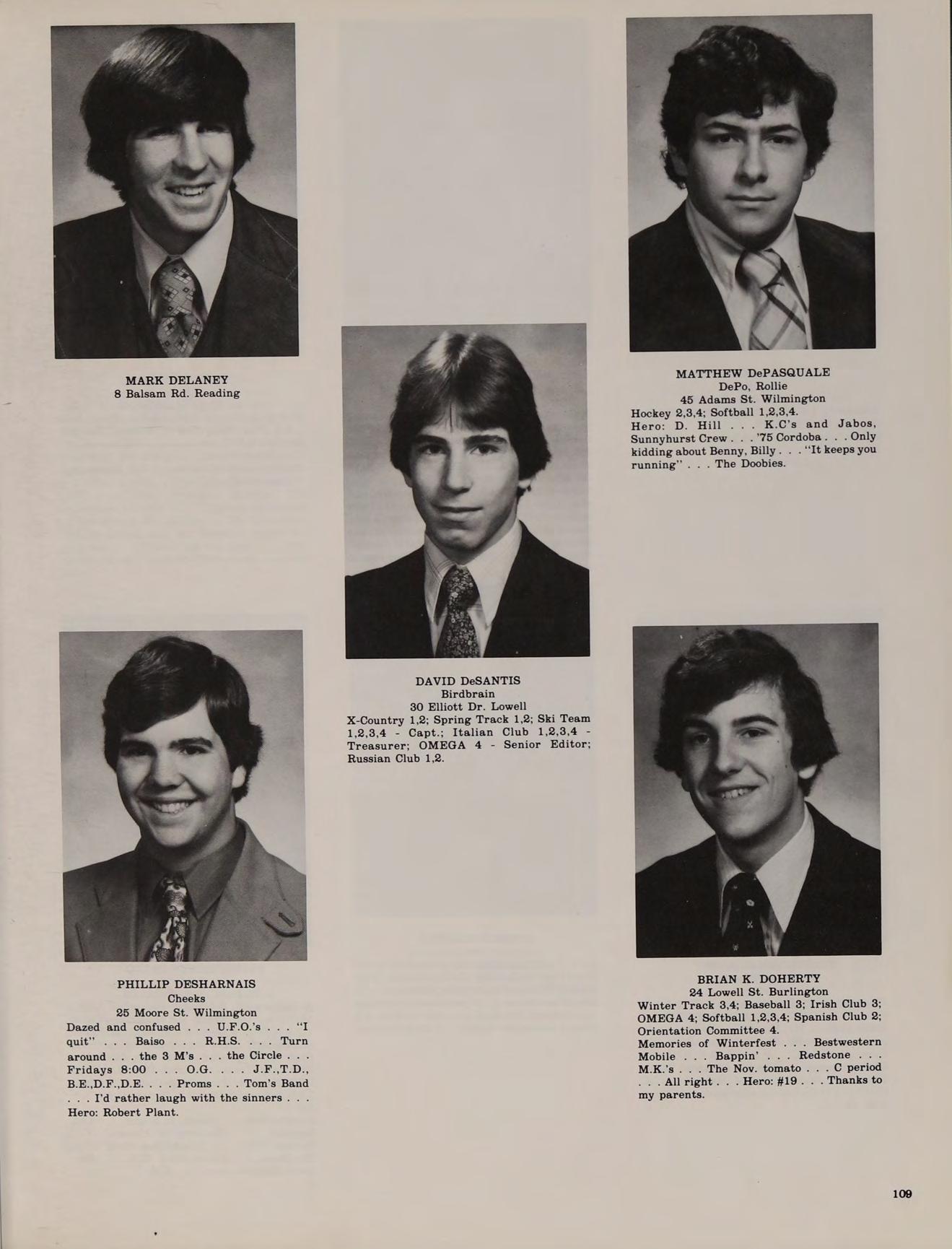 Mike 7 Myrna Rd. Burlington X-Country 1; Winter Track 1; Baseball 1,2; Dean’s List 1,2,3,4; French Club 3,4; OMEGA 4 - Photo Librarian; Softball 1,2,3,4; Honors Help Club 2,3,4.