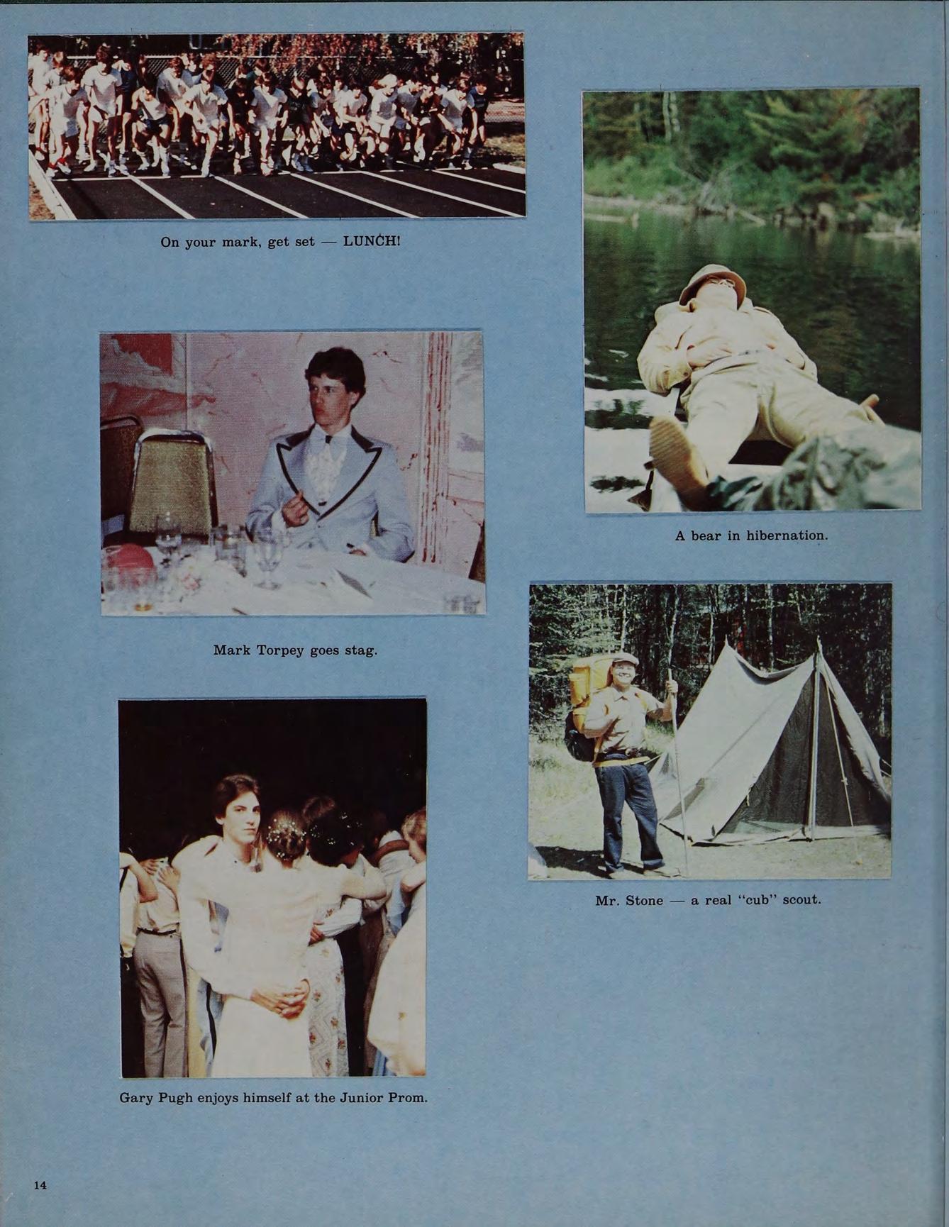 X-Country 1; Hockey 1,2,3,4; Softball 2,3,4. Stones Seiger Skynard Zeppelin. .C period. Cutting down Bill “Thank God It’s Friday”’.