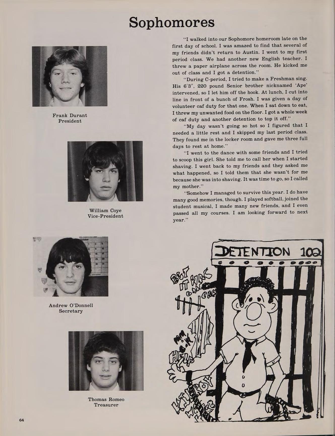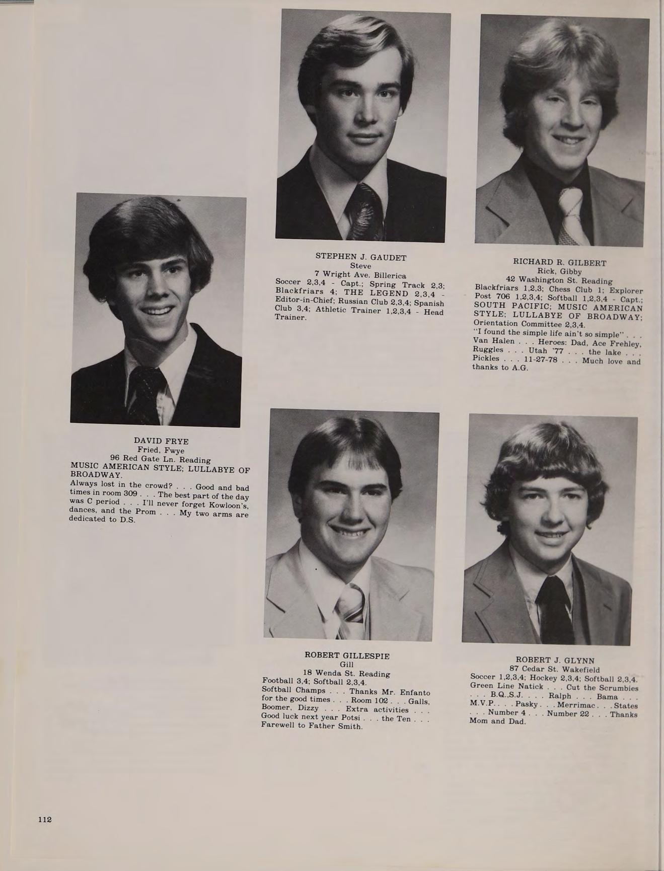 Football 1,2,3,4; Spring Track 1,2; Dean’s List 1,2; Class Treasurer 3; Blackfriars 3,4; Classics Club 2,3,4; Weightlifting Club 4; OMEGA 4; Softball 2,3,4; Current Events Club 3,4; LEGEND 4; Writers’ Club 3,4; MUSIC AMERICAN STYLE; LULLABYE OF BROADWAY; Honors Help Club 3,4.