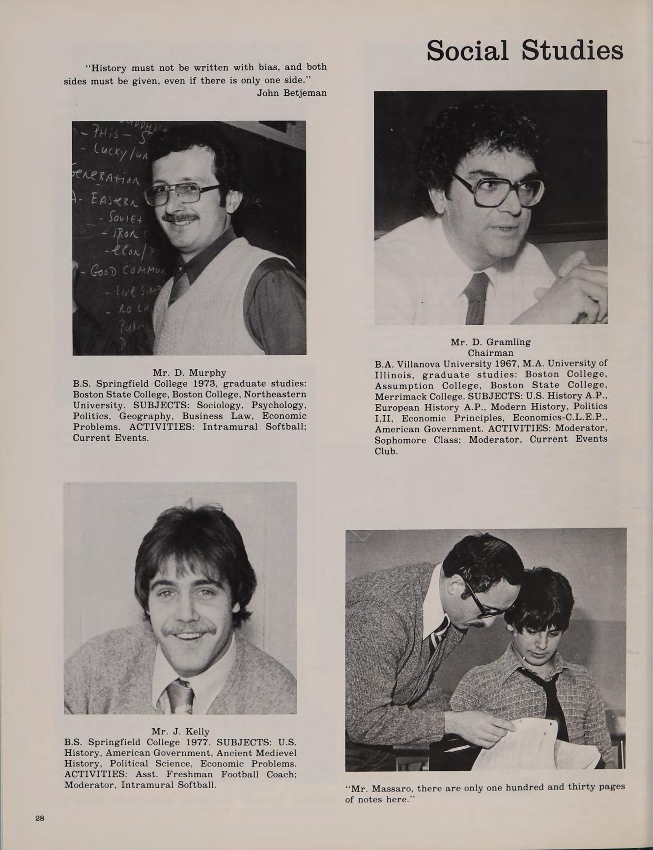 B.S. Salem State College 1971, graduate studies: San Diego State College. SUBJECTS: Language Arts I,II, Composition. ACTIVITIES: Moderator, Weight Lifting Club.