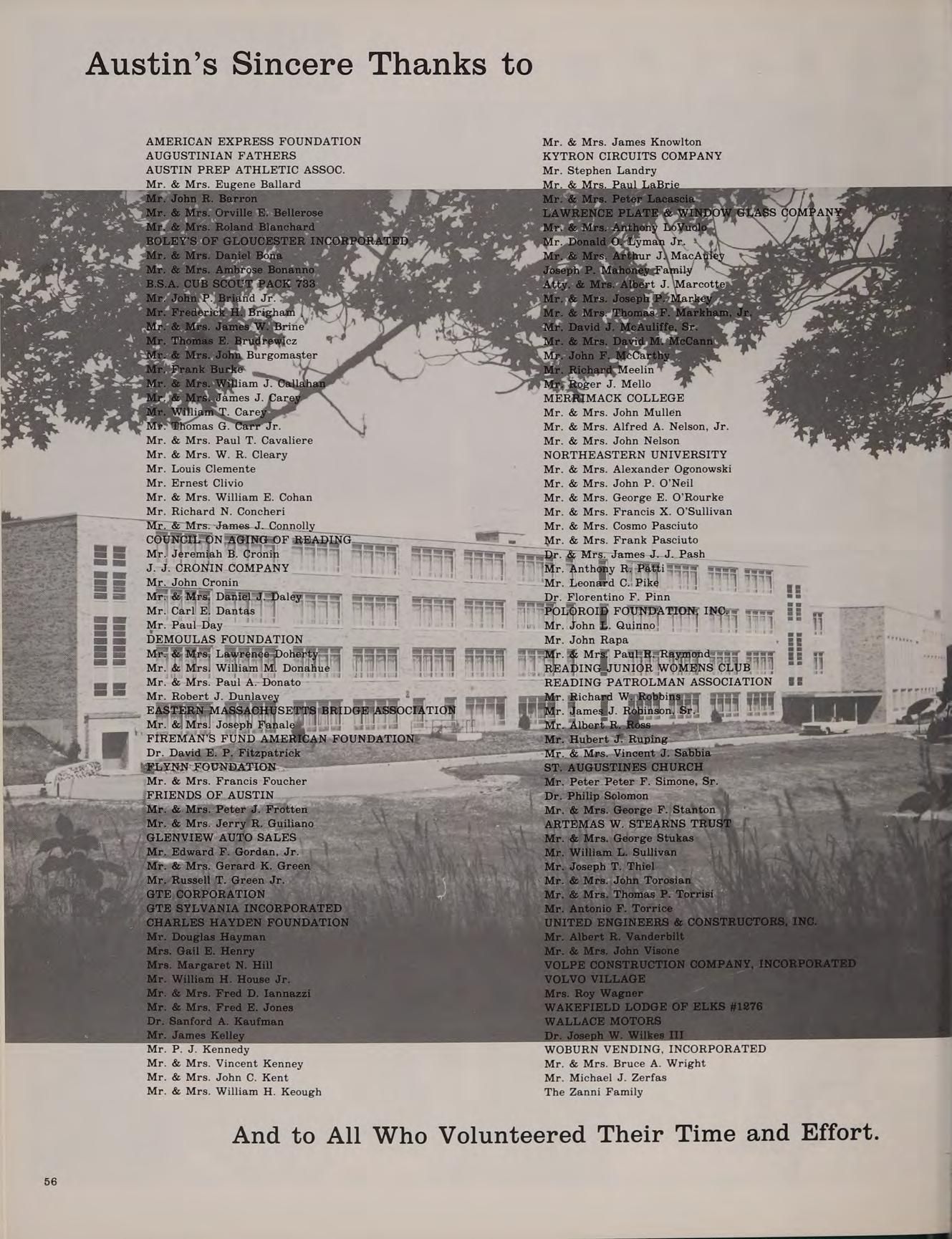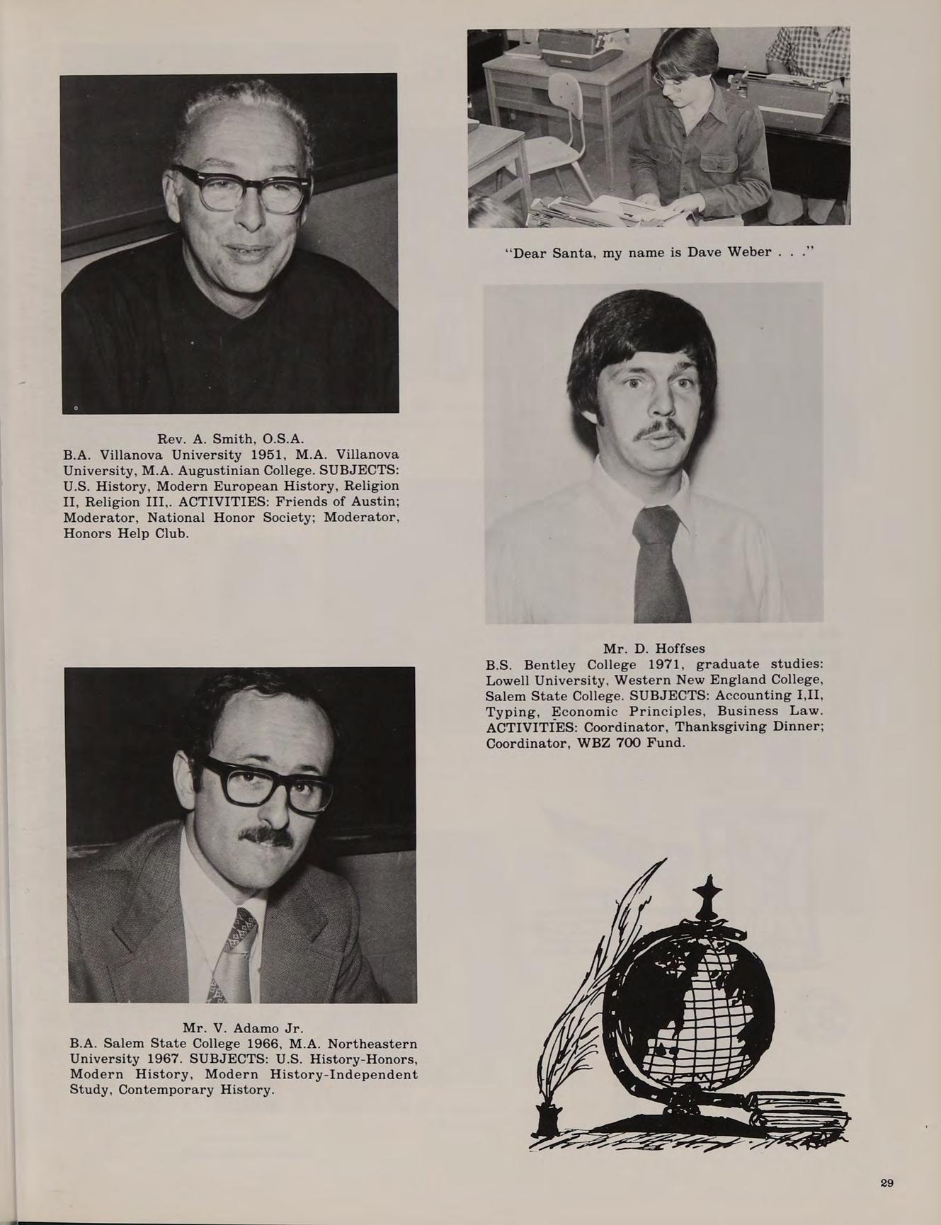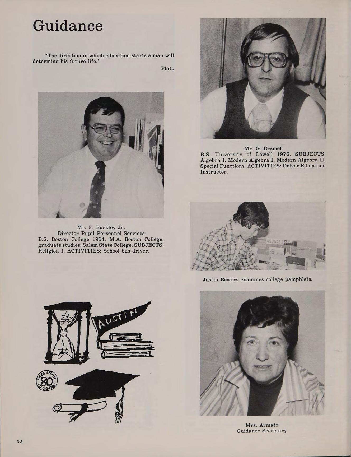 A.B. Merrimack College 1967, graduate studies: Boston College. SUBJECTS: British Literature, Literary Analysis. ACTIVITIES: Student Council Adviser; Cheerleader Adviser; Co-Moderator, Friends of Austin.