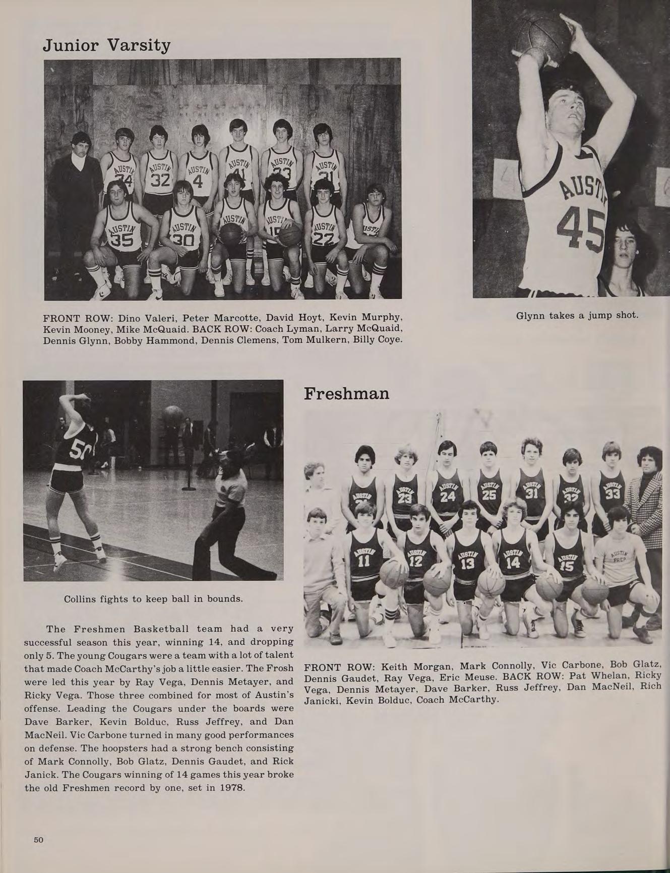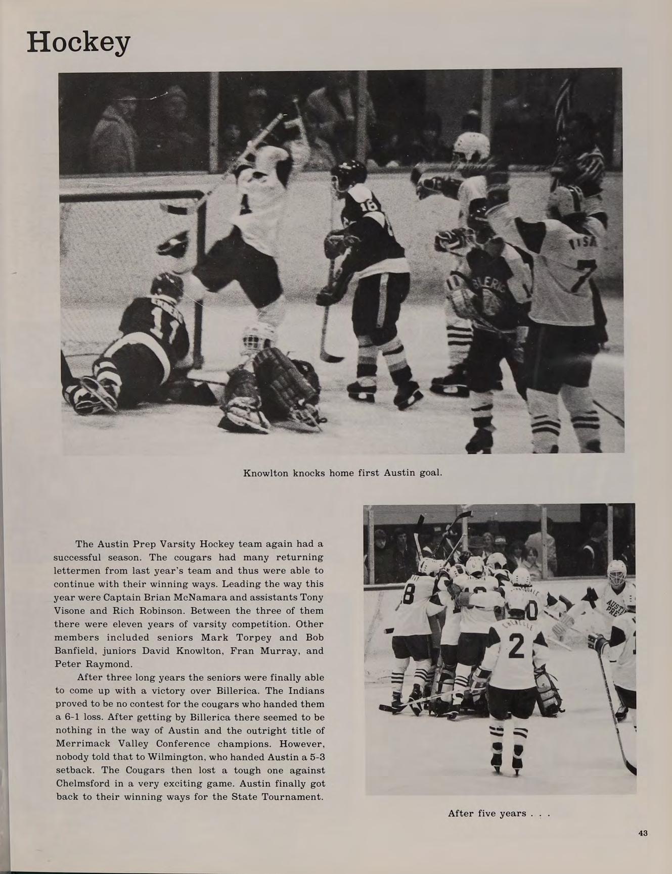 Greenline I'll see you after the game Cut the scrubies Number 9... Billerica dies in’79-’80. .Shwine. J.P. at Hounds. .the Garden. Coach Hayes ... Merrimack 6 A.-M. ... B.G.,B:D., P.P.,D.T.,M.S.,J.S.,B.M.,S.W.,T.B., T.G. and everyone else at Austin Thanks Mom and Dad for the three years. That’ll be all.