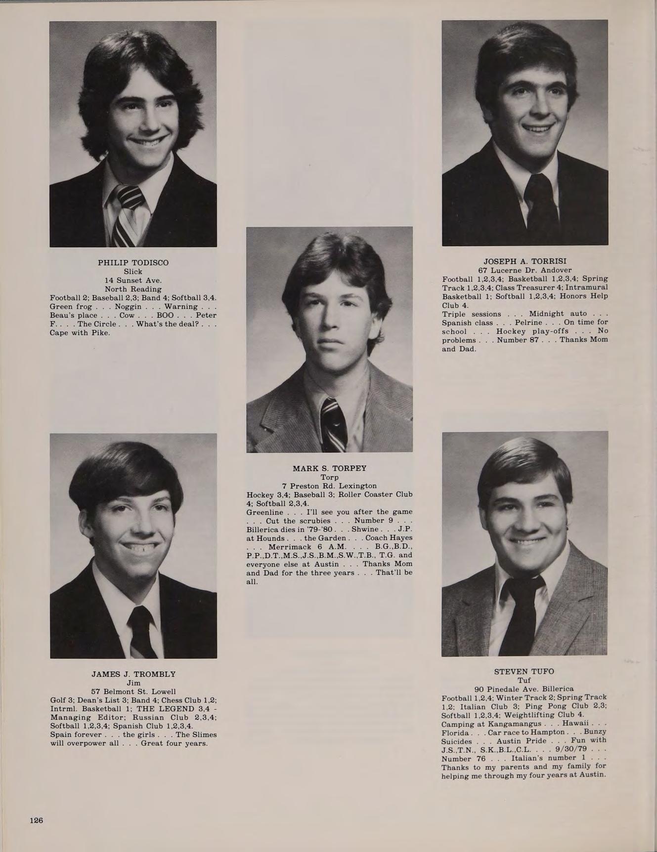 Tuf 90 Pinedale Ave. Billerica Football 1,2,4; Winter Track 2; Spring Track 1,2; Italian Club 3; Ping Pong Club 2,3; Softball 1,2,3,4; Weightlifting Club 4. Camping at Kangamangus. Hawaii. . Florida. .CarracetoHampton. Bunzy Suicides Austin Pride Fun with JS TN, S.KBLACL: .. 9/30/19