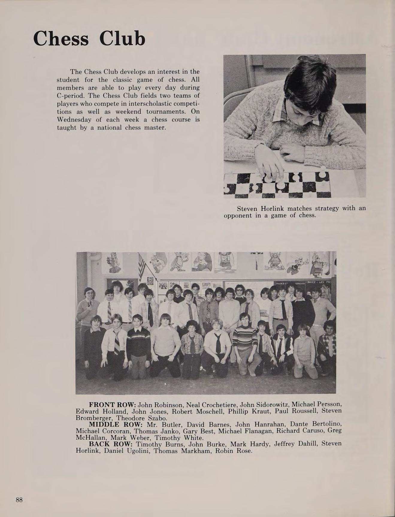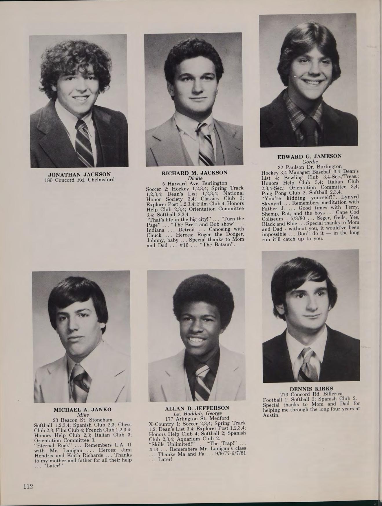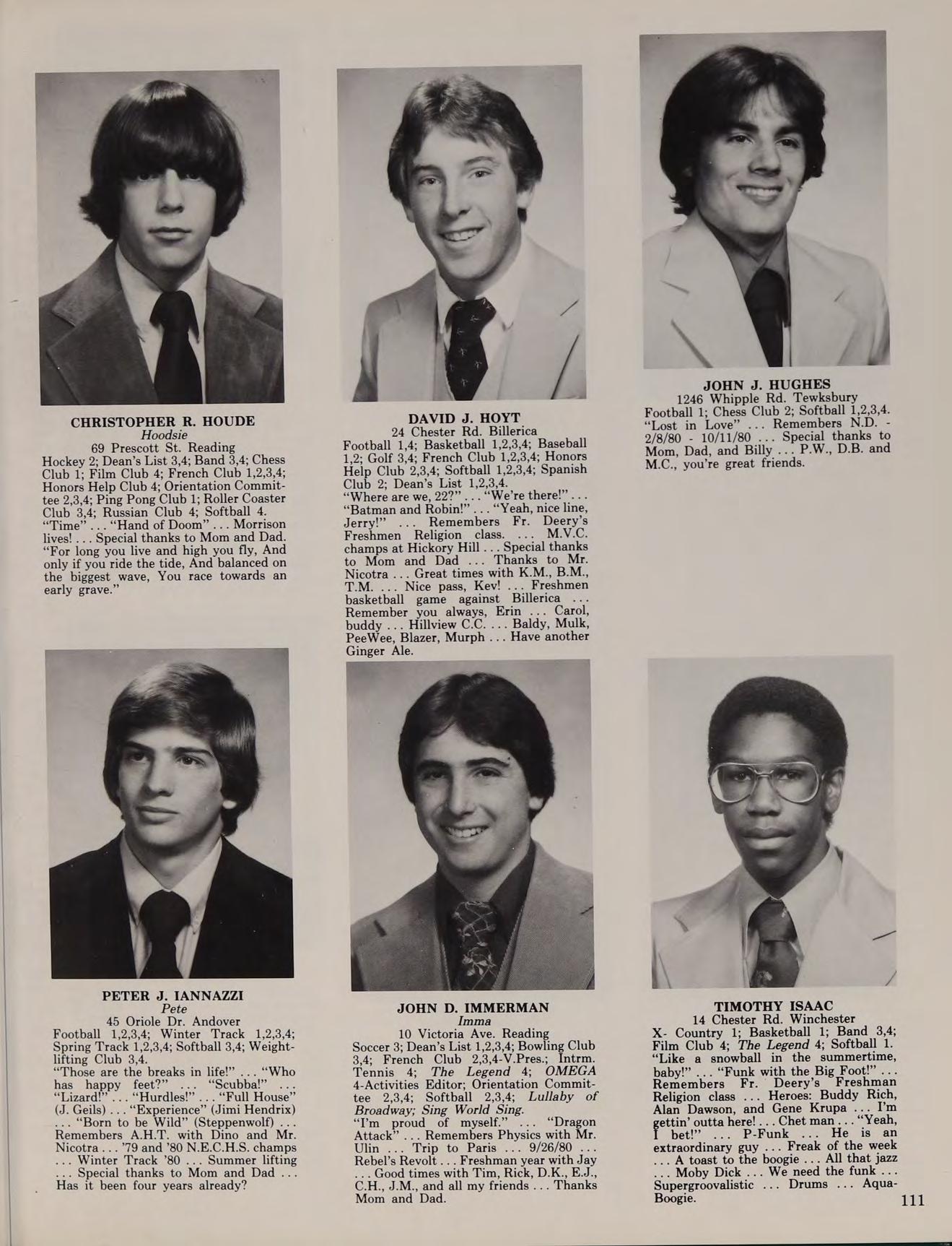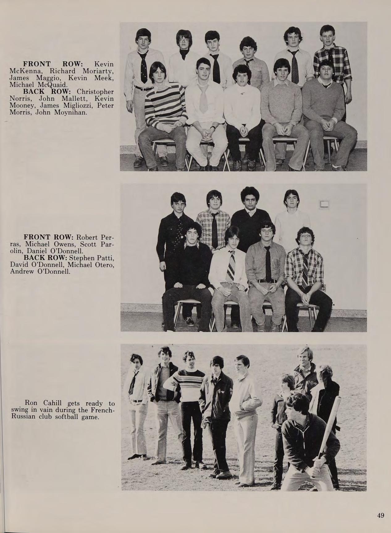 X-Country 1; Chess Club 3,4; Excursion Club 4; Explorer Post 4; Film Club 4; French Club 4; OMEGA 4; Ping Pong Club 2; Softball 4; Lullaby of Broadway. “Why always me?” ... “Lola” (Kinks) ... Three years with Mr. Enright Heroes: Kowalski and his Challenger ... Special thanks to my parents. ....Farewell; God knows where we will meet again ... The Orbe ... “Don’t Fear the Reaper” ... Get off my axe ... Summer Fest 3... Beware of priests wearing belts... J.A., M.N., J.J., M.J. ... May they all go forth and bear the fruits of happiness.