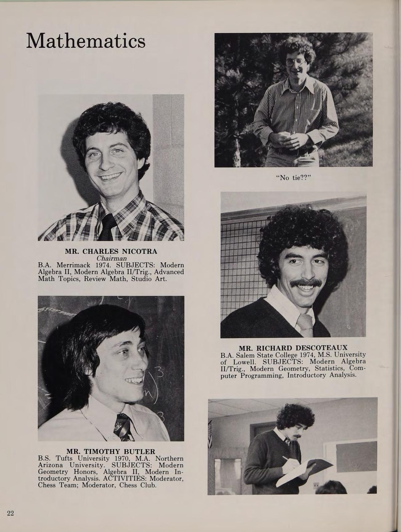 B.A. Colby College 1972. SUBJECTS: Algebra I, Algebra II, Plane Geometry. ACTIVITIES: Asst. Varsity Football Coach; Moderator, Debate Club.
