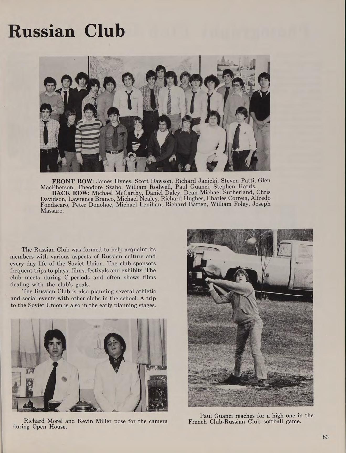 Soccer 2,3,4; Football 1; Band 3,4; Chess Club 1,2,3; OMEGA 4; Orientation Committee 4; Roller Coaster Club 3,4; Russian Club 1,2,3,4; Softball 2,3,4; Spanish Club 3; Lullaby of Broadway; Sing World Sing.