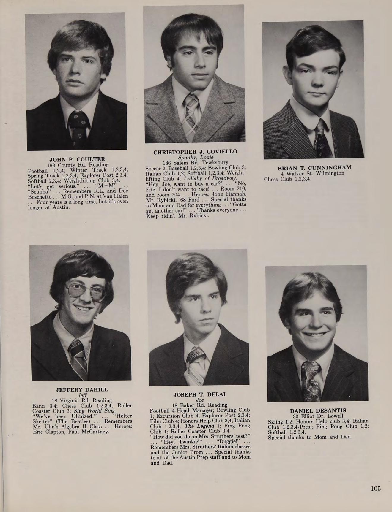 34 Audubon Rd. Reading Chess Club 1; Italian Club 1,2; Softball 2,3,4.