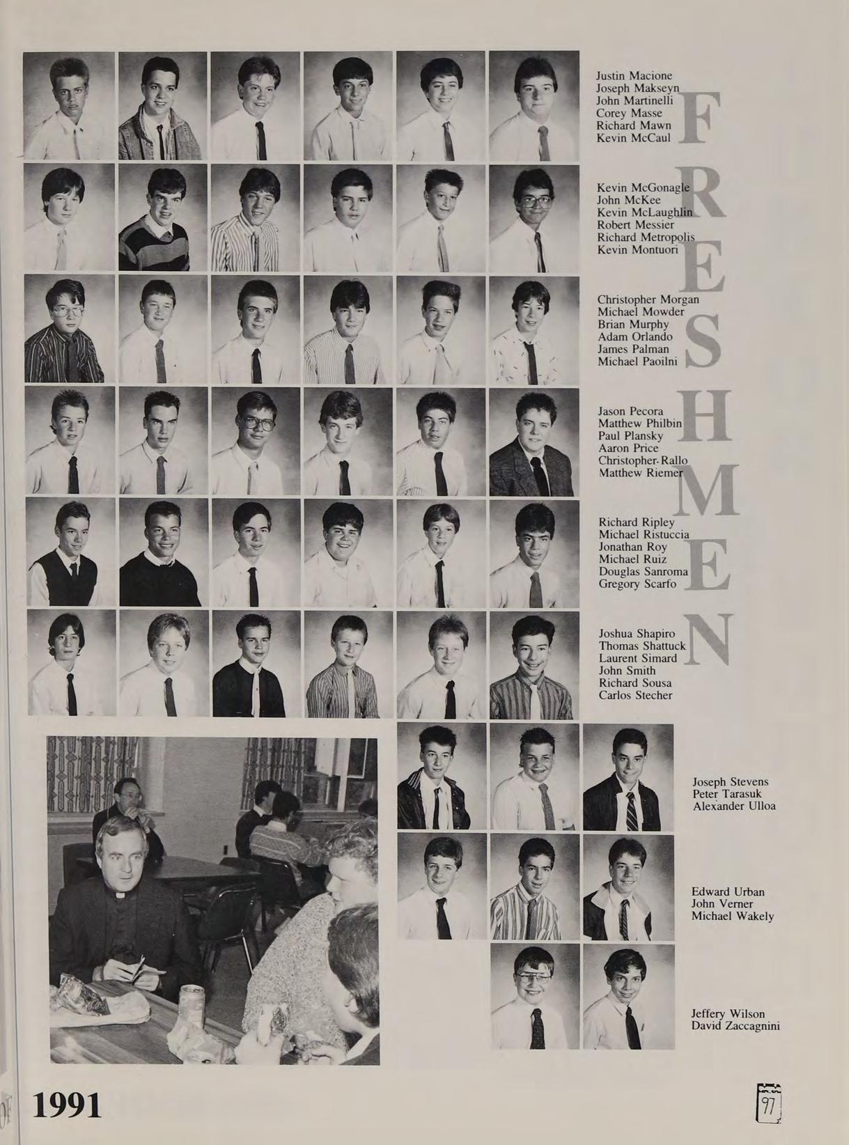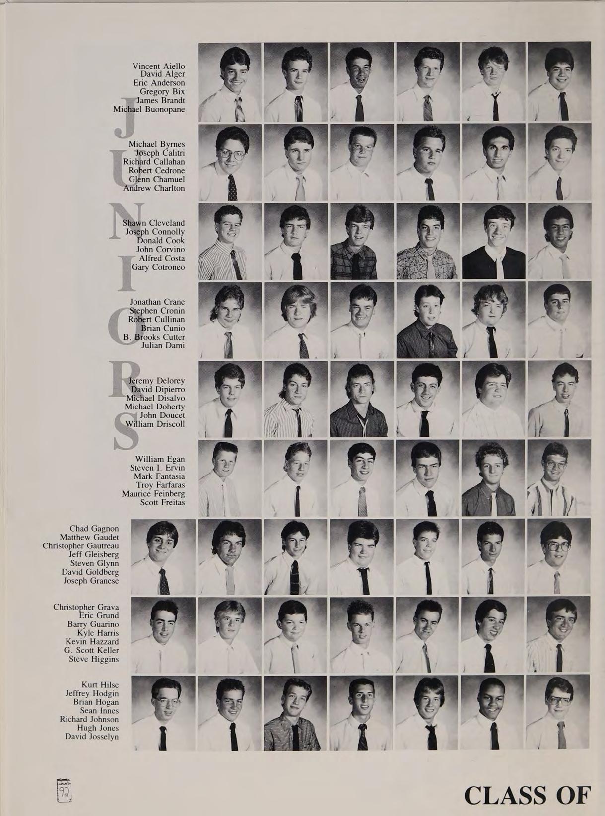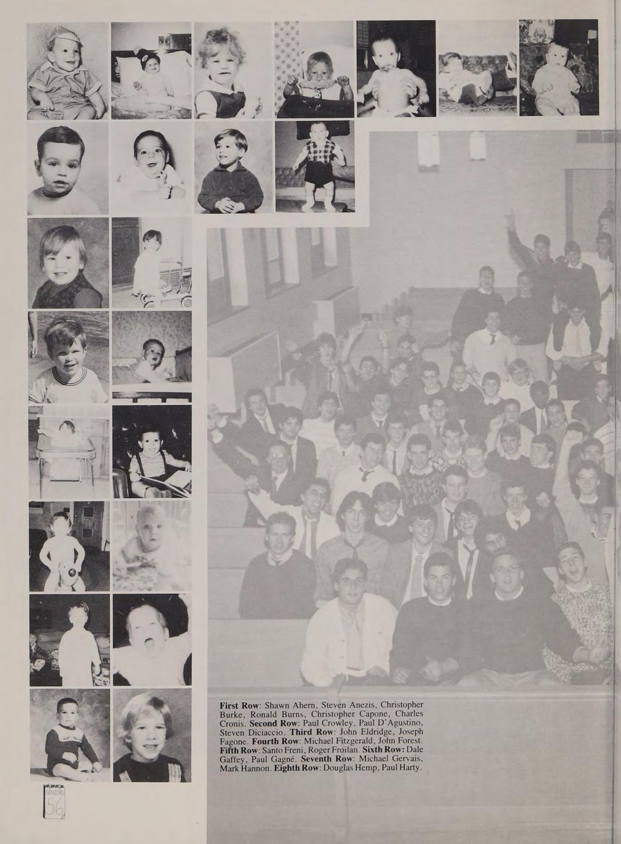 First Row: Shawn Ahern, Steven Anezis, Christopher Burke, Ronald Burns, Christopher Capone, Charles Cronis. Second Row: Paul Crowley, Paul D’Agustino, Steven Diciaccio. Third Row: John Eldridge, Joseph Fagone. Fourth Row: Michael Fitzgerald, John Forest. Fifth Row: Santo Freni, Roger Froilan. Sixth Row: Dale Gaffey, Paul Gagné. Seventh Row: Michael Gervais, Mark Hannon. Eighth Row: Douglas Hemp, Paul Harty.