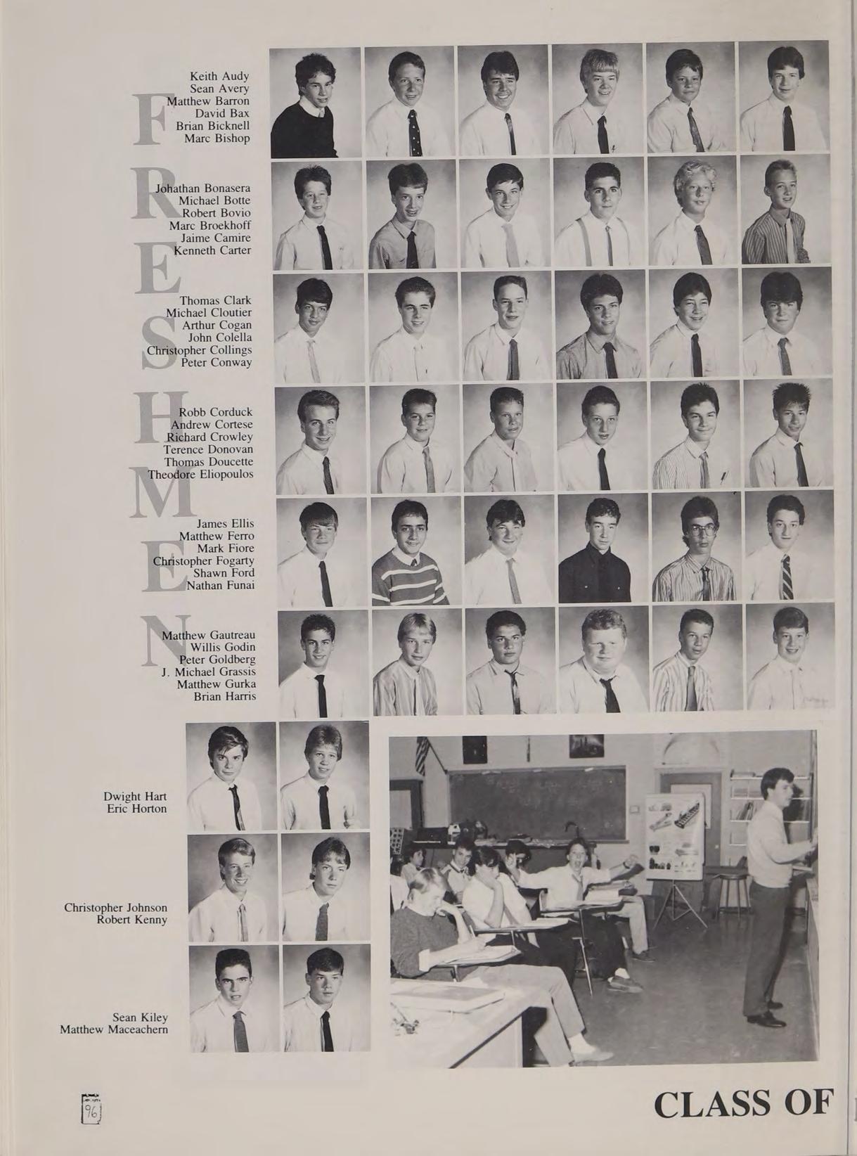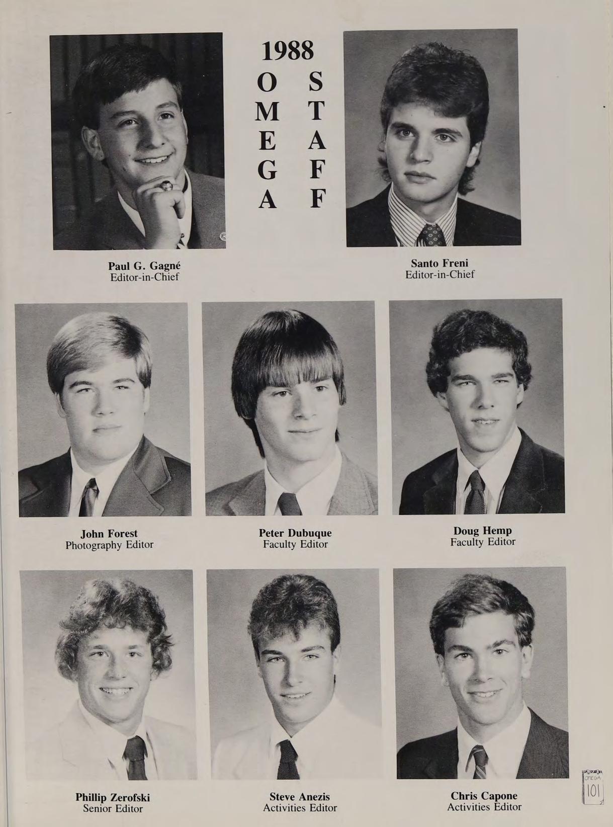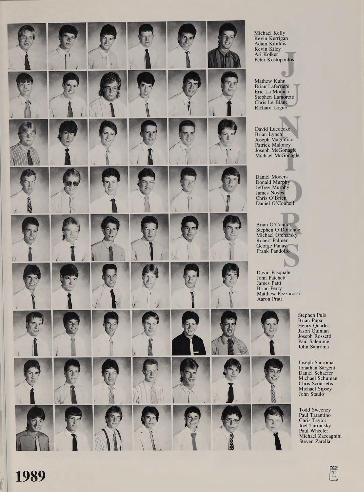 First Row: Shawn Ahern, Steven Anezis, Christopher Burke, Ronald Burns, Christopher Capone, Charles Cronis. Second Row: Paul Crowley, Paul D’Agustino, Steven Diciaccio. Third Row: John Eldridge, Joseph Fagone. Fourth Row: Michael Fitzgerald, John Forest. Fifth Row: Santo Freni, Roger Froilan. Sixth Row: Dale Gaffey, Paul Gagné. Seventh Row: Michael Gervais, Mark Hannon. Eighth Row: Douglas Hemp, Paul Harty.
