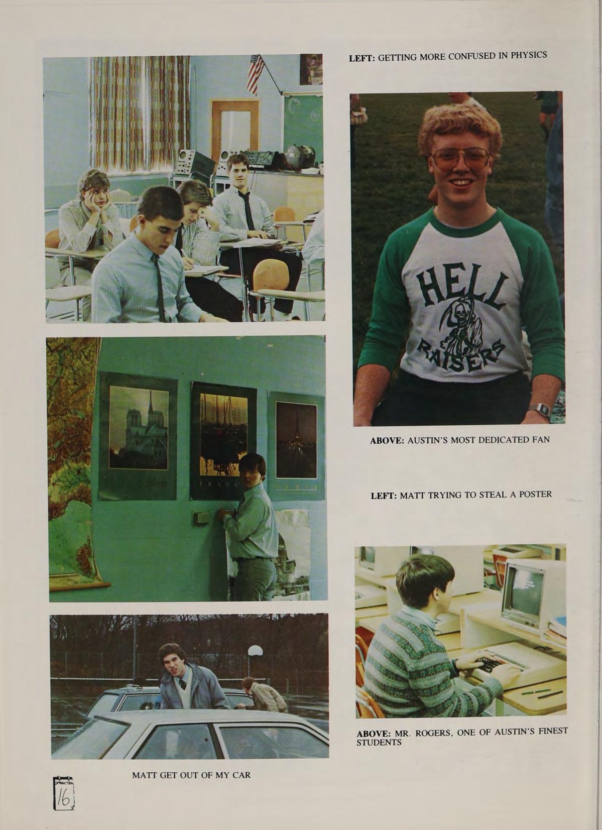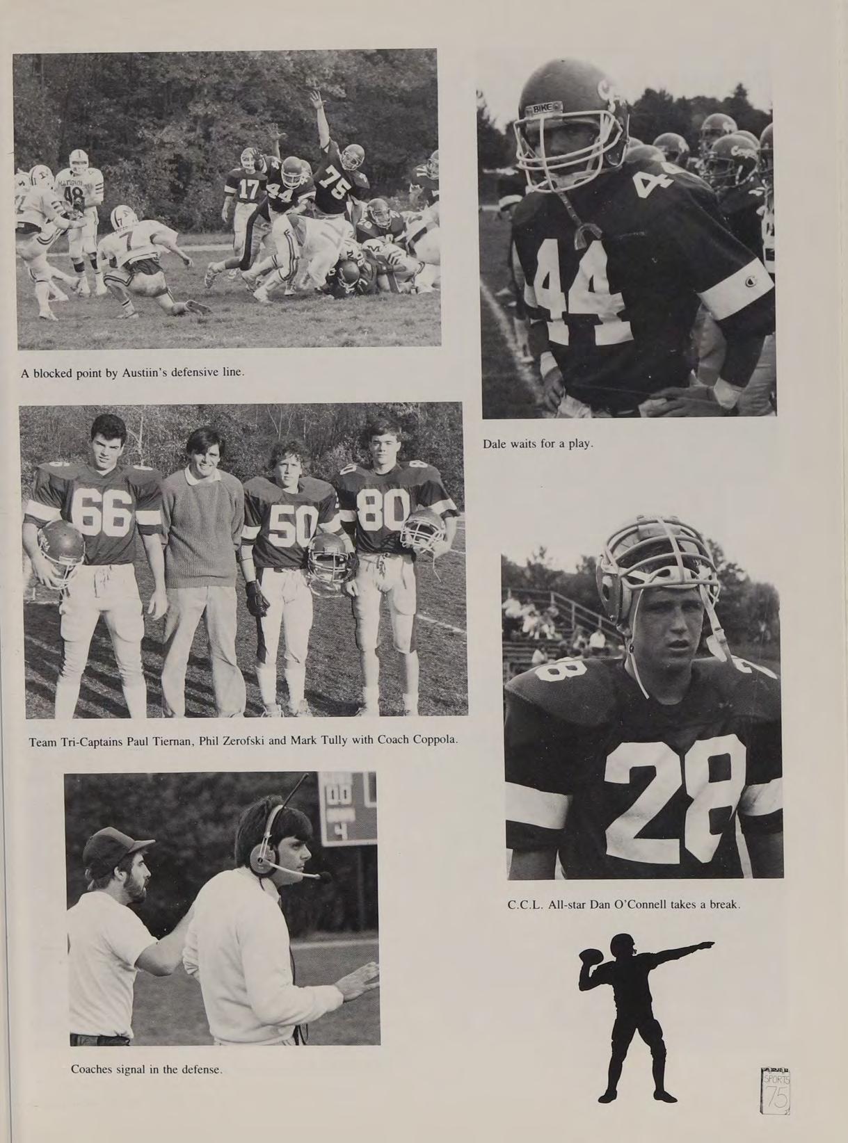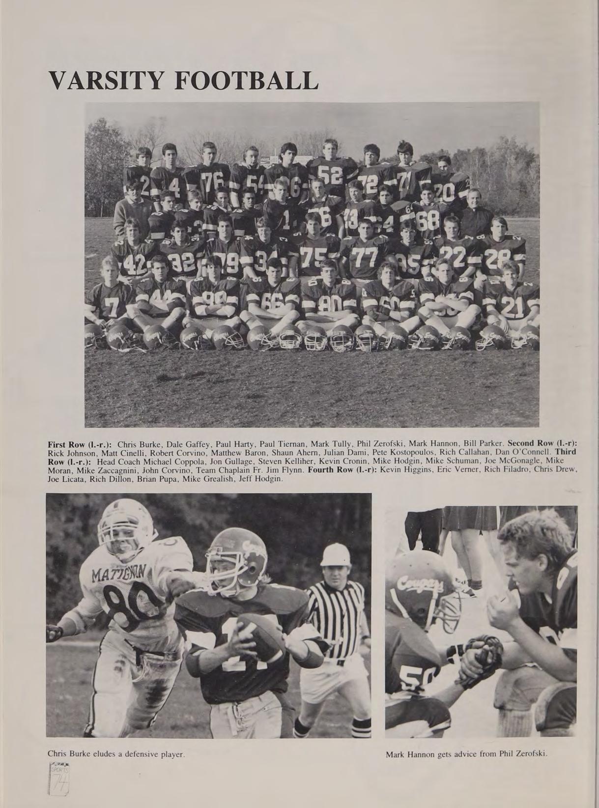 Heroes: Mr. Adamo, Michael Jordan, Jimmy Hendrix, Expose (all three). Good times with PT, DC, SG, JB, PZ, GG, TS. Pet peeves: PT’s lies, Fr. Flynn’s 2-hour tests; cold, wet football practices, the coach’s fits, doing halves on my kudoos, homework, 5 hours of sleep, breaking my collarbone. Remembers: football camp with Pags and Phil, ‘“Blessed be God’’ — P.t. 87, “See ya later girls oops!’’ beating St. Clements 15-14, “‘Ooooff the Bus! (Hooray),’’ Skiing at Loon, Phil at football practice, ‘Mr. Maguire, don’t make me angry!’’ Coach Pike sprints, getting the game ball, Senior football players, the cheerleader crowd. Thanks to Fr. Flynn and the rest of my teachers. Special thank you Mom and Dad for putting up with my grief. Goodbye Austin and Helloooo Coed College. Good times are yet to come!