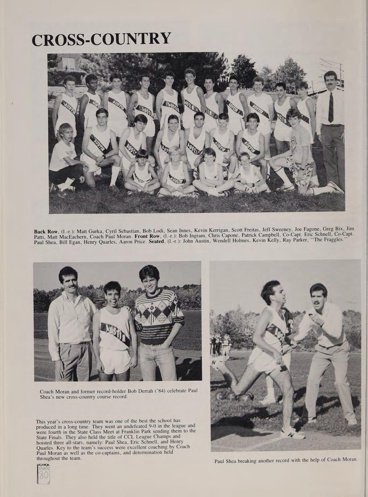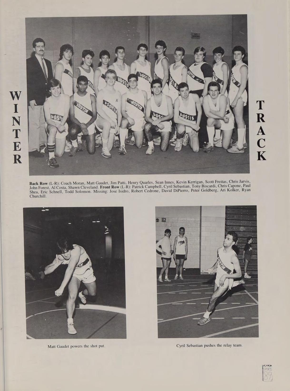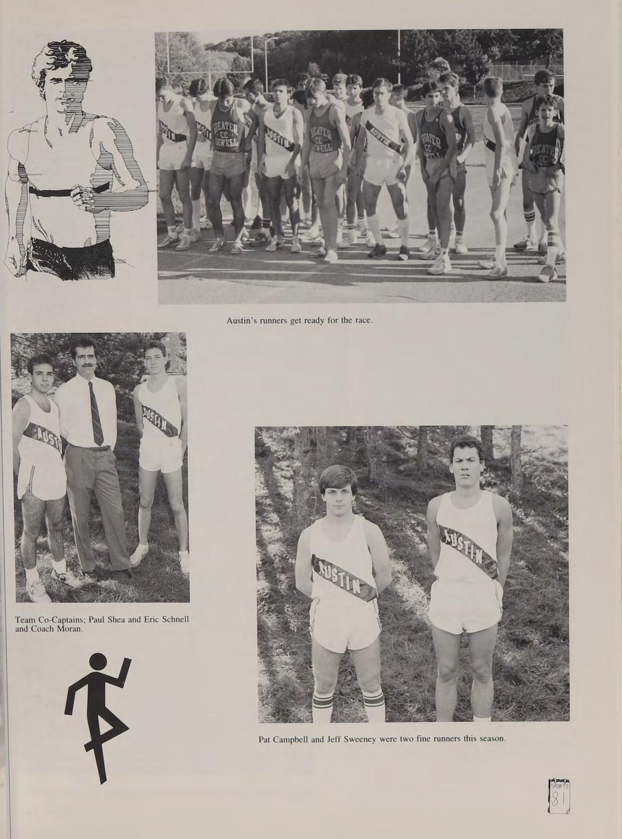 Cross-Country 1,2,3,4 (Capt. 4); Winter Track 3,4 (Capt. 4); Spring Track 2,3,4; Hockey 1,2; Disciplinary Review Board 2,3,4; Intramural Street Hockey 2; Intramural Softball 4. Hero: The Tasmanian Devil and Tammy and Jim Bakker. Special Quotes: See ya! Good-bye! Call you tomorrow! New Year’s at Bucky’s house, ‘‘Finally got my dream,’’ ‘‘Remember the white letters,"’ P & S runs, Prom with Sharleen, Kinney X-C, State Finals, Sansone’s condo on New Year's Eve. **Did get hit with a snowball?’’ ‘‘Let’s go regroup,’’ ‘‘Guam,”’ “‘Head of Bone,” ‘‘Here comes the watermelons,’’ ‘‘Hi, Matt,’’ “‘Who’s the kid with the hairy legs?’’ Ground Round before Div. III Finals, the race through Liberty Tree Mall, Lynnfield Bus, Bunkhouse brawls, The Lake, remember Scruffy the garbage picker, 85-87 League Meet, Special thanks to Mom & Dad and the following: Mr. Moran, Mr. Pacino, the whole Austin Class of 88 and DL, SO. love ya guys.