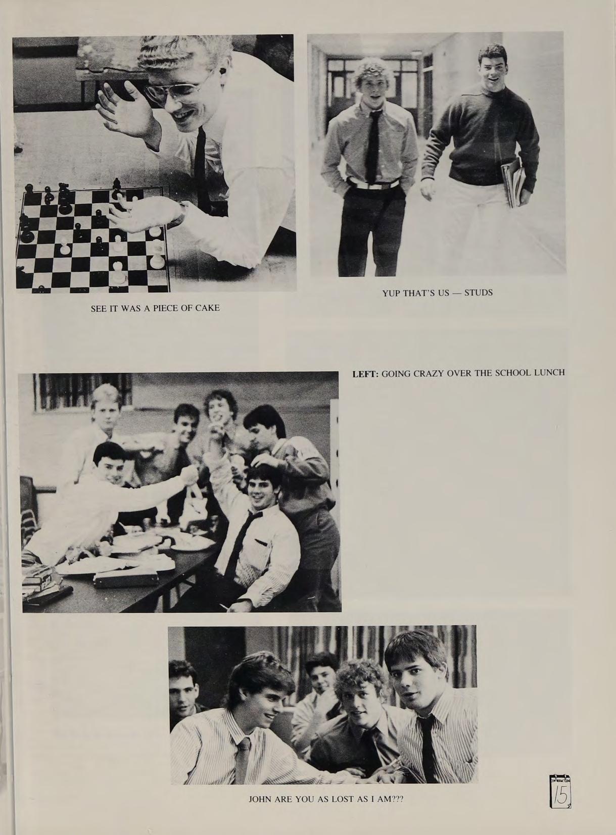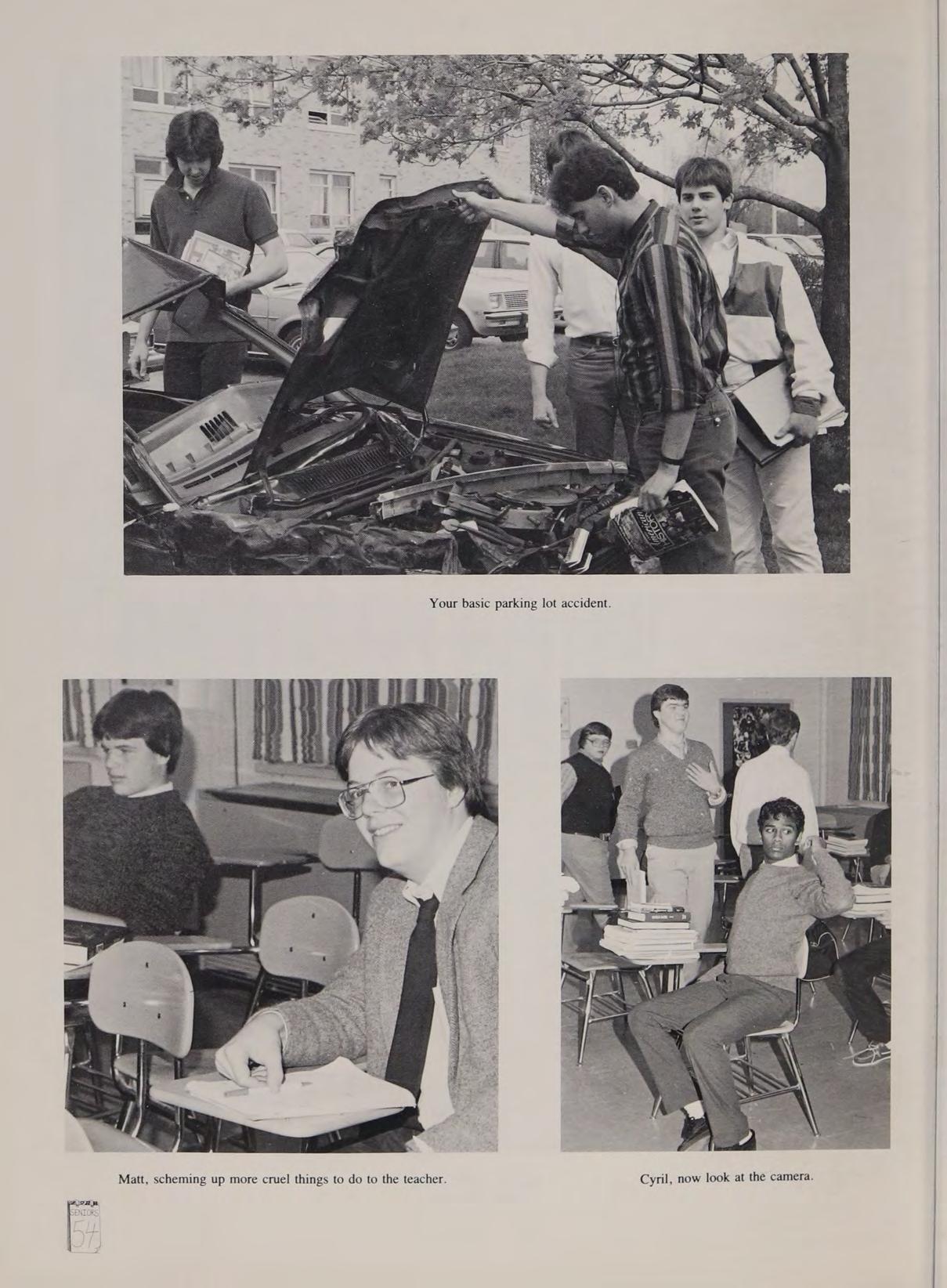 Remembers: JV Basketball — Gene at Savin, Aerosmith Concert on New Year’s Eve, Stern losing weight over the summer — “Right, better luck next time,’’ Basketball games we won!”” Dr. Wrobel’s Chemistry class, ‘‘See ya!’’ Good times with MH, DS, RB, DC, EG, **‘Moose,’’ TH, BL, PC, ‘*Dag.’’ Favorite teachers: Fr. Flynn and Mr. Miller. Thanks to Fr. Murphy and everybody at C.A.W. Special thanks to Mom and Dad for their support over these last four years. ‘‘Today will pass us by, but memories will last forever.’’ Best of luck to the Class of '88. See you in a couple of years? ‘‘Pump up the volume!’*