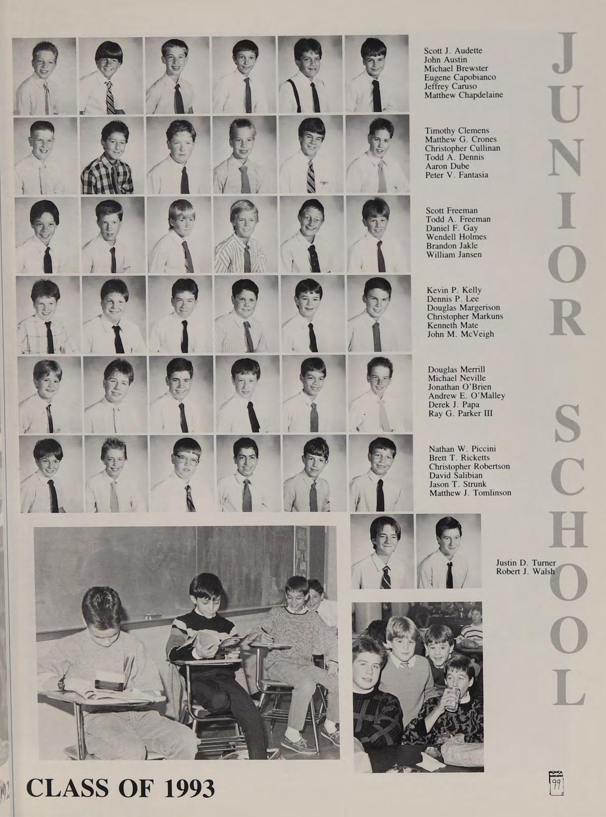 Remembers: winning state soccer game, Dracut, #6, Salisbury runs, Jamaica with CT, earring & Dad’s comments, radical skiing, Saugus, snowbank, ‘‘Monte,’’ JYD, Heartattack, ‘*87,”’ Sugarloaf, Rag on Todd, Summer in Billerica, Hey Harry Road Trip, Defiance, New Year’s, Rat meets tree, Inga, Mono, School Dance, 2 weeks soccer vacation, A. Semp & Iroc, Reverse Wave, leg action, lost & empty in Maine, Eldy, last one, chimney, indoor soccer, Police Dept. Quotes: Boyle you Box, Whatever, Runaway, Stalibut, Spam, OH NO!, Jerk, Stabbed, Hey Rat Heroes: Hetu, Three Stooges, Bud Man, Alf. Good times with A. Semple, Rat, ME, MB, JE, MD, TF, SF, CW, 2 Fitz, JZ, PZ, CT, JW, MG, CS, CG, JB, RC. Also JS, AL, CD. Favorite songs: Zeppelin Over the Hills and Far Away, Pump up the volume, Push it, Time of My Life, Friends. Somebody has to be. Ma no problem, have everything under control. Special thanx Mom, Dad, Chico and especially Peg. You don’t have to worry about me anymore. I’m Norwich’s problem now