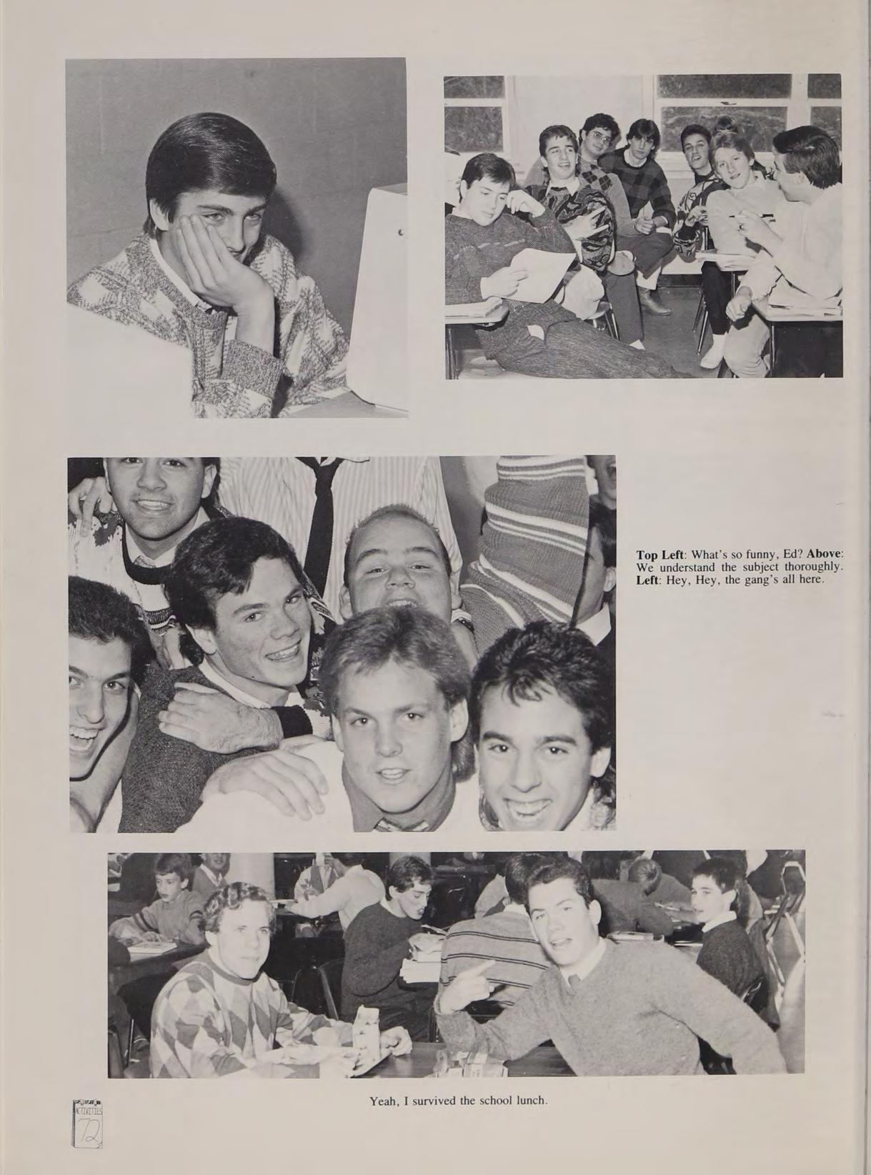 Remembers: Stern in Boston, the bomb scares, the Senior Retreat, getting lost on the way to Physics with SF, track practice at McDonald’s, Mr. Passanese’s history tests compared to Mr. Adamo’s, the Ronnie Burns lazy method, Friday's, the Quebec trip, going to the Country Club with JC, getting stuck in the elevator, Dave’s story about the plunger, the Rivi, John’s cottage, Jason’s driving, Bubba and Tiffany, Can you repeat the question? , What’s Mou?, students and teachers are reminded of the staggered dismissal, seniors only on the first bell please, thank you. Thanks to Ms. Barletta and Mr. Mackiewicz and to the rest of the faculty. Special thanks and love to my mother and father, couldn’t have made it without you Love you Joseph.
