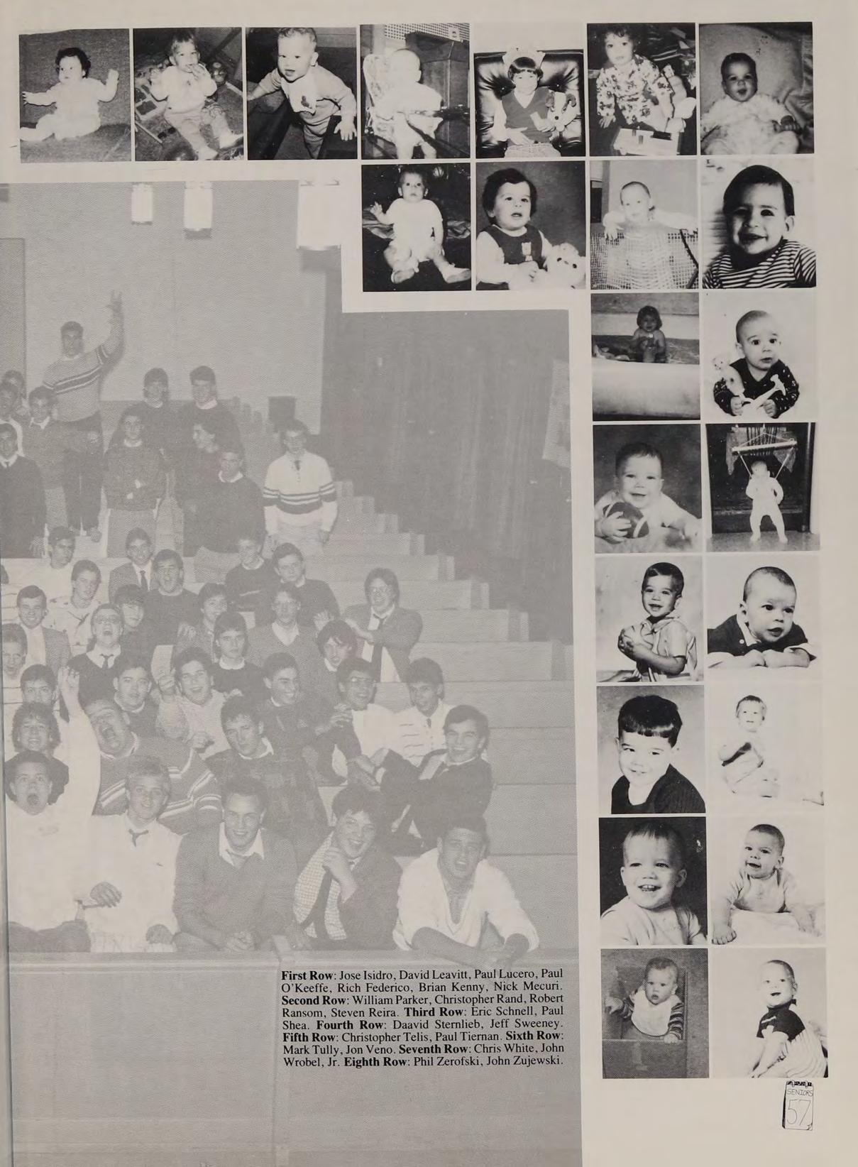 First Row: Jose Isidro, David Leavitt, Paul Lucero, Paul O'Keeffe, Rich Federico, Brian Kenny, Nick Mecuri. Second Row: William Parker, Christopher Rand, Robert Ransom, Steven Reira. Third Row: Eric Schnell, Paul Shea. Fourth Row: Daavid Sternlieb, Jeff Sweeney. Fifth Row: Christopher Telis, Paul Tiernan. Sixth Row: Mark Tully, Jon Veno. Seventh Row: Chris White, John Wrobel, Jr. Eighth Row: Phil Zerofski, John Zujewski.