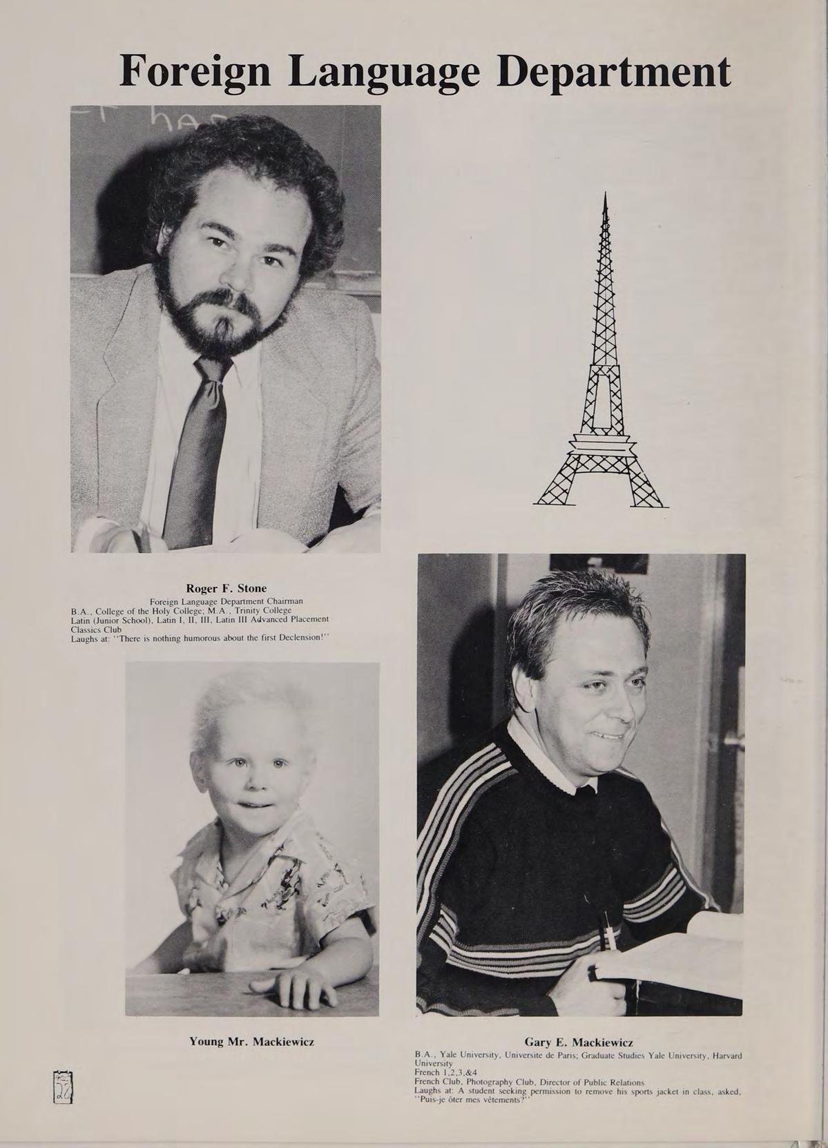 French Club ,2,3,4; Spanish Club 2,3,4; Photography Club 3,4; TACHE 3; Open House 1,2,3,4; National Honor Society 4 Remembers: the Eiffel Tower, the '2-shaven face, Jose the bus driver, Tessa, Renee, Ms. Cain, McCadd, Clark, Christina, assorted fools, my faithful companions CA, CR, JI, Mr. P., the Captain, Nuclear Nick, Amsterdam, the Russian waiter, the Metros, Jose from Valencis, sangria, taxis, Canterbury, the assault on Nice, trips to Montreal and Quebec, the elevator incident, the Quebec crash. Quotes: ‘‘Cet homme m’embete depuis longtemps.’ Good times with DH, CA, CR, JI, Murph, Hudd Heroes: Mr. Mackiewicz, Peter Stastny, Anton Stastny, Hudd Heroine: Ms. Barletta. Special thanks to Mr. Mackiewicz, Ms Barletta, my friends, and family