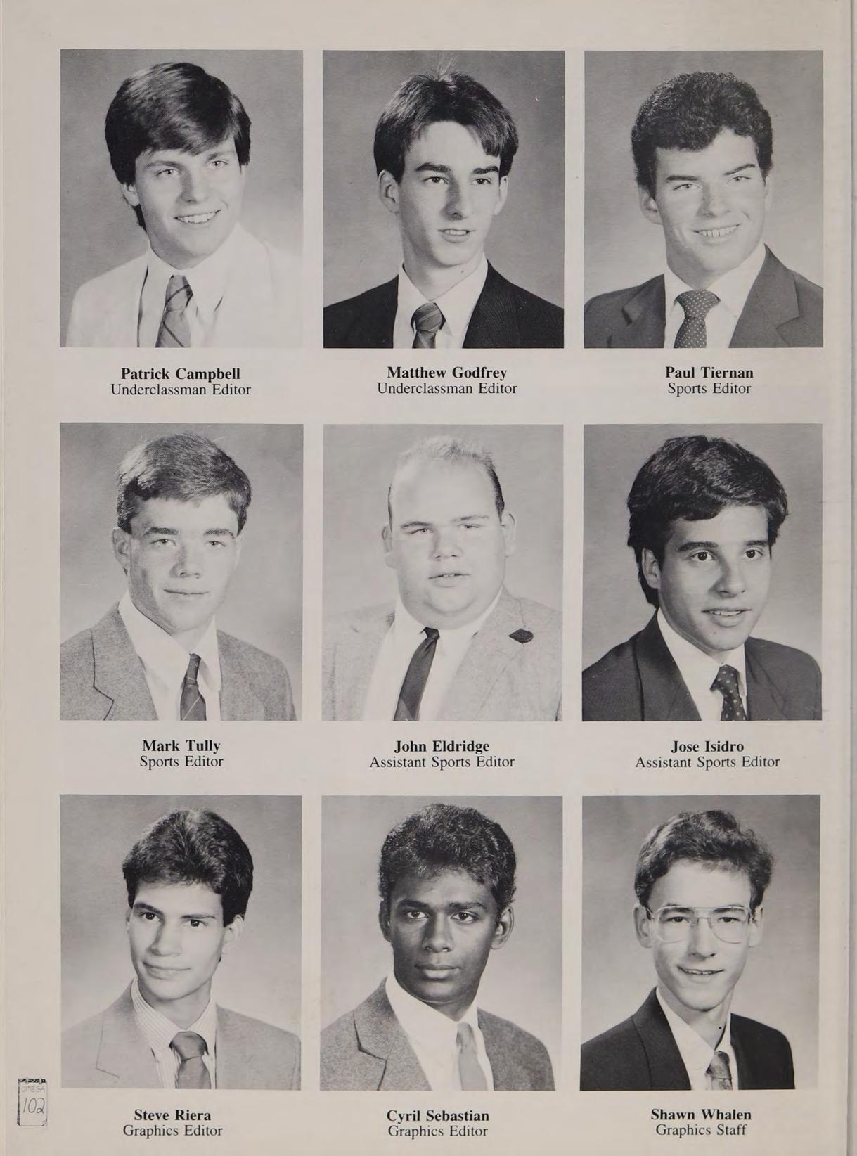 Basketball 1,2; Baseball 1,2,3,4; Class Vice-President 2; Intramural Softball ,2,3,4; Disciplinary Review Board 3; Orientation Committee 2,3; Omega Sports Editor 4. Remembers driving on top of the snowbank, the Tell-Spell, Matignon brawl, ‘‘Chemistry,’’ Junior Prom, Class of '87, trying to be on time for school, playing football & street hockey in the snow, Barry’s bashes, Topsfield Fair '86, the circus, listening to Scott and Mark talk about hockey. Good times with MD, SF, JS, MB, PT, SD, JE, SA, JW, DP, PS, and the rest of the gang