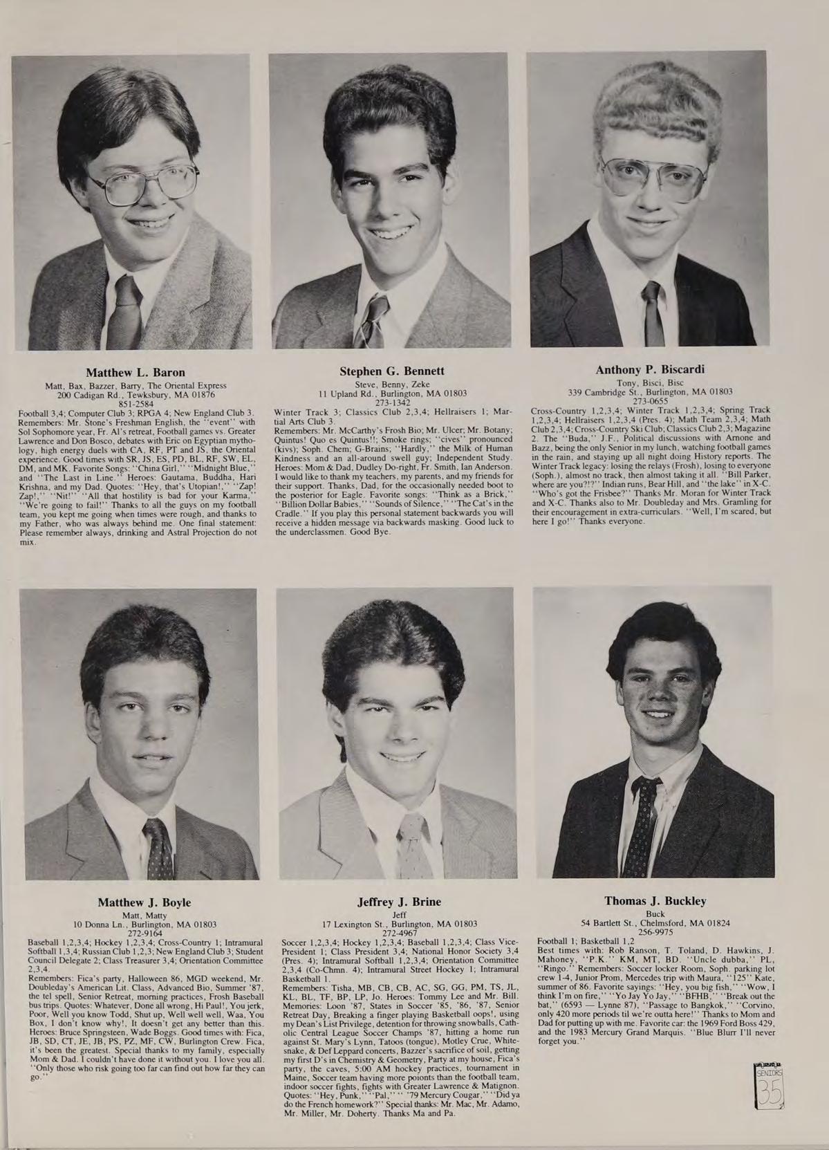 Matthew J. Boyle Matt, Matty 10 Donna Ln., Burlington, MA 01803 272-9164