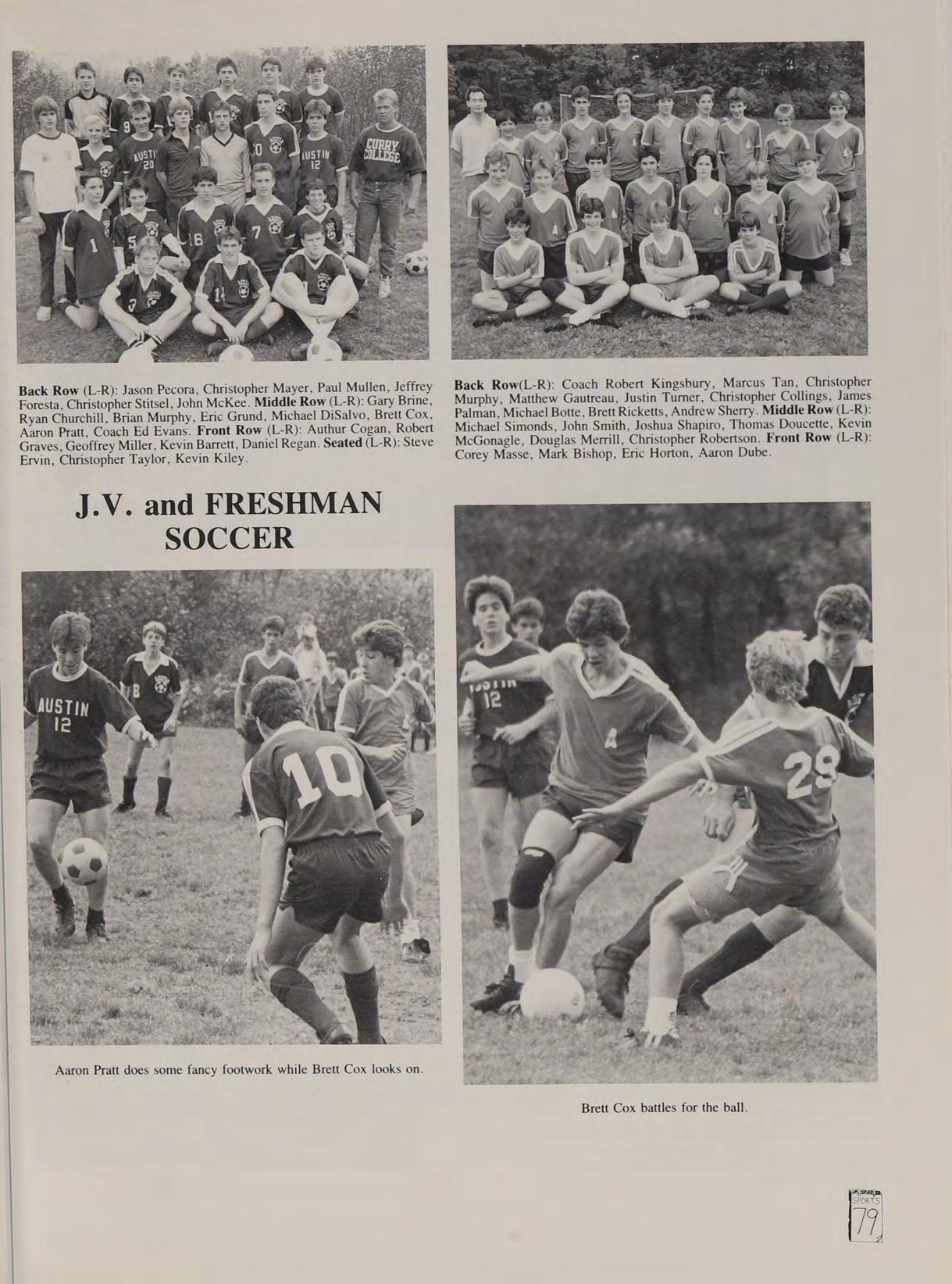 Soccer 1,2,3,4 (Capt. 4); Hockey 1,2,3,4; Baseball 1; Classics 2,3; French Club 3,4 (Pres. 4); Intramural Softbll 1,2,4; Sr. Prom Committee 4. Remembers: #17, Soccer States ’85, °86, '87, overtime, bicycle kick, Hockey °87, ’87, Hurricanes, the Latin Class Band, the paint guns, Quintus, “‘Barrel, who says look like a barrel?”’ the Soccer Haus, Virgil’s Aeneid, Cookie’s broken leg. Thanks to all the friends met at Austin, and especially BP — we made the wrong choice. love you Mom & Dad, know I've been a brat. A very special thanks goes out to my honey, Maryann — remember 8 letters!