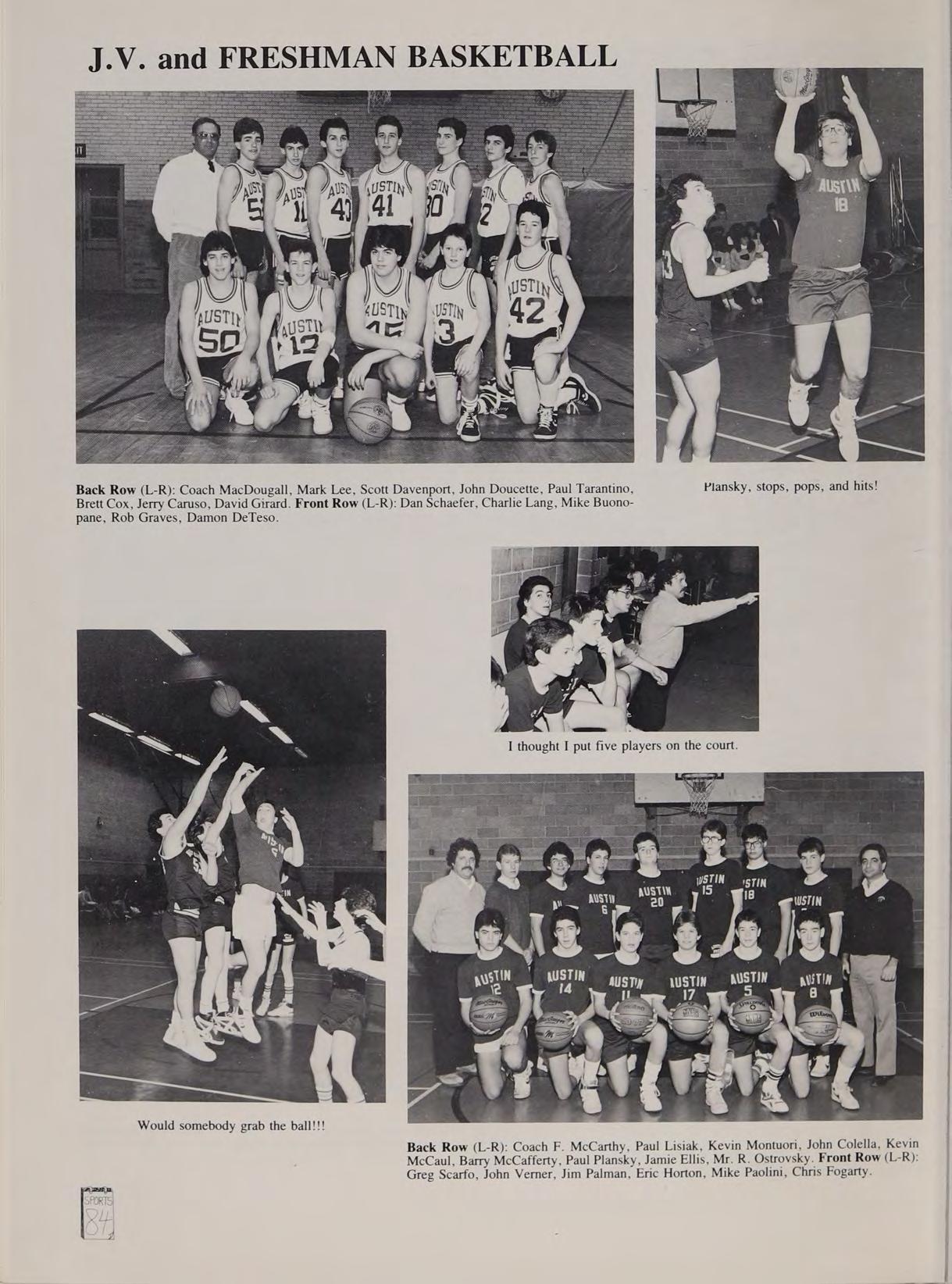 Remembers no basketball gym!! fouling out Ist game Freshman year, Coach McCarthy, Double overtime win Mi