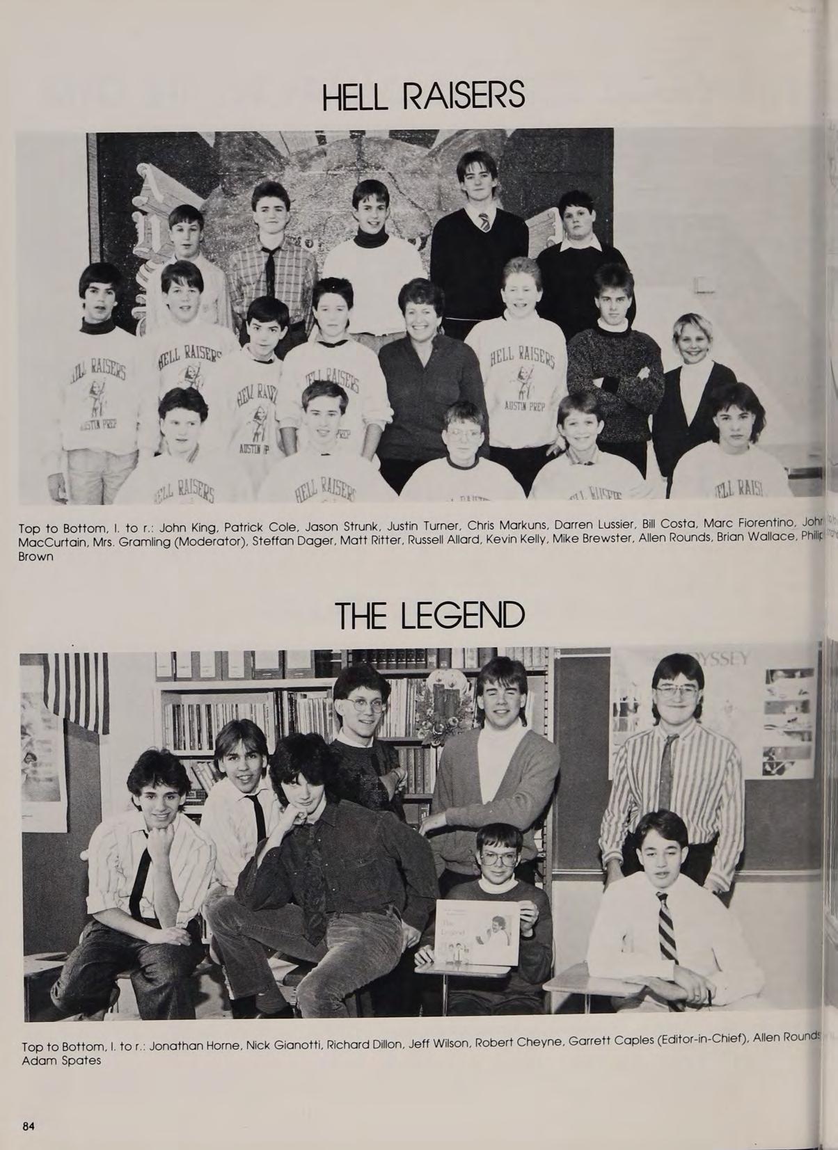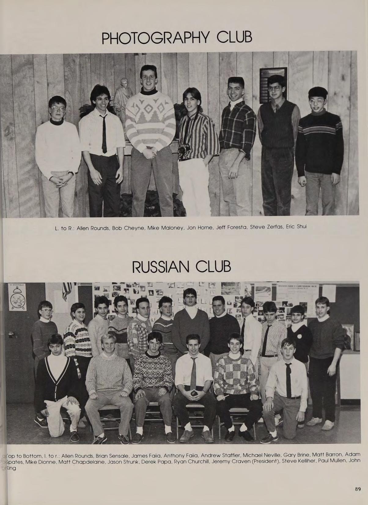 C.A.W.-3 New England Club 3, 4 Soccer Club 1, 2 Good Times with: GP, KF, GH, MD. MD, MF, My Roommate DP, Pumpkining 87, Hall Pool, Rockport, Batman, Trip to St As, Salve, Museum of Science, Jr Prom, Heroes: Eddie Van Halen, My Father And don’t think didnt try!!!