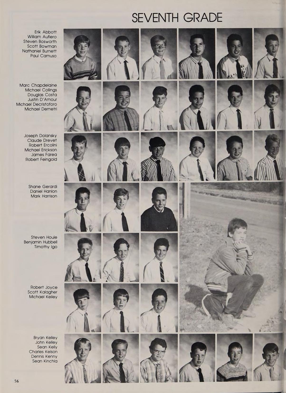 7th Grade Team, Back row, |.-r.: Bill Aufiero, Mario Trafficante, Dan Hanlon, Aaron Lemmon, John Valenty, Brad Plotnick, Paul Camuso. Middle row, I.-r.: Chuck Kelson, Erik Abbott, Chris Pellegrino, Dennis Kenny, Claude Drevet, Rob Joyce. Front row, |.-r.: Rick Graham, Sean Kinchla, James Beaumier, Mare Chapdelaine, Steven Houle.