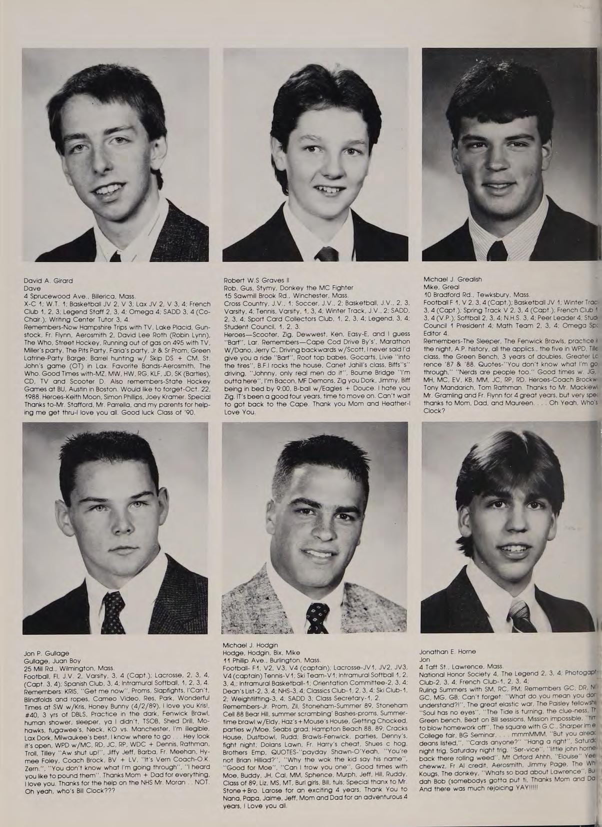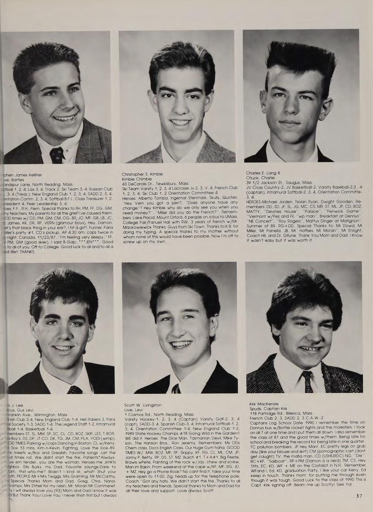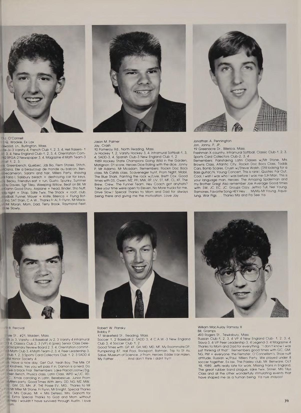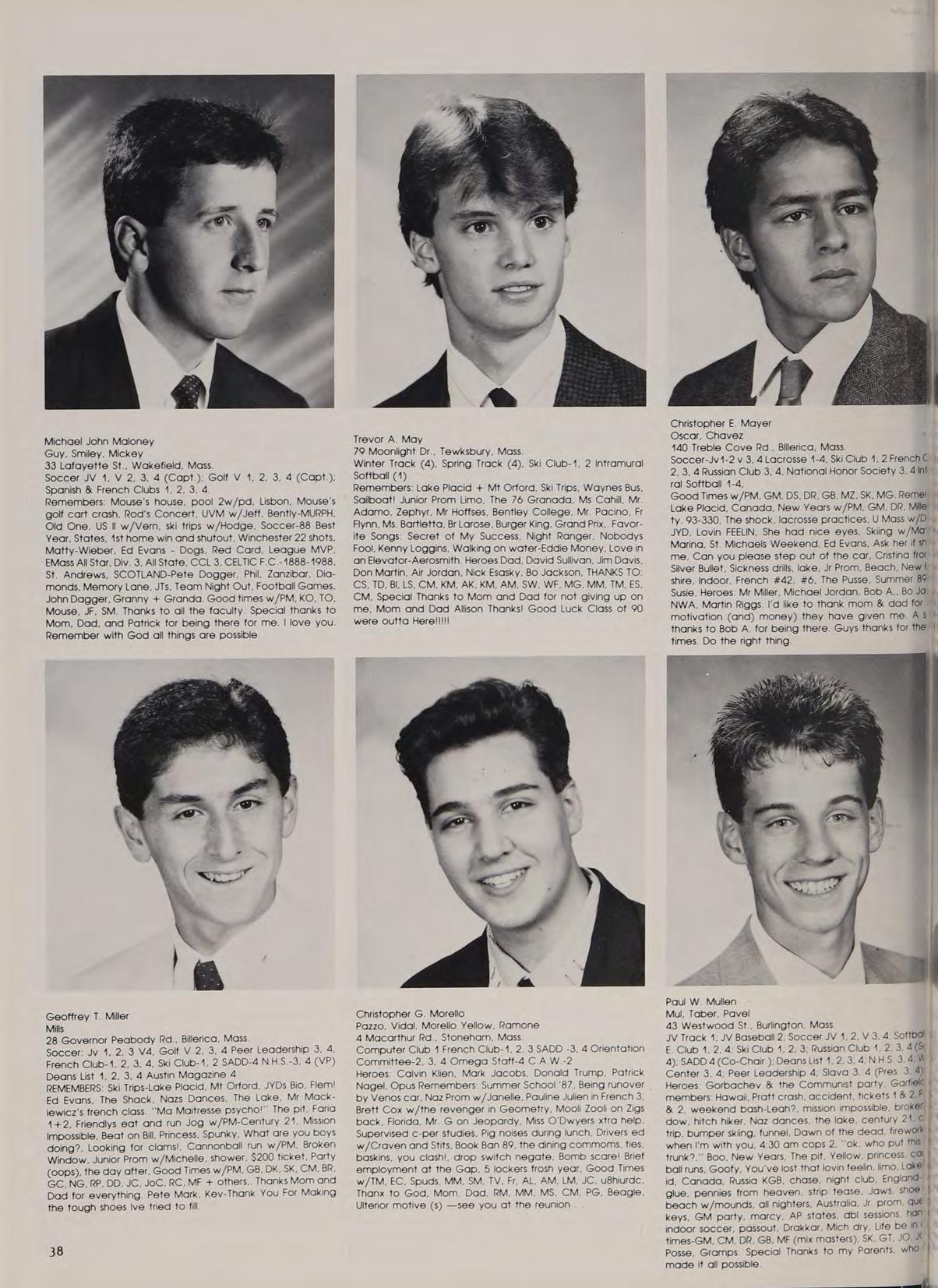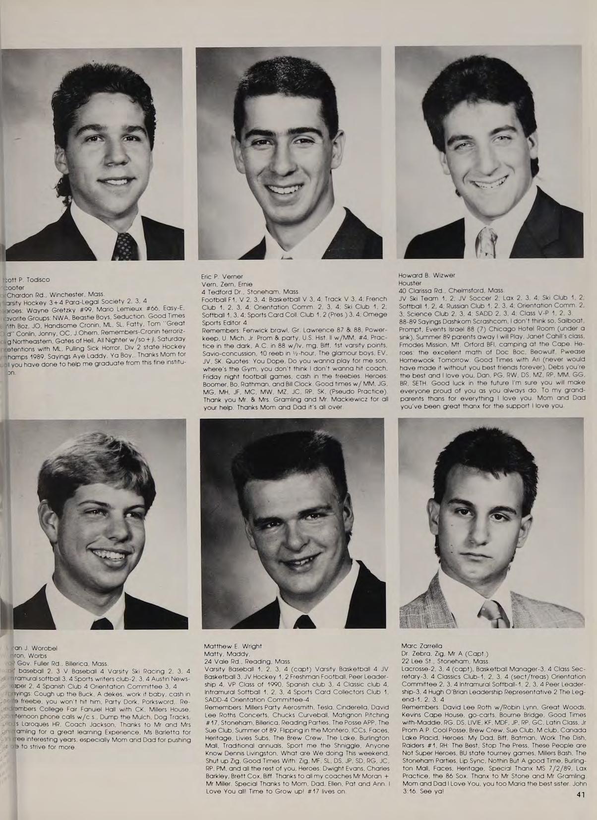 Matty, Maddy, 24 Vale Rd., Reading, Mass Varsity Baseball 1, 2. 3, 4 (capt) Varsity Basketball 4 JV Basketball 3, JV Hockey 1, 2 Freshman Football, Peer Leadership 4, VP Class of 1990, Spanish club 3, 4 Classic club 4 Intramural Softball 1, 2, 3, Sports Card Collectors Club 1, SADD-4 Orientation Committee-4
