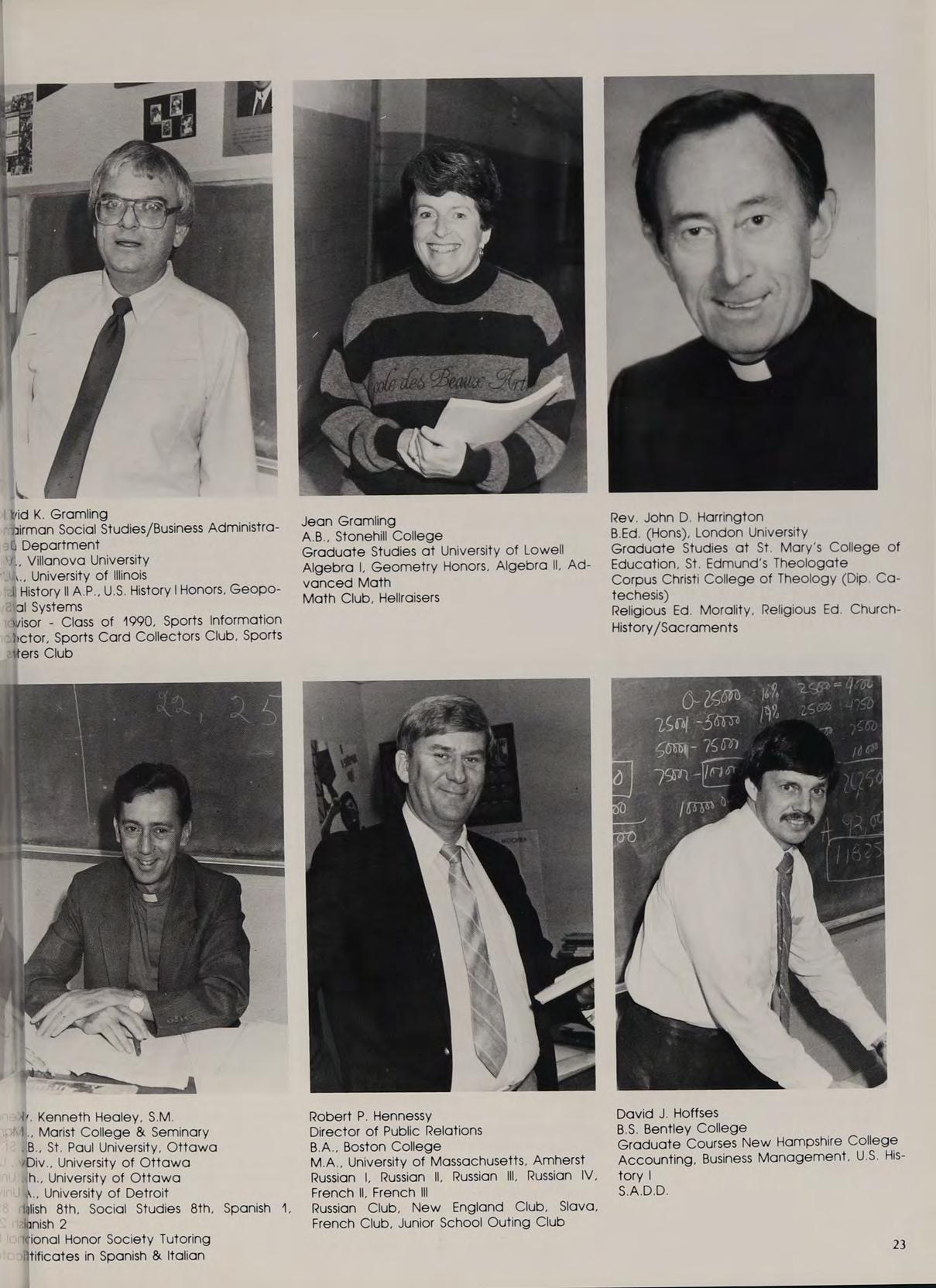 Rev. John D. Harrington B.Ed. (Hons), London University Graduate Studies at St. Mary’s College of Education, St. Edmund’s Theologate Corpus Christi College of Theology (Dip. Catechesis)