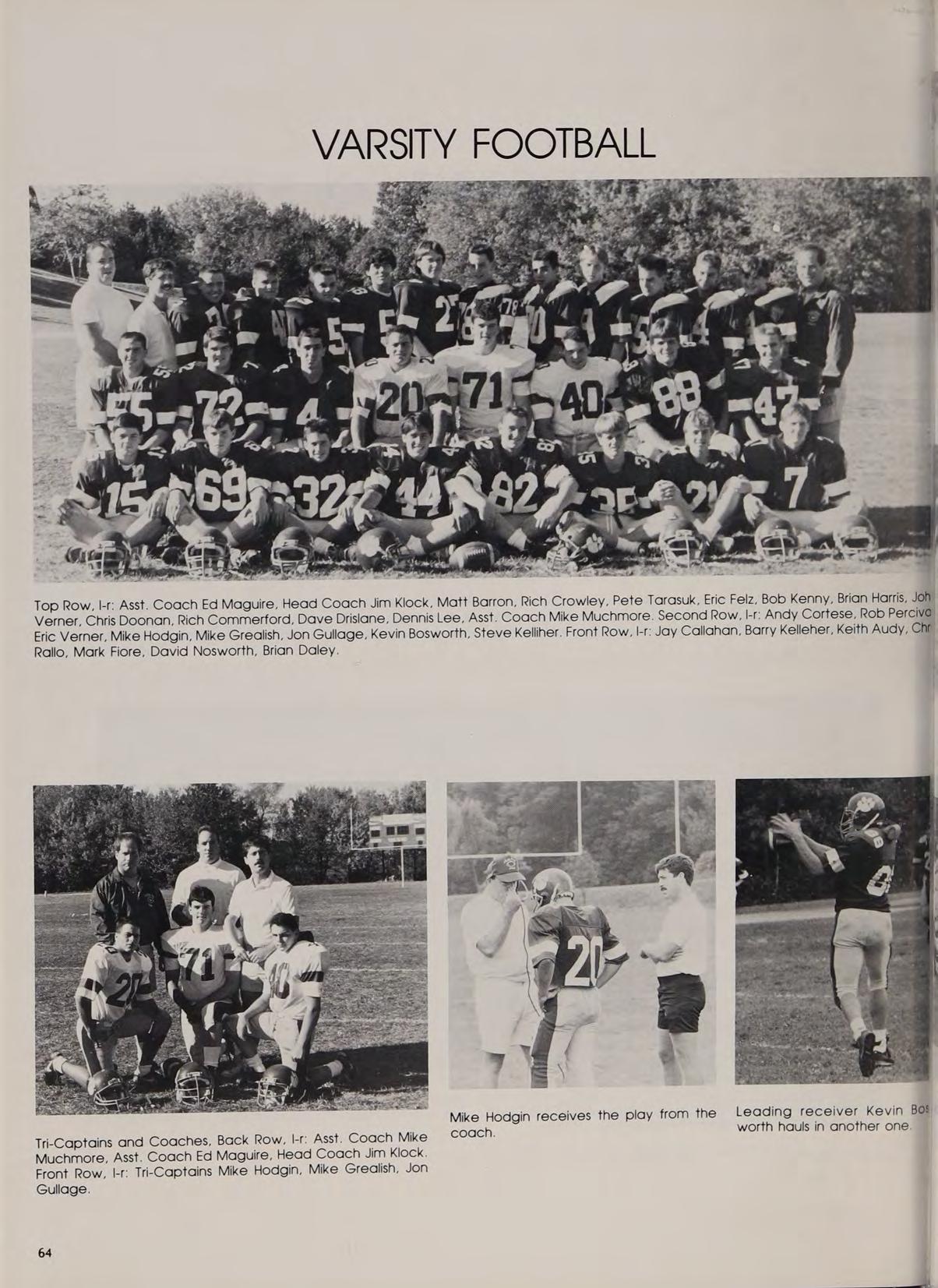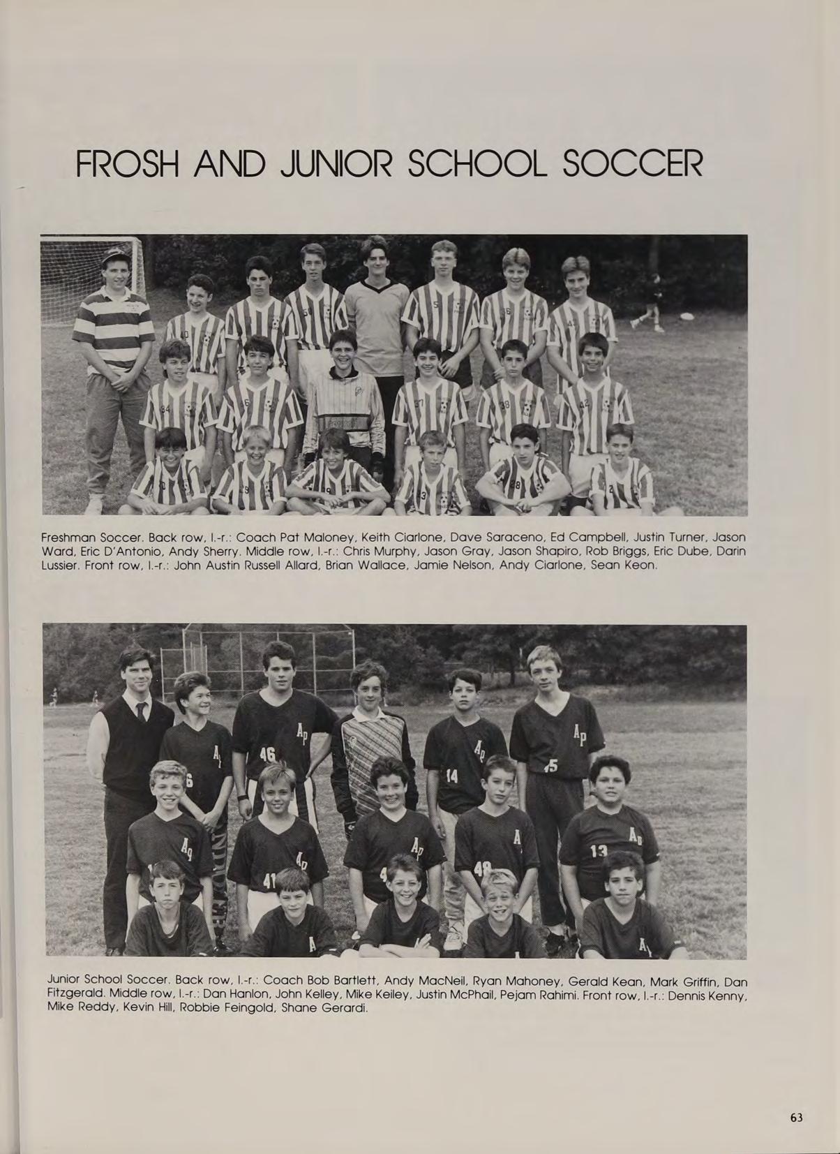 Freshman Team, Back row, |.-r.;: Coach Joseph Crowley, Dan McKew, Jeff Caruso, Kevin Kelly, Dave Duffy, Jon O’Brien, Charlie Chute, Keith Mahoney, Joe Tora. Front row, |.-r.: Steffen Dager, Brian Wallace, Andy Ciarlone, Bryan Fitzgerald, Keith Moran, Bill Donovan, Mike Celata, Bobby Sullivan.