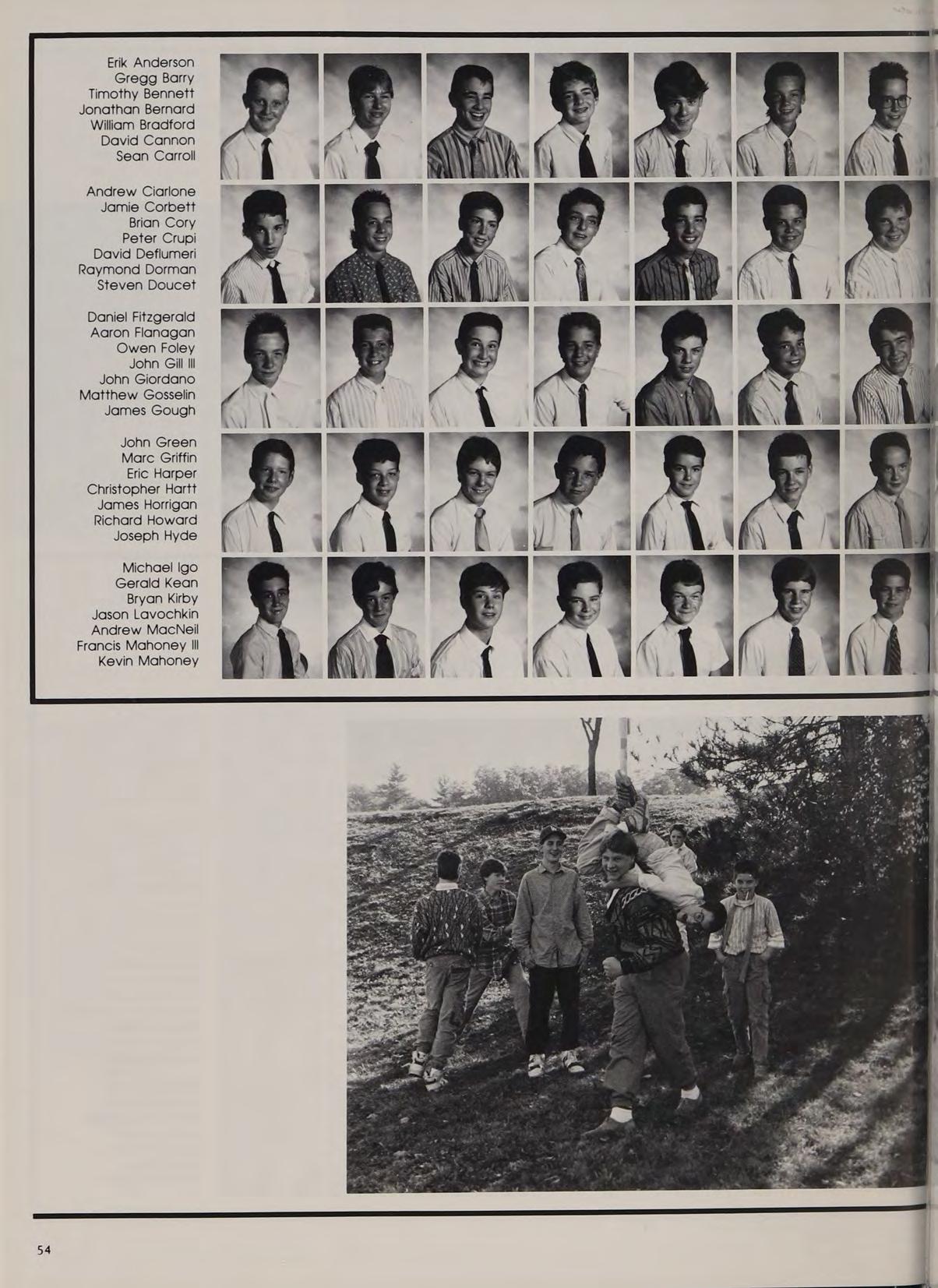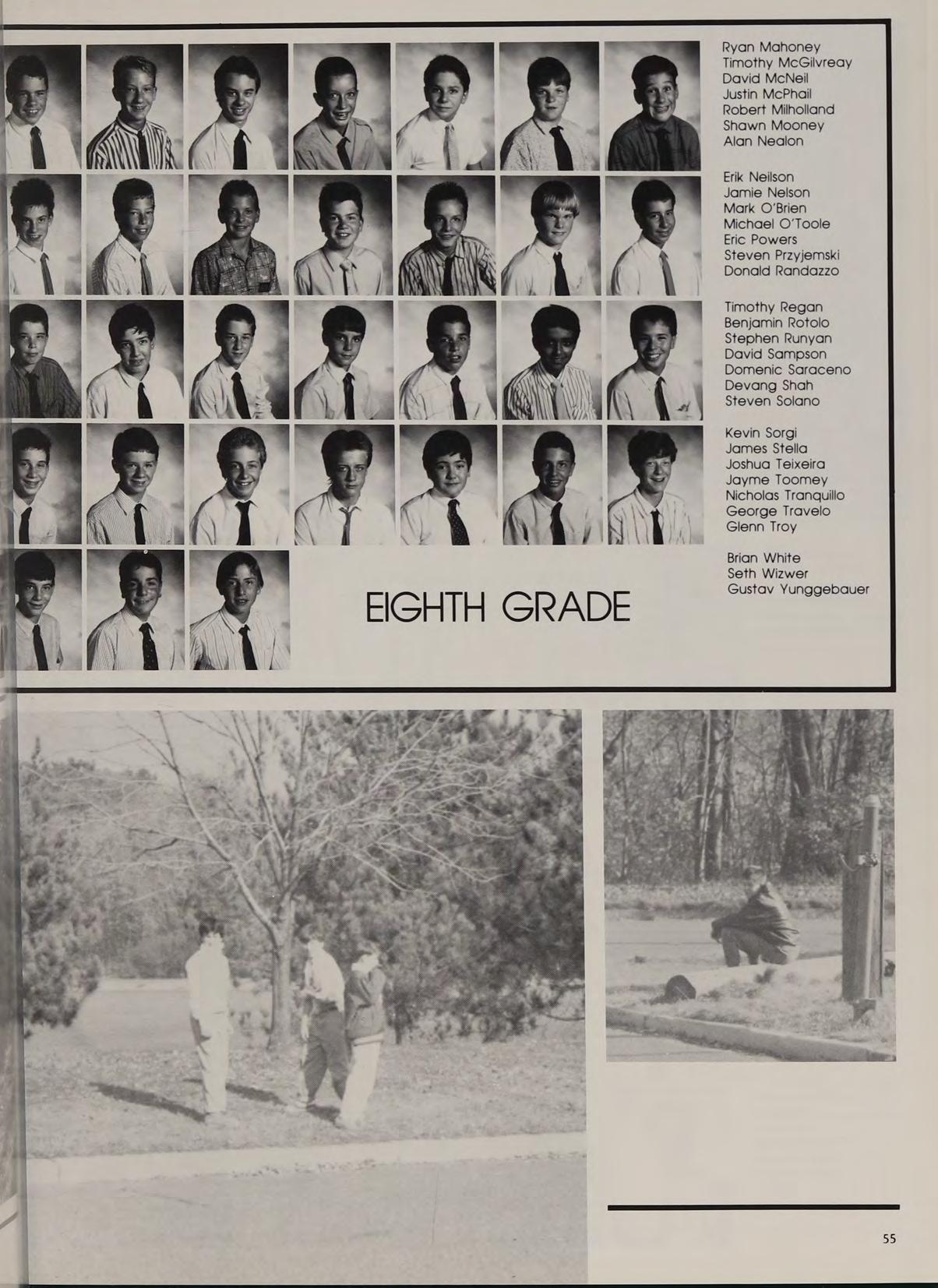 8th Grade Team, Back row, |.-r.: Brian White, J. B. Gough, Chip Mahoney, Eric Powers, Dan Fitzgerald, Tim Bennett, Steven Przyjemski, Jay Gill. Middle row, |.-r.: Bill Bradford, Sean Sullivan, Bill Lemos, Scott Therrien, Kevin Sorgi, Marc Griffin, George Travelo. Front row, I.-r.: Brett Wallace, Jamie Nelson, Mike Ryan, Bryan Kelley.