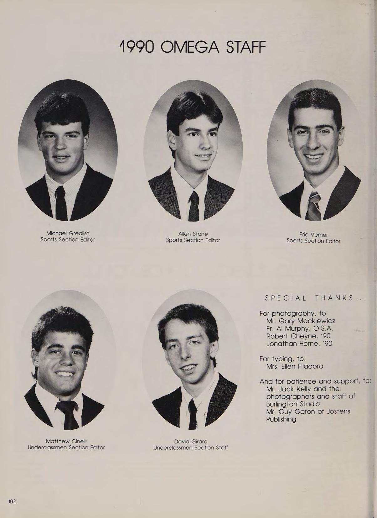 For photography, to: Mr. Gary Mackiewicz Fr. Al Murphy, O.S.A. Robert Cheyne, ‘90 Jonathan Horne, ‘90