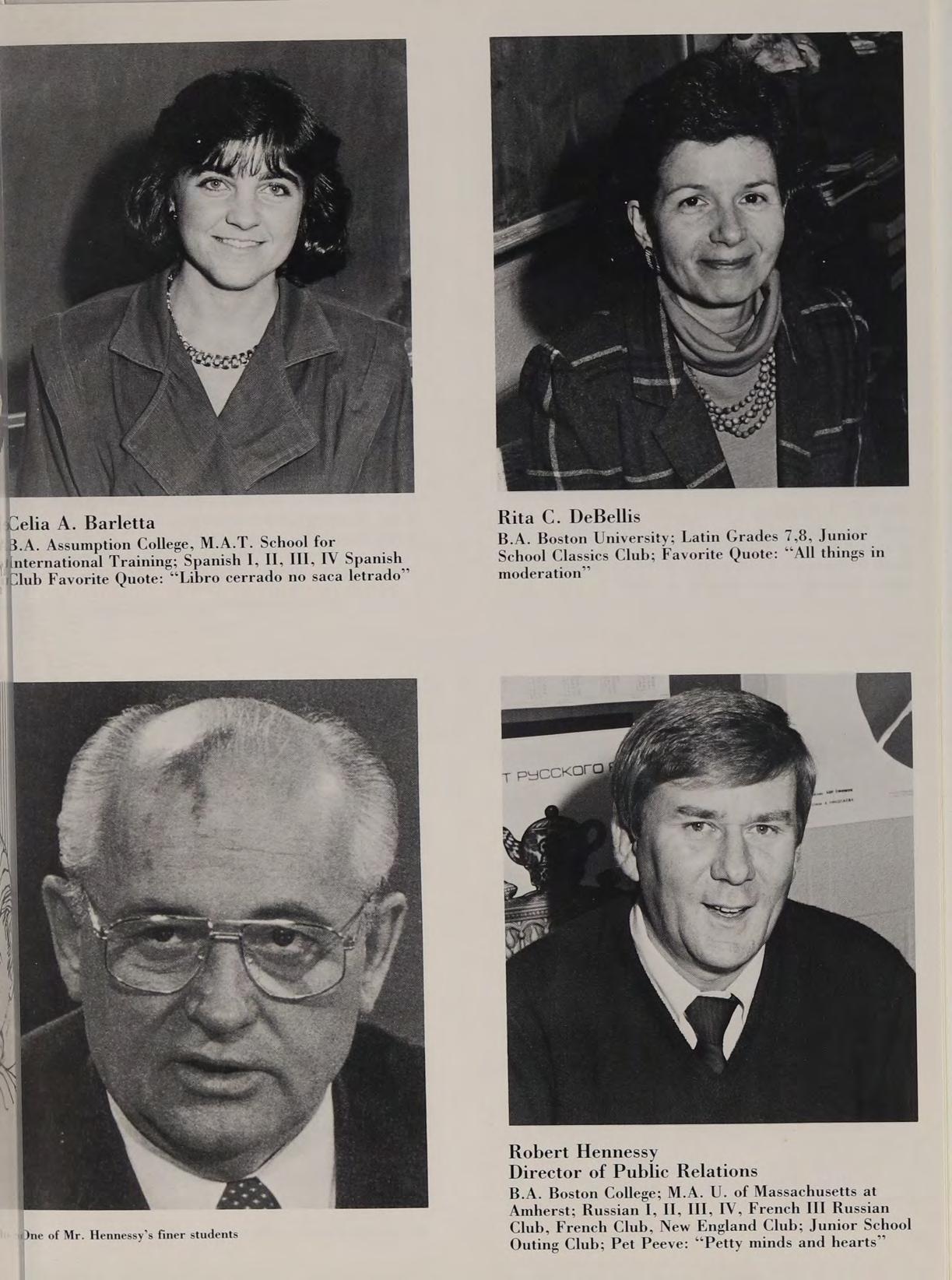 B.A. Assumption College, M.A.T. School for international Training; Spanish I, Il, If, IV Spanish ‘Club Favorite Quote: “Libro cerrado no saca letrado”